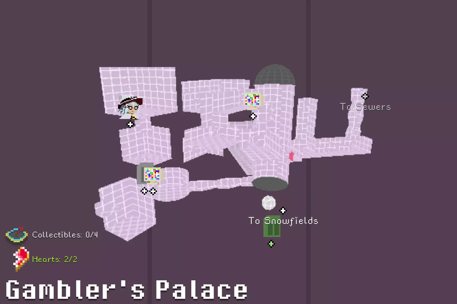 棺材钥匙 首先查看【其他】,获得【红心卡牌套装】。 来到【赌徒宫殿】,打破其中一道红桃封印。打败厨师后进入冰箱。在谜题房间中,解开后获得。 谜题提示:查看隐藏的第五~七张图片。①连接电池打开铁栅栏,按照图五调整镜子方块,打碎绿色墙壁;②调整铁栅栏一侧的镜子方块,改变其重力方向,并在其位于铁栅栏上方时松开针线,使得其按照图六弹射至天花板;③按照图五调整镜子方块,激活蓝色机关。