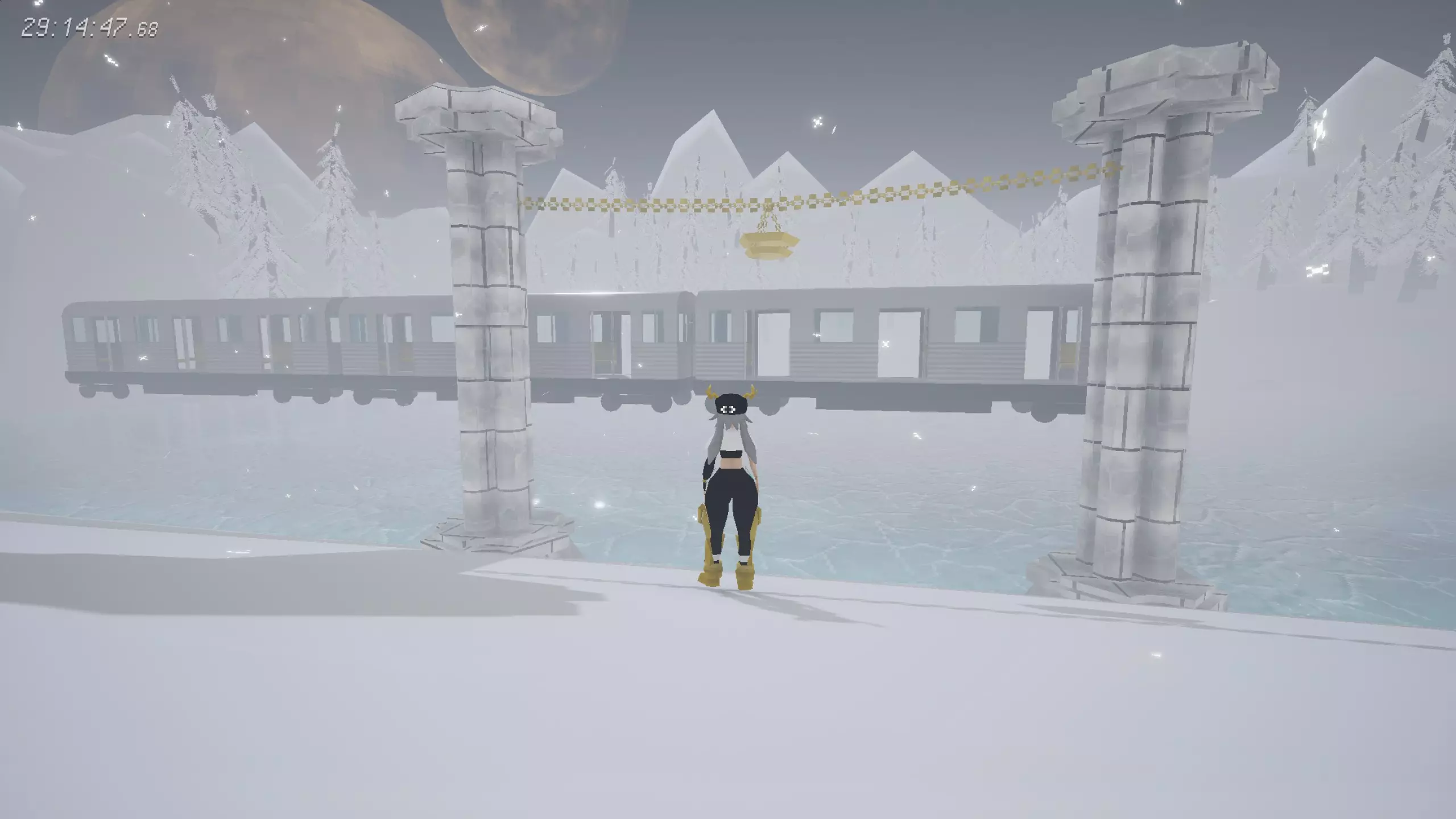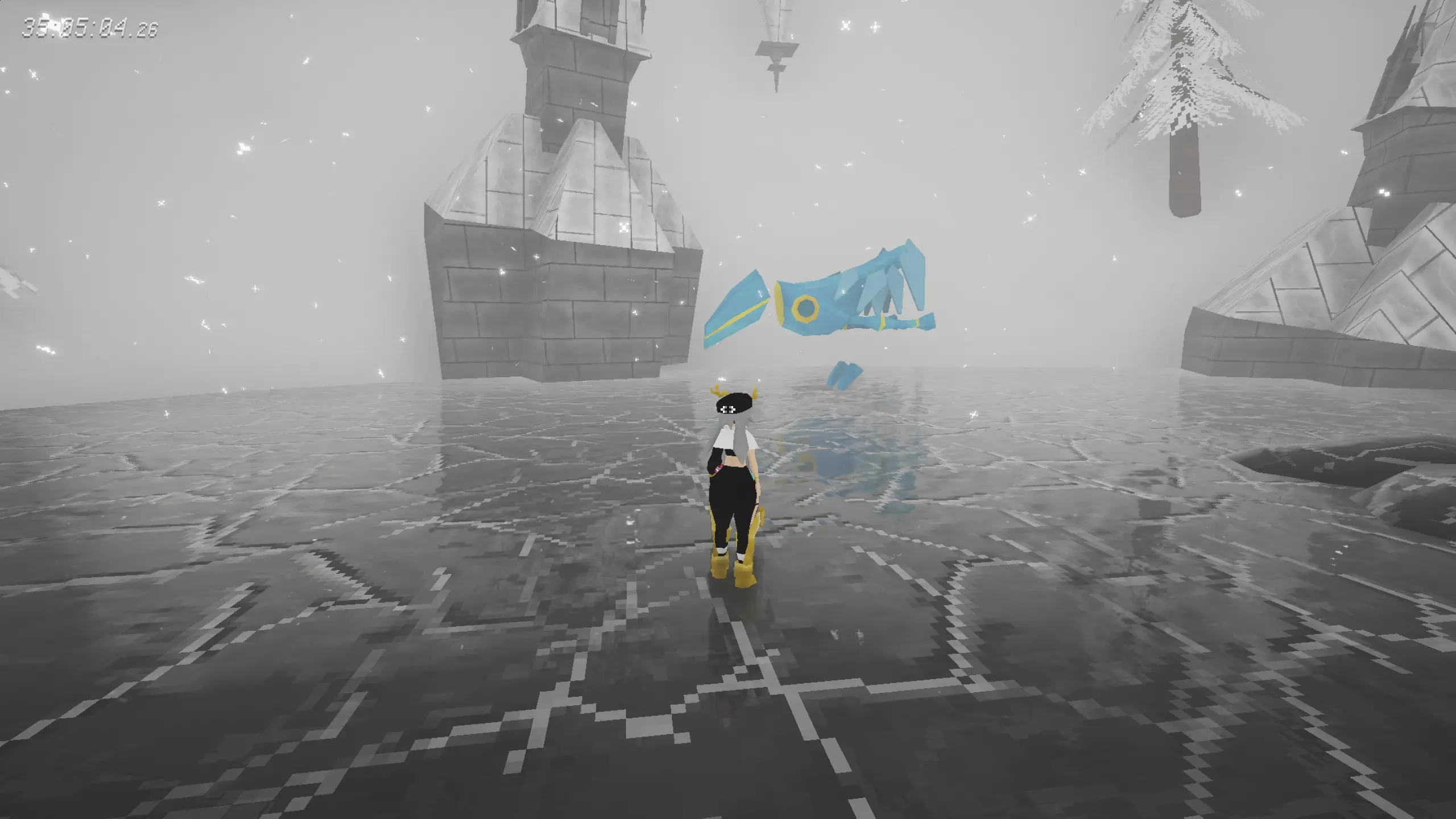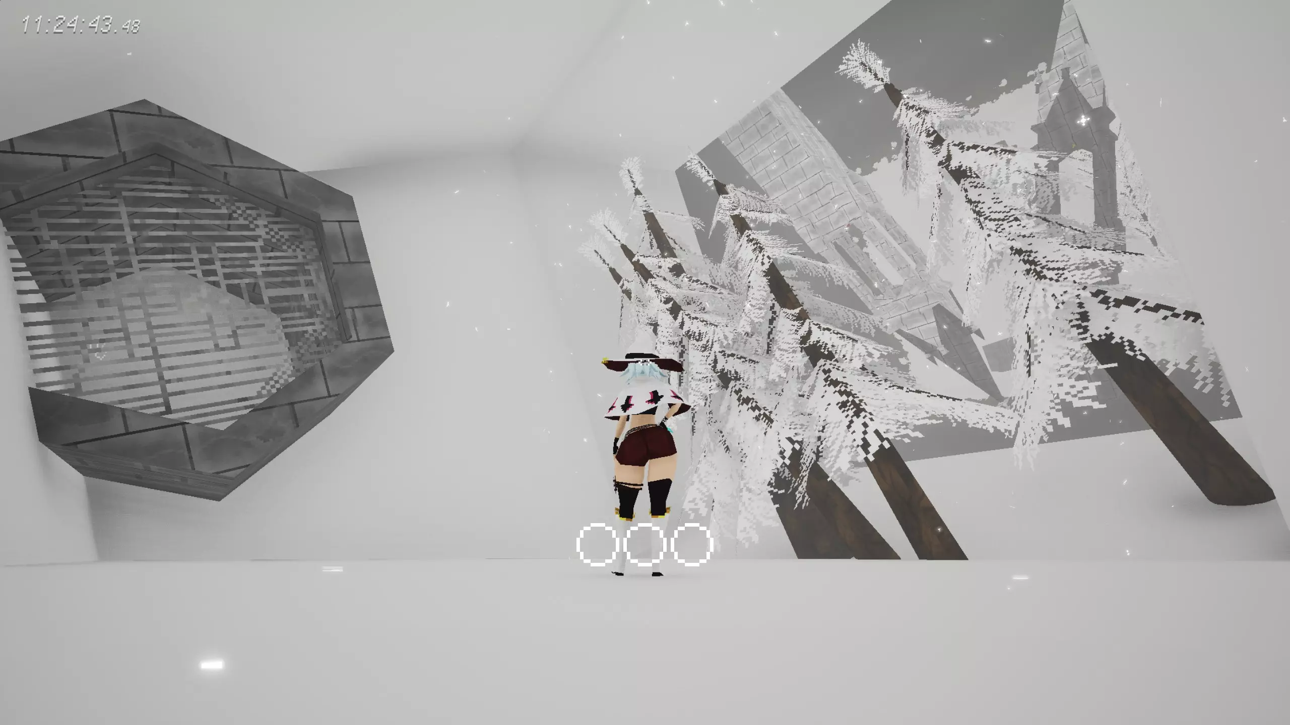 [2/8]冬季外套 在雪原大厅,不落地打破6个气球后开启铁栅栏。 没什么取巧的,只能多试。记得锁定重力方向,这样仅有重力方向上落地会导致失败,会简单点。