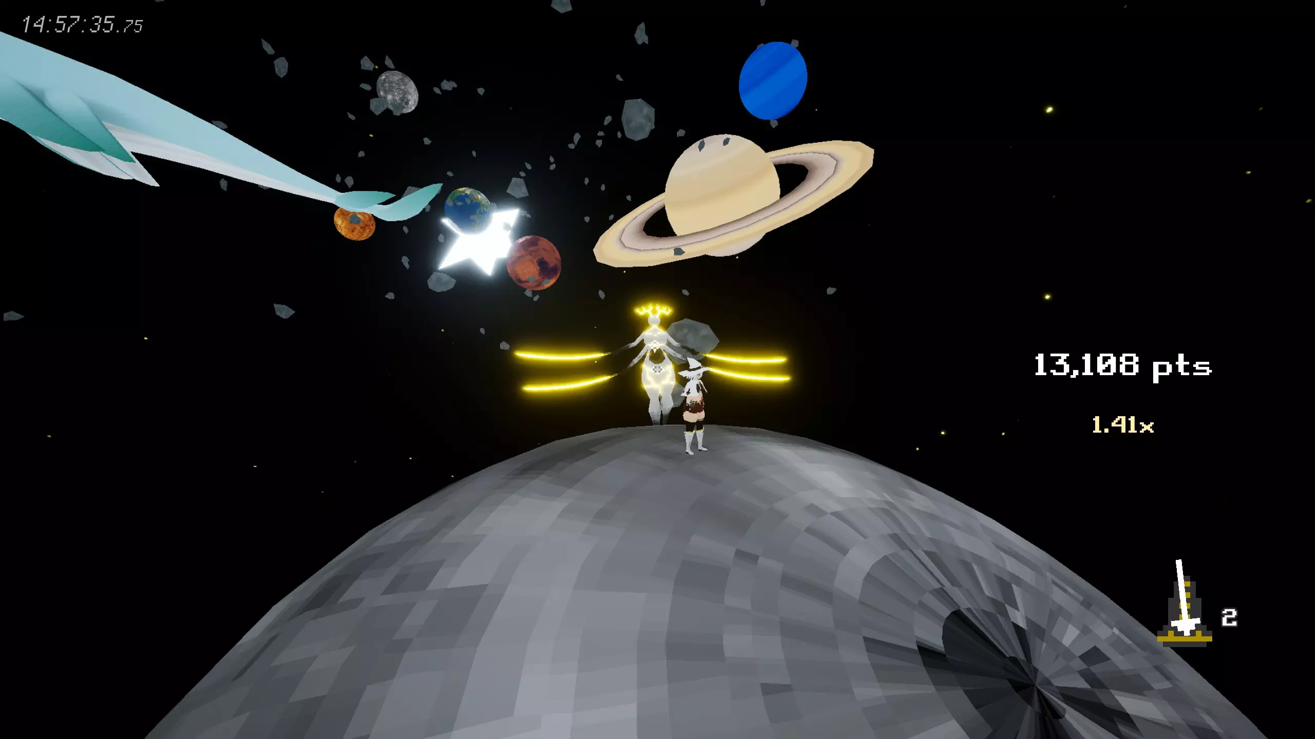 第三阶段: 仅需使用针线勾住小行星躲避激光,很简单 转场