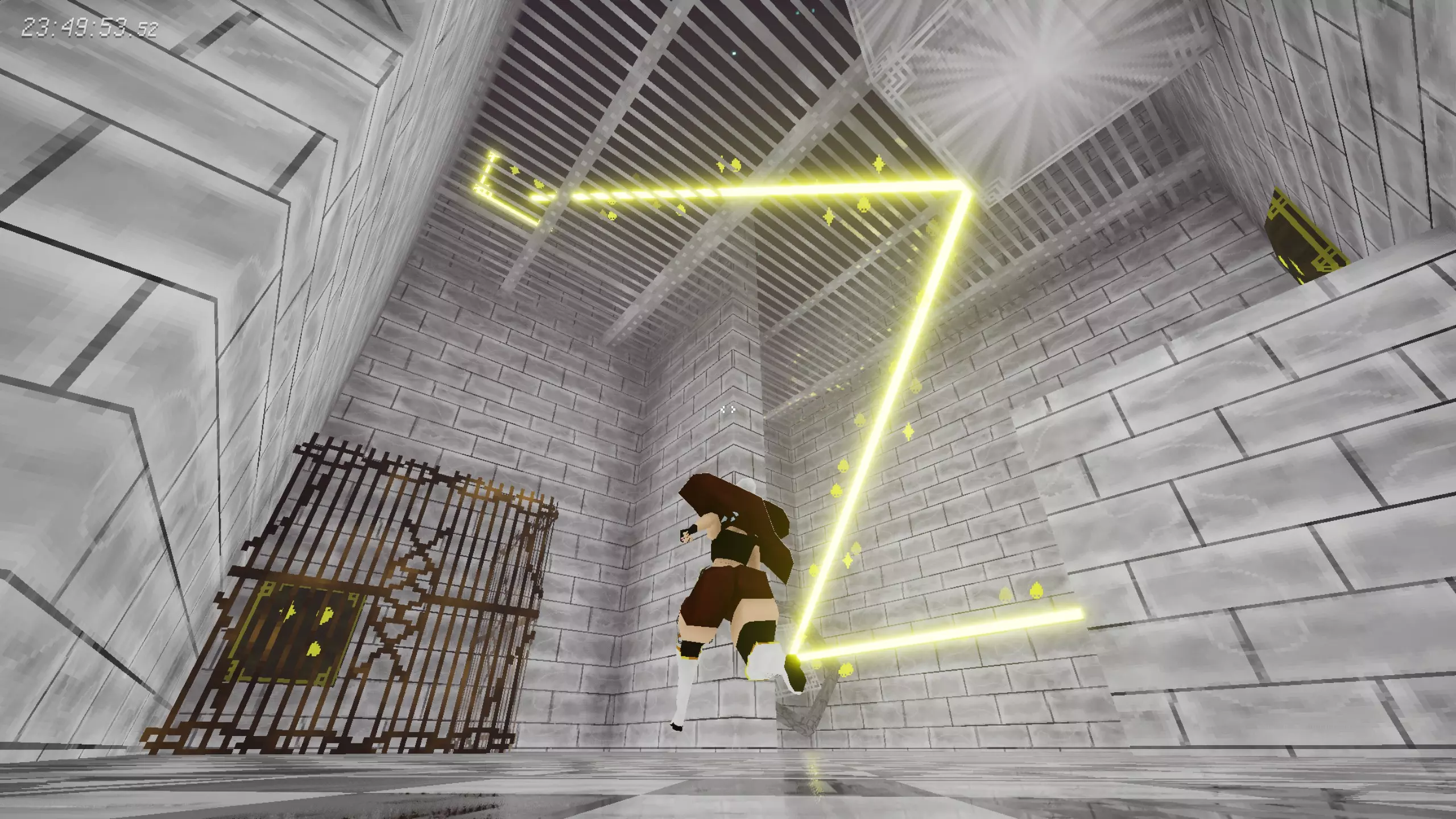 [2/12]学生实验 在谜题房间中,解开后通过铁栅栏门获得。 谜题提示:招架节奏4-2-5;铁方块需要每次切换重力方向时,都保持在空中,重复八次