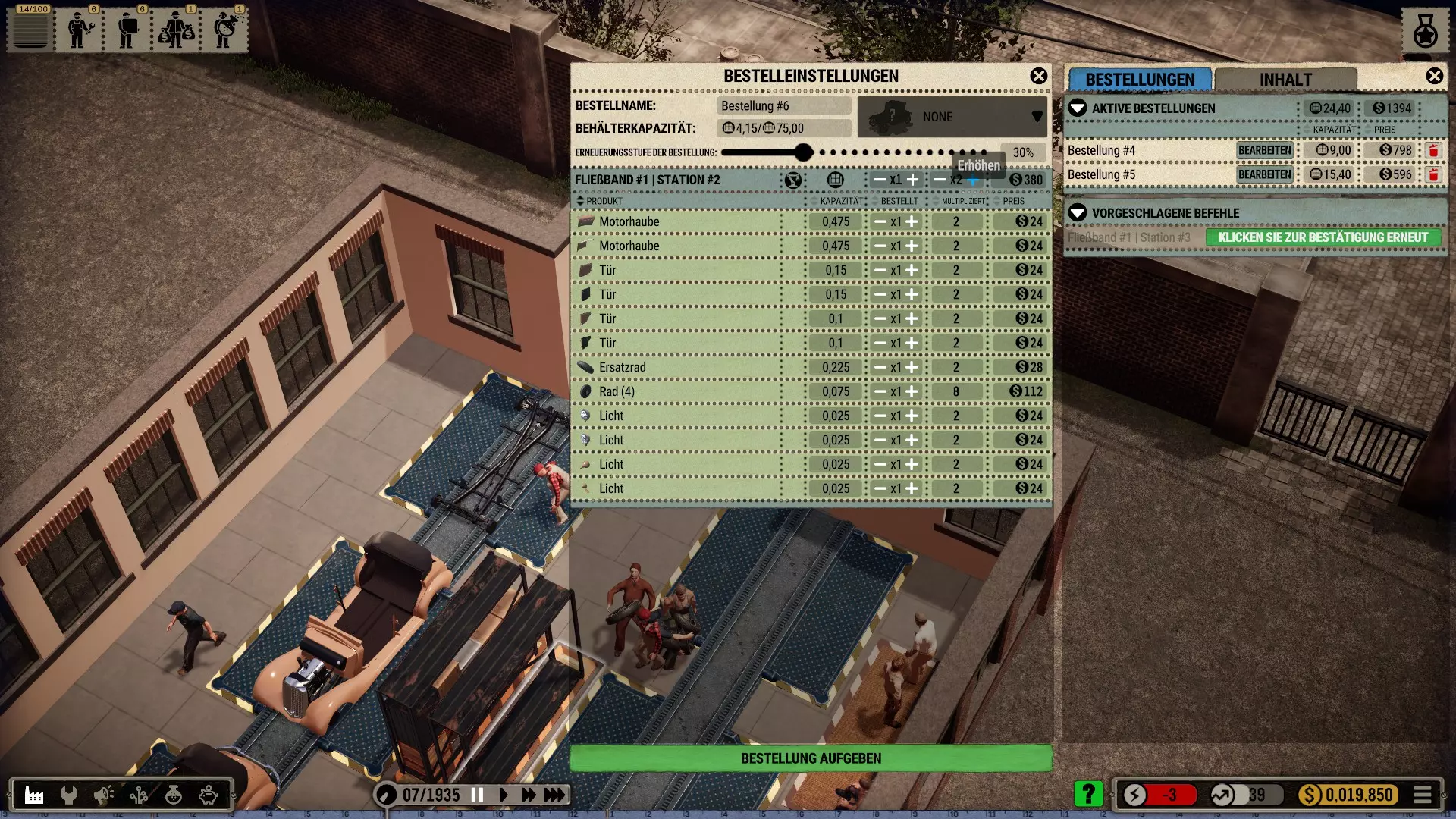 账户余额现在已经足够将所有订单增加到2倍——这对于到集装箱船的短距离运输来说应该足够了。对于更远的距离,将订单增加到3倍或更多可能是明智的,这样运输车就不必频繁往返。毕竟它们一次可以运输很多货物。