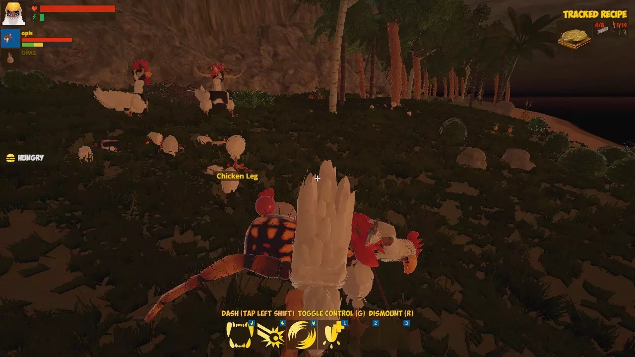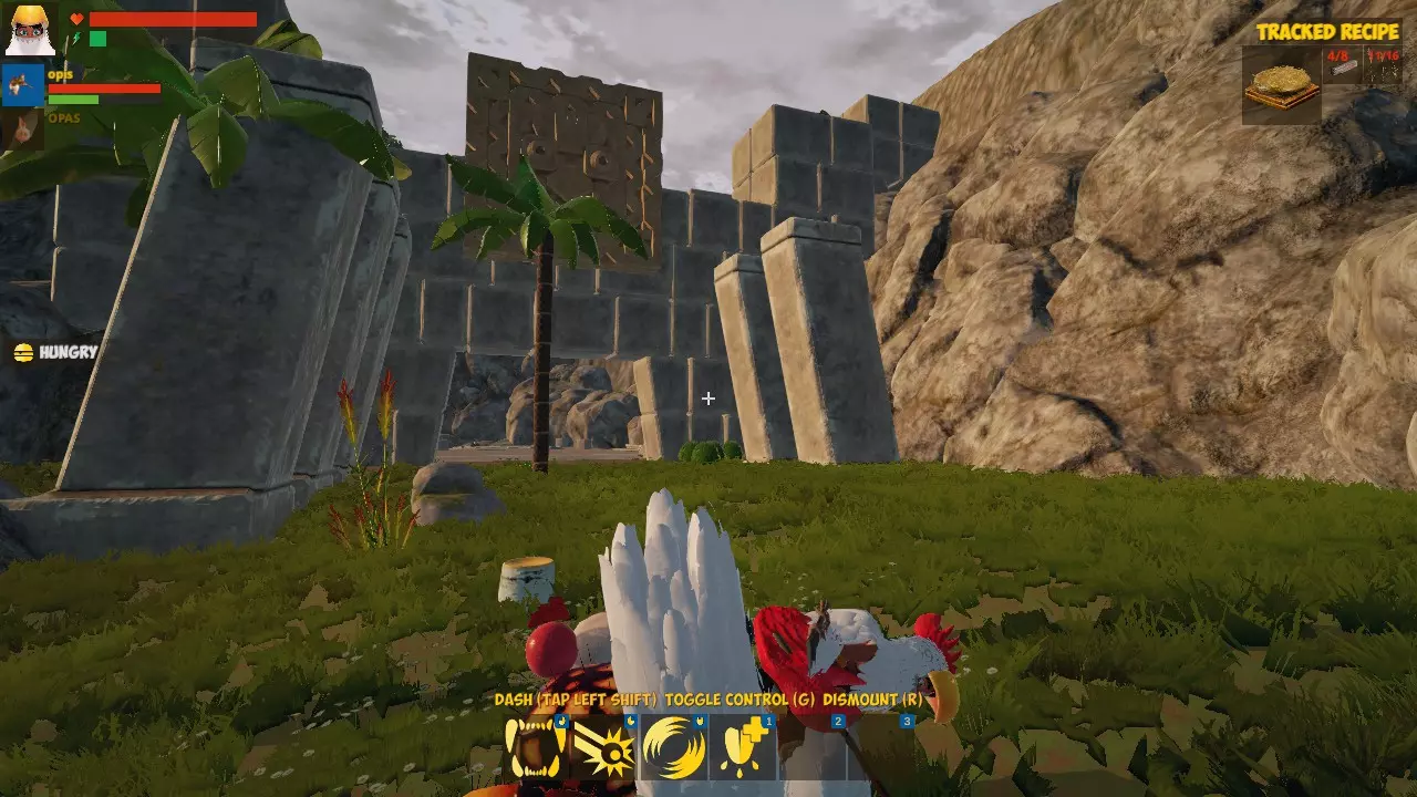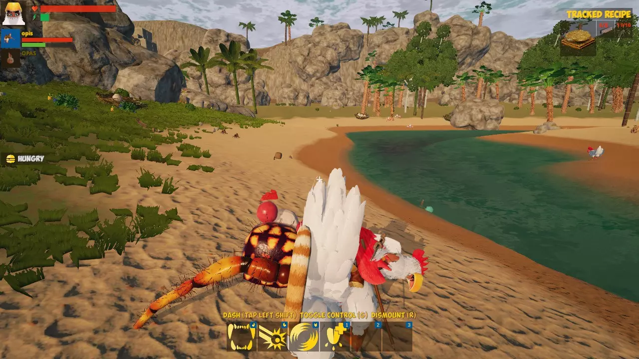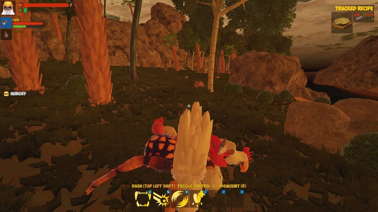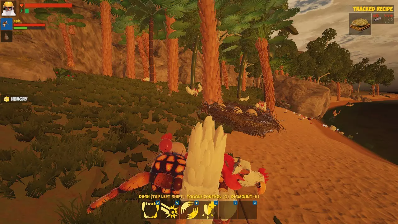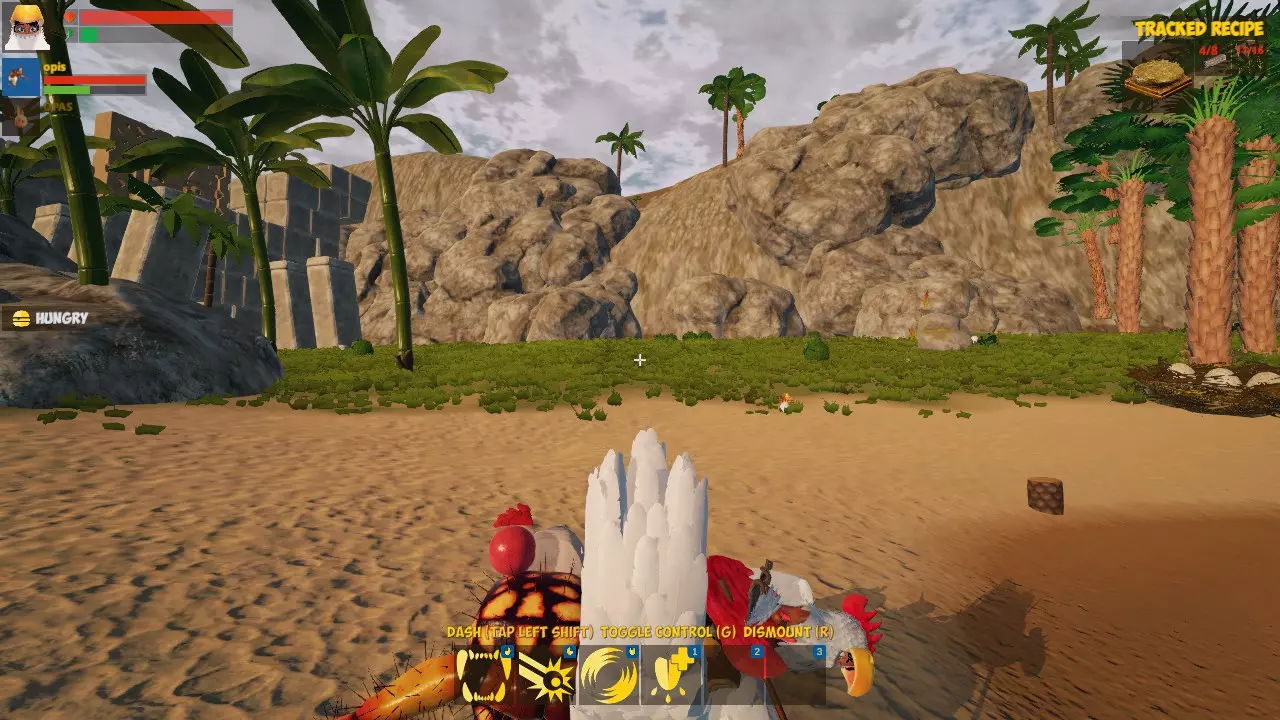 自给自足! 你已经知道如何进食了。 收获10个藤蔓并制作一个【骑乘毯】,然后编辑你的怪物,将坐骑装备到它身上。现在按R键即可骑乘。