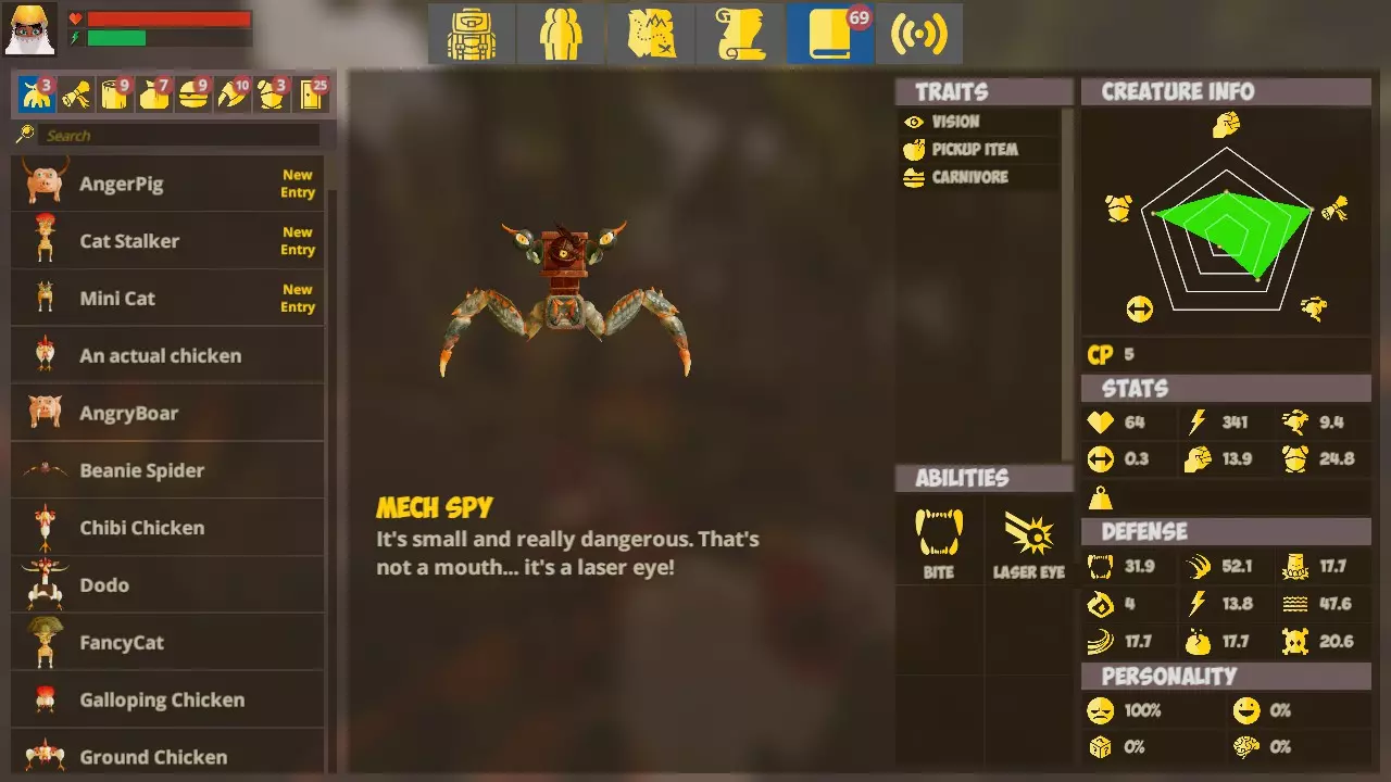 升级! 提升生命塑造者的建造上限 沿着获取上一个成就的相同路径前进,你会遇到几只【机械间谍】生物。击败它们并收集它们的物品,直到获得【激光眼】技能配方。