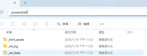 若想自行设置服务器3.在上方文件夹路径栏中输入Powershell(或你习惯使用cmd也行)后,按下键盘Enter键
