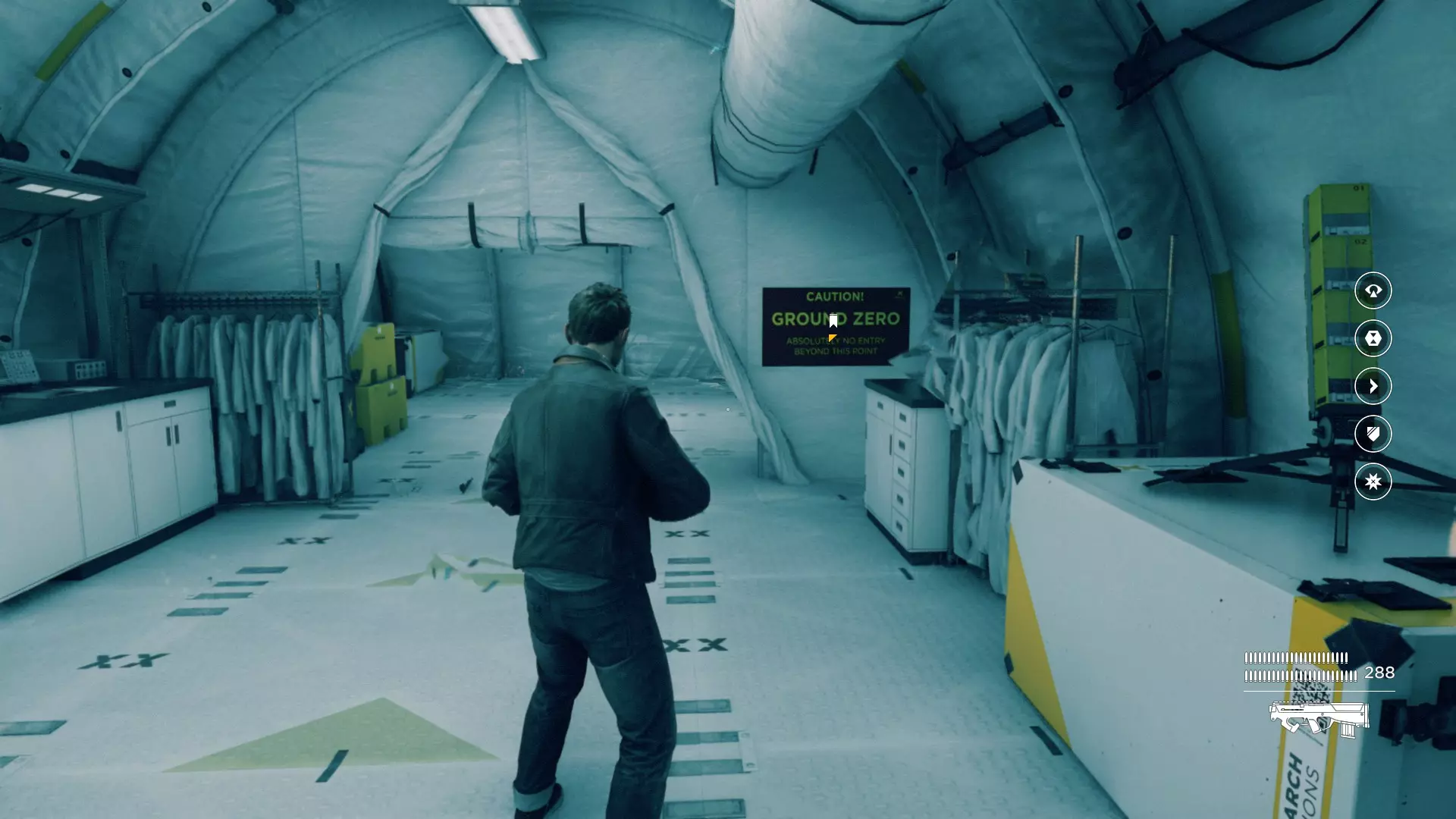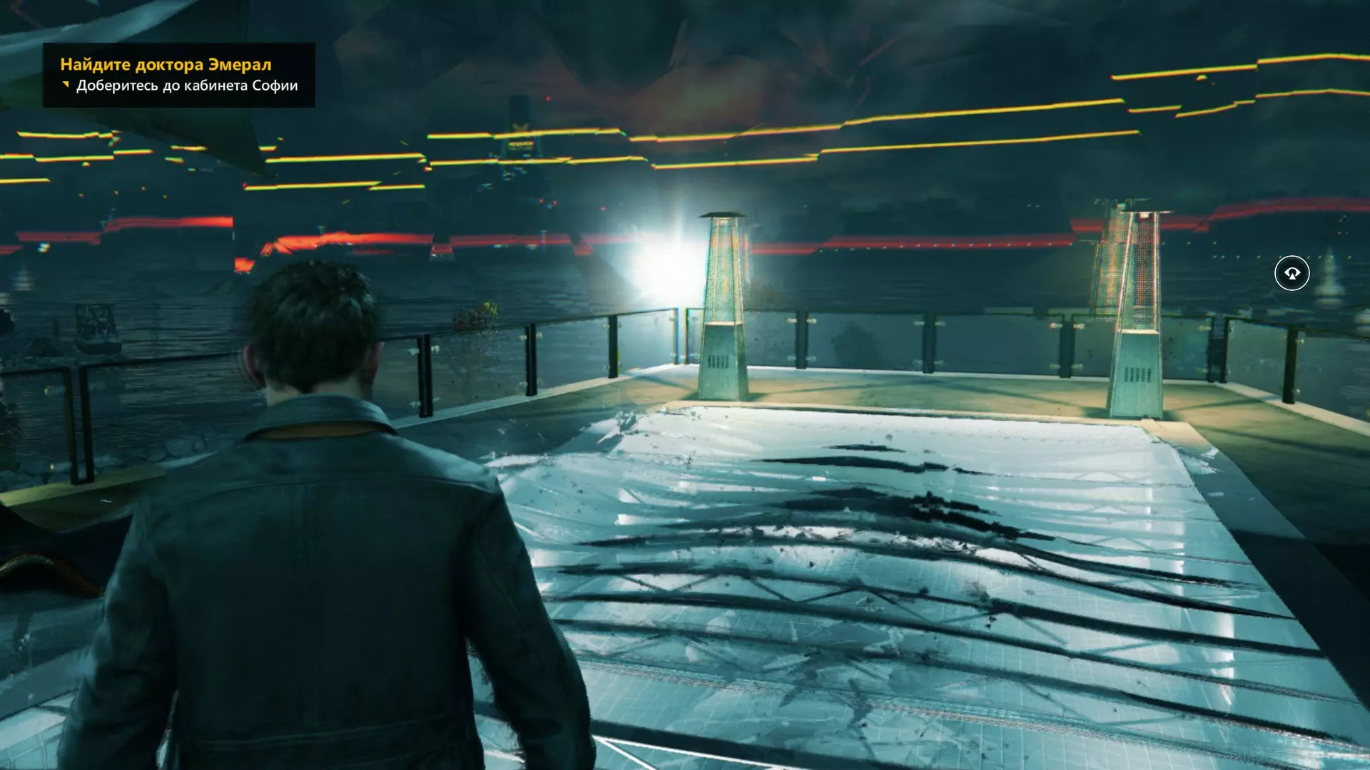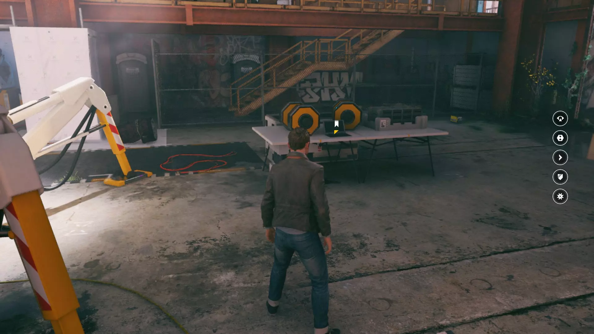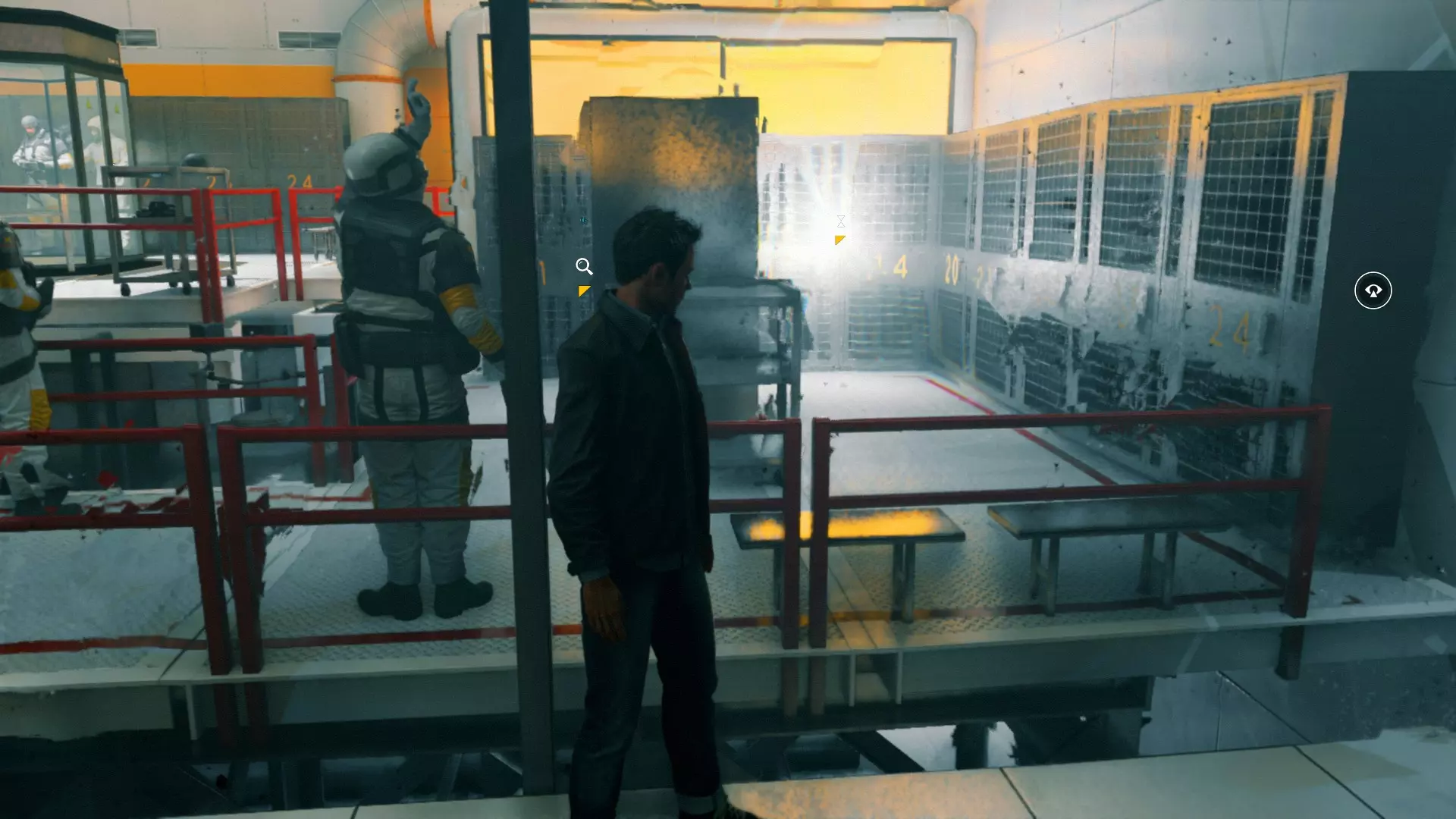 19. 离开白色走廊后,走到白色路障后面——靠近白色桶的装置旁。开启视觉模式。这是我们的下一个技能点。