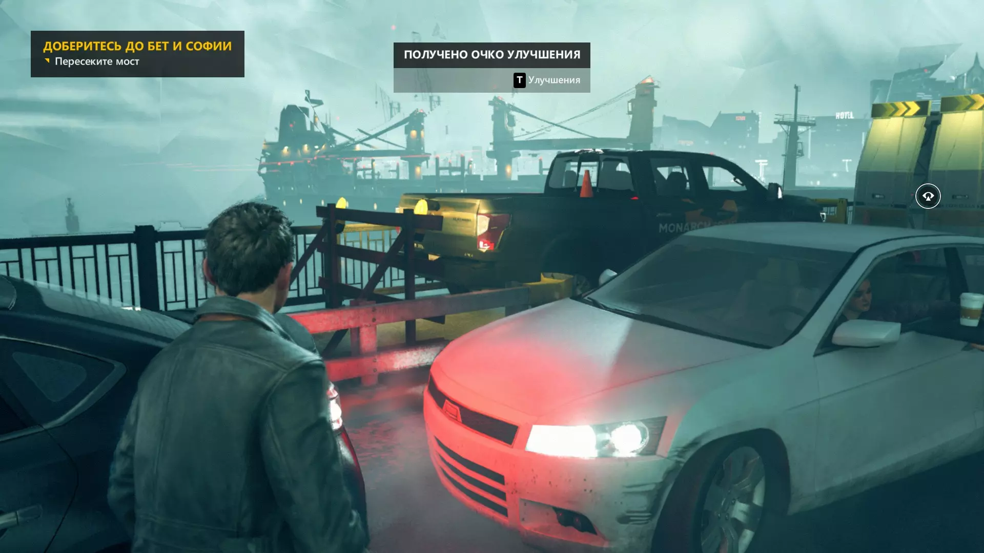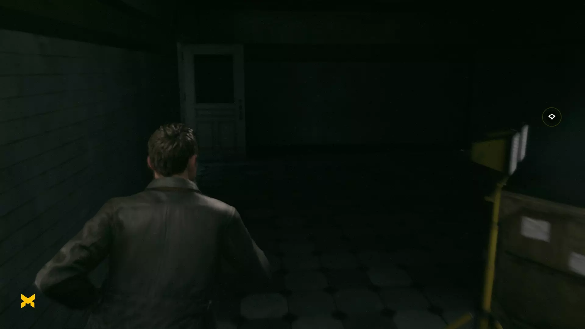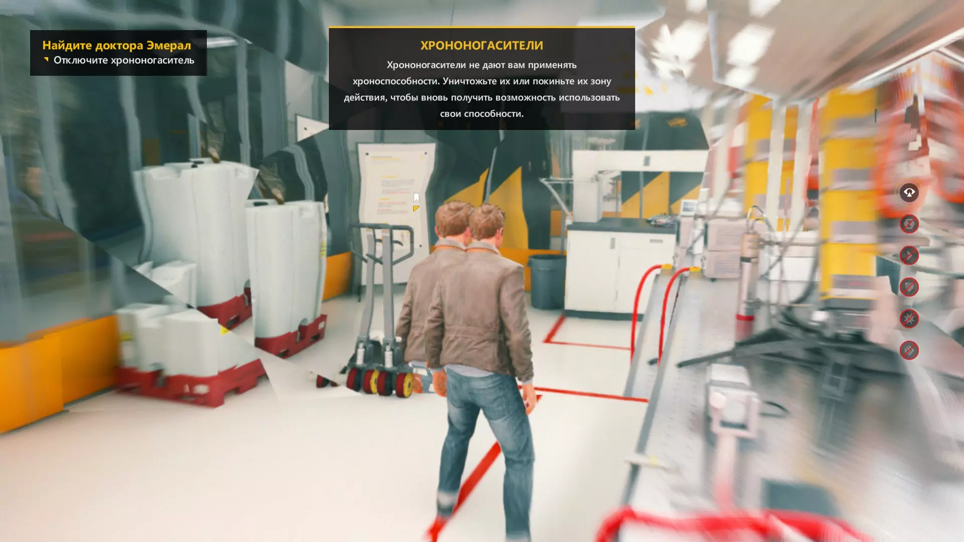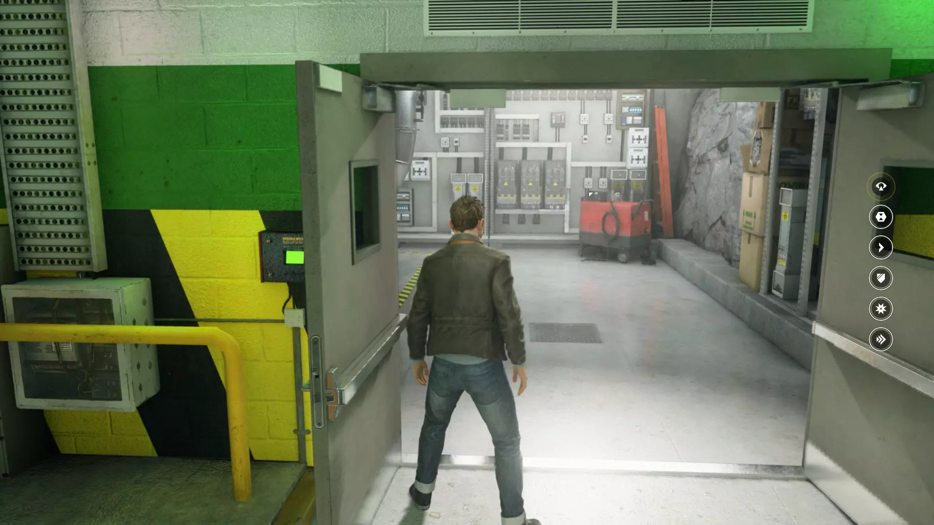 19. 离开白色走廊后,走到白色路障后面——靠近白色桶的装置旁。开启视觉模式。这是我们的下一个技能点。