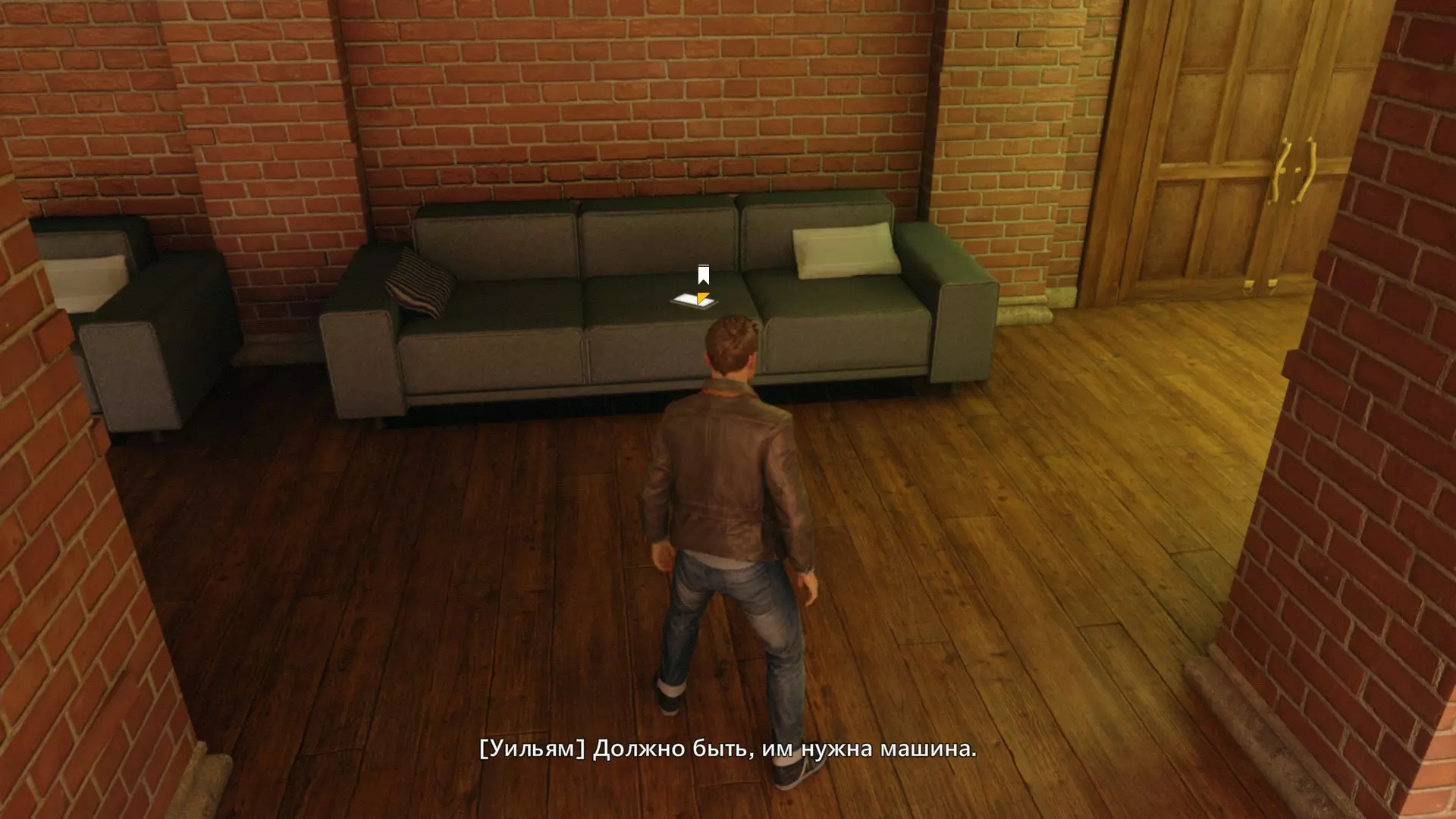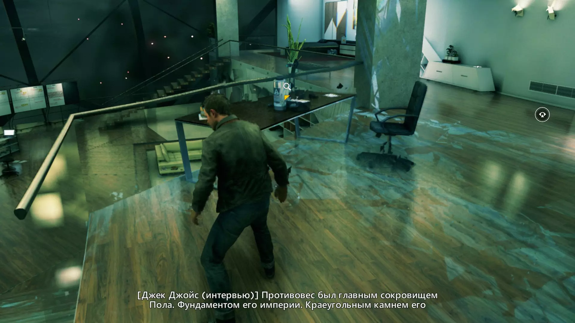 3. 在电梯旁的枪战结束后,我们从电梯右侧进入(旁边还会有一张咖啡桌),在那张巨大的黑色皮质沙发上可以找到平板电脑。