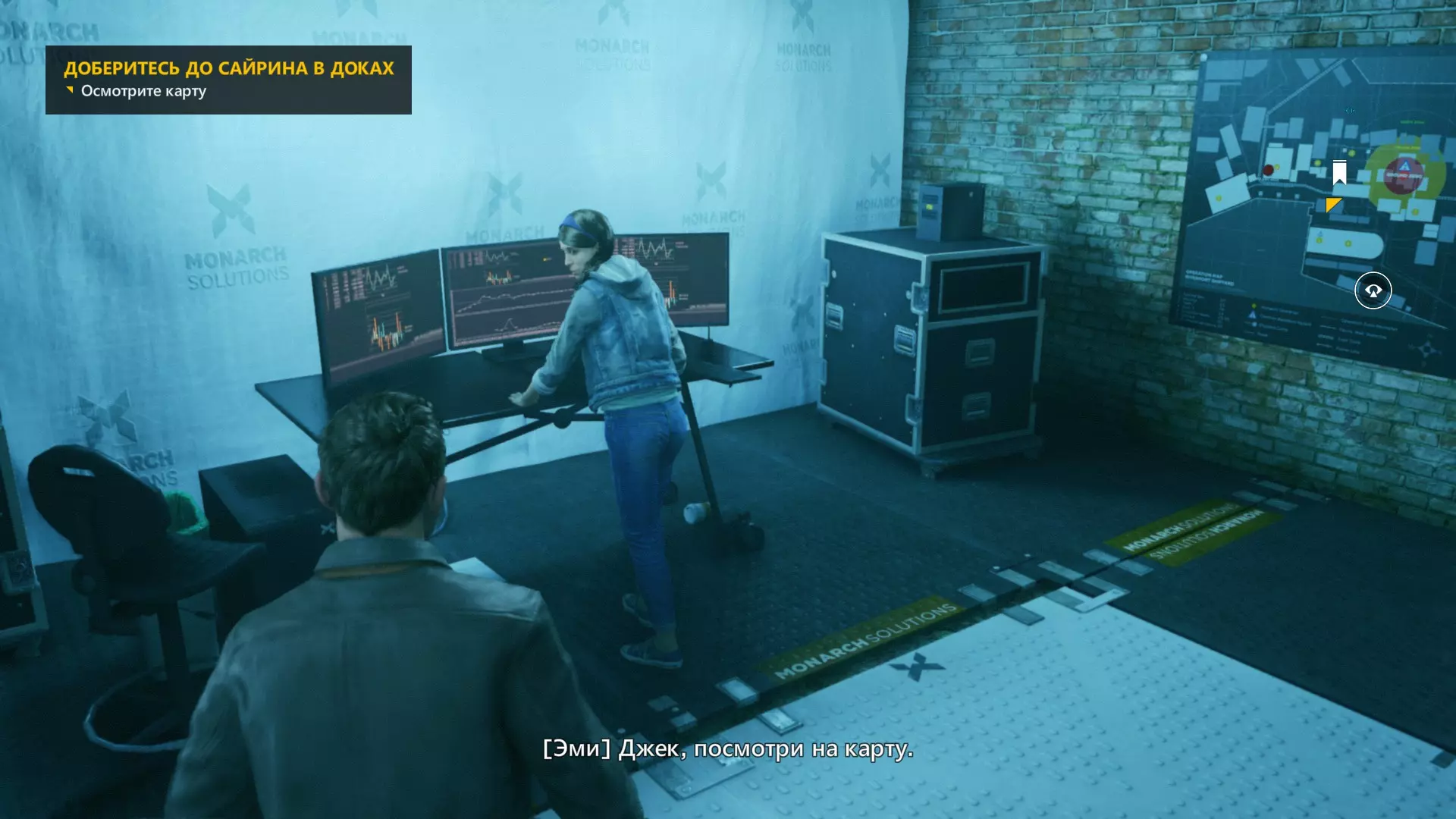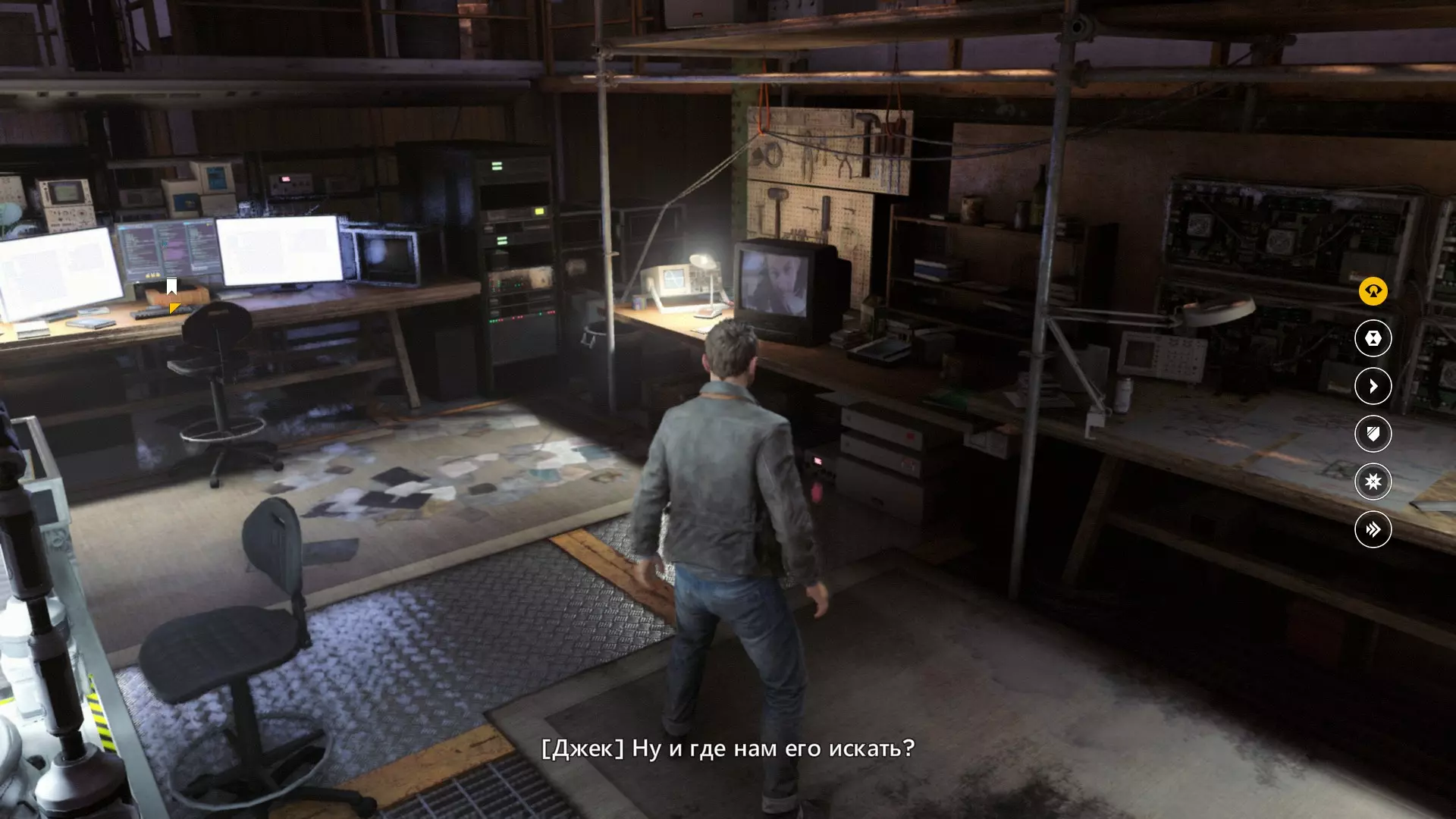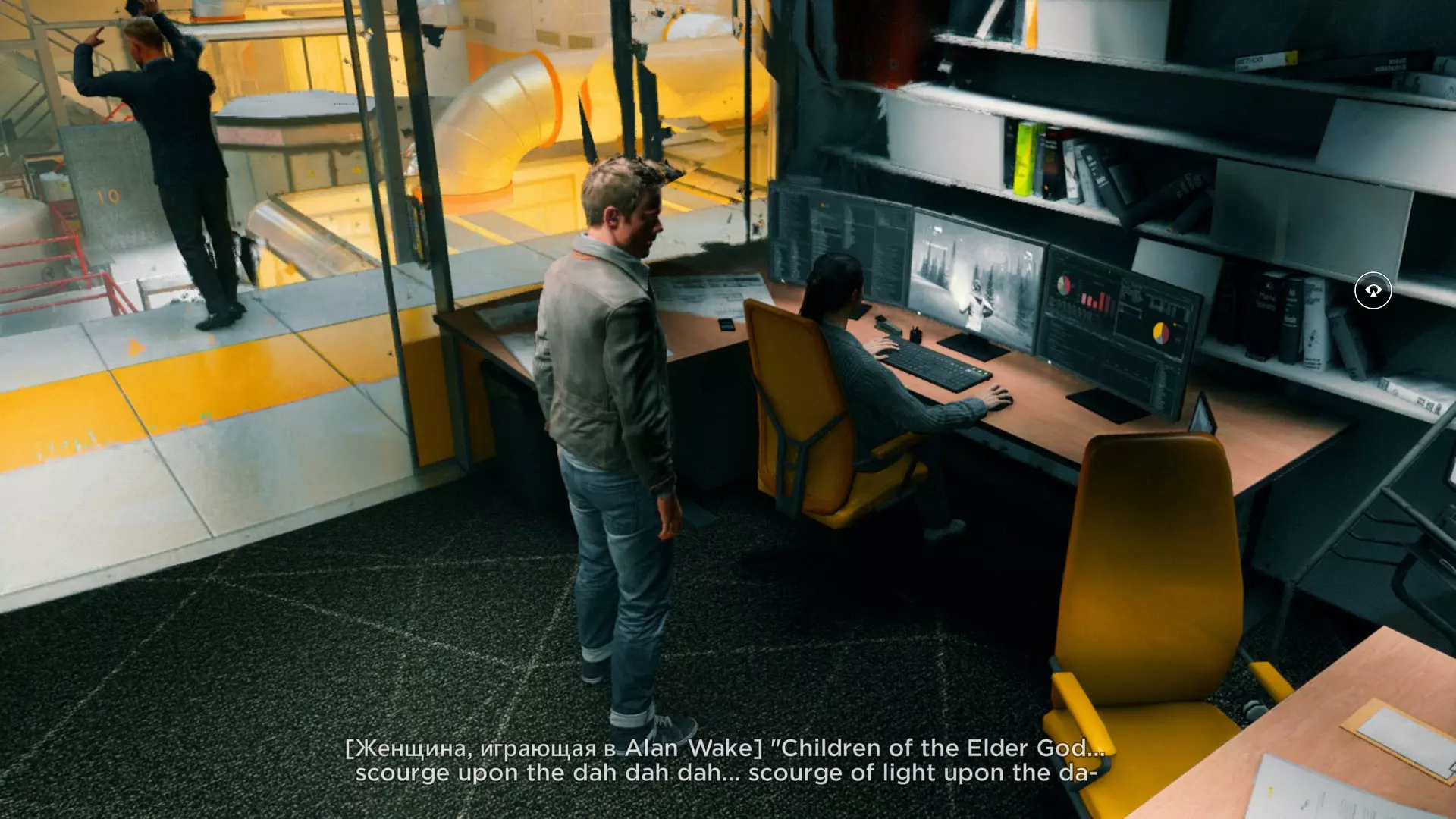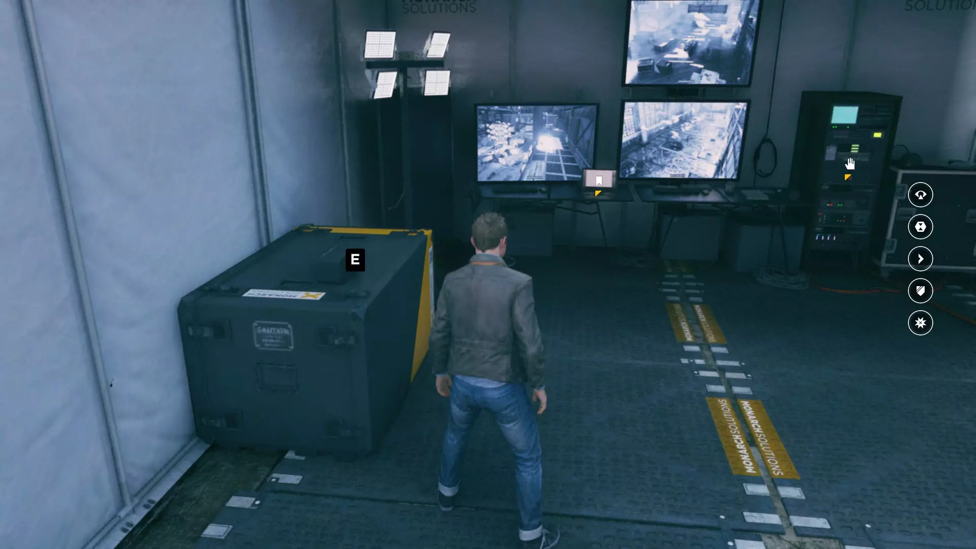 第一幕,第二部分 逃离校园。 1. 当你从服务器机房的隔间出来后,正常进入服务器机房,然后走到中间的电脑旁。
