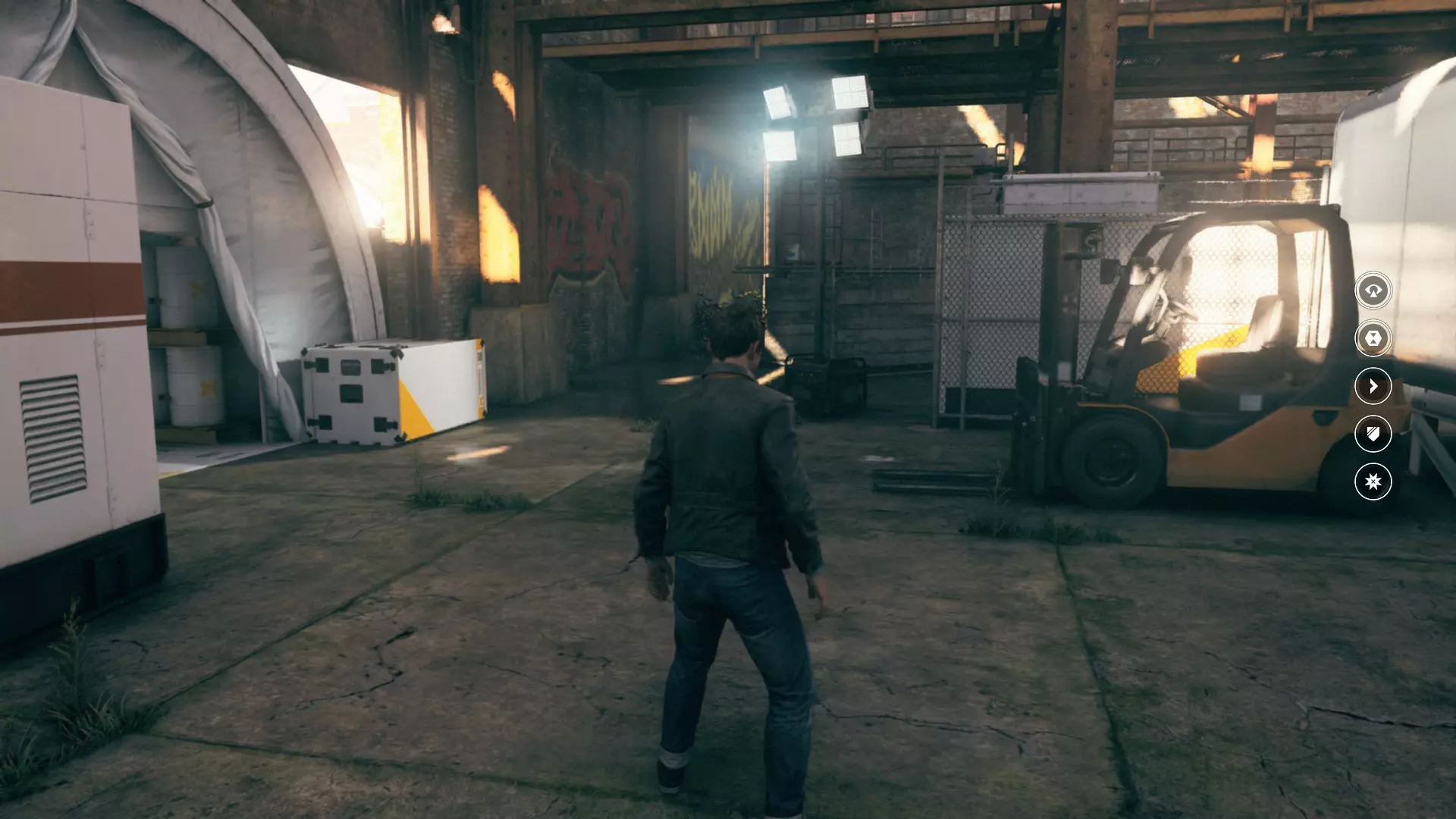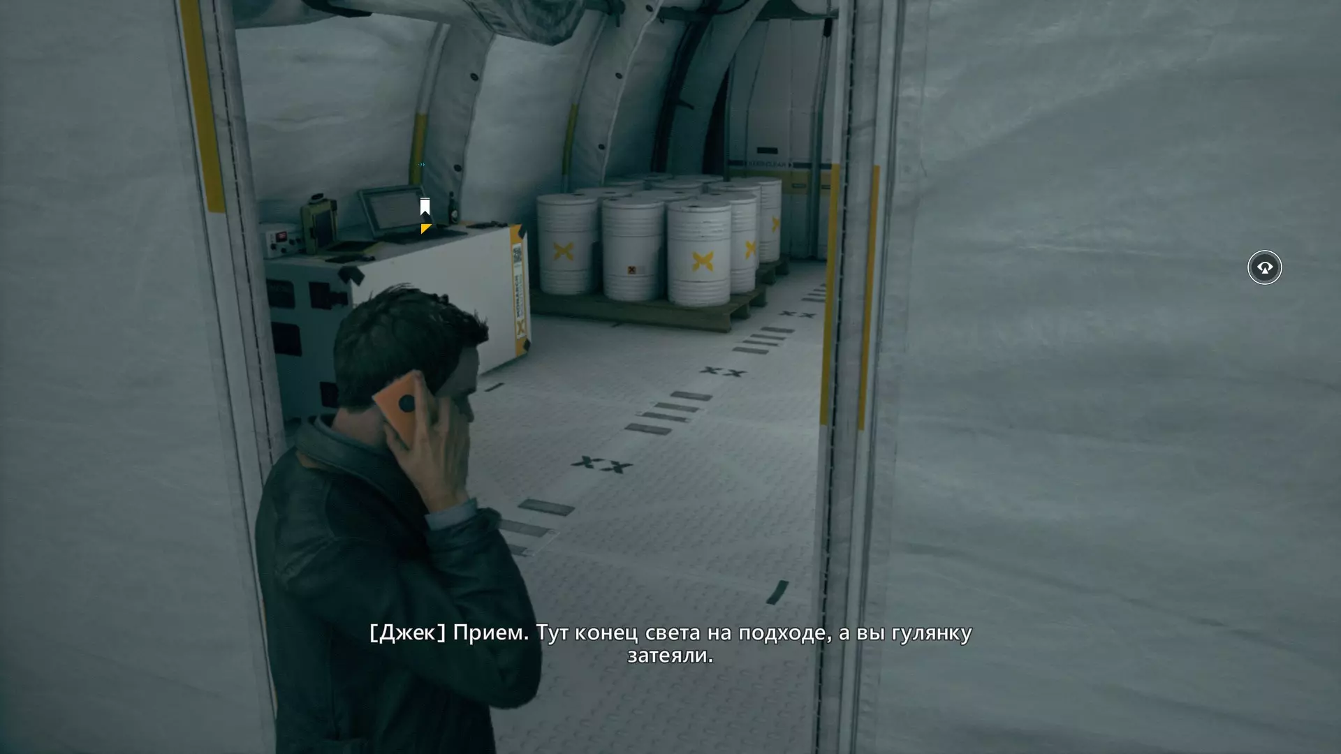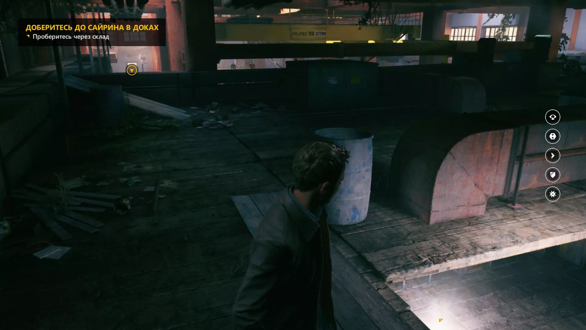 2. 在车库交火并时间暂停后,走出车库来到院子,会看到起重机上方的信源。