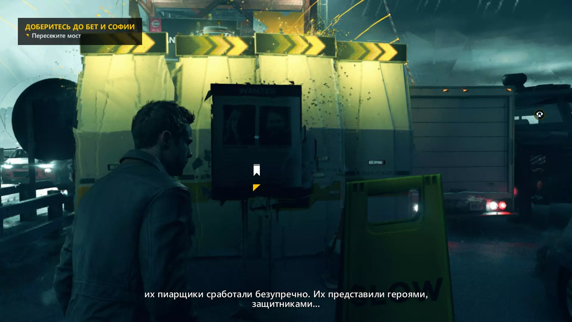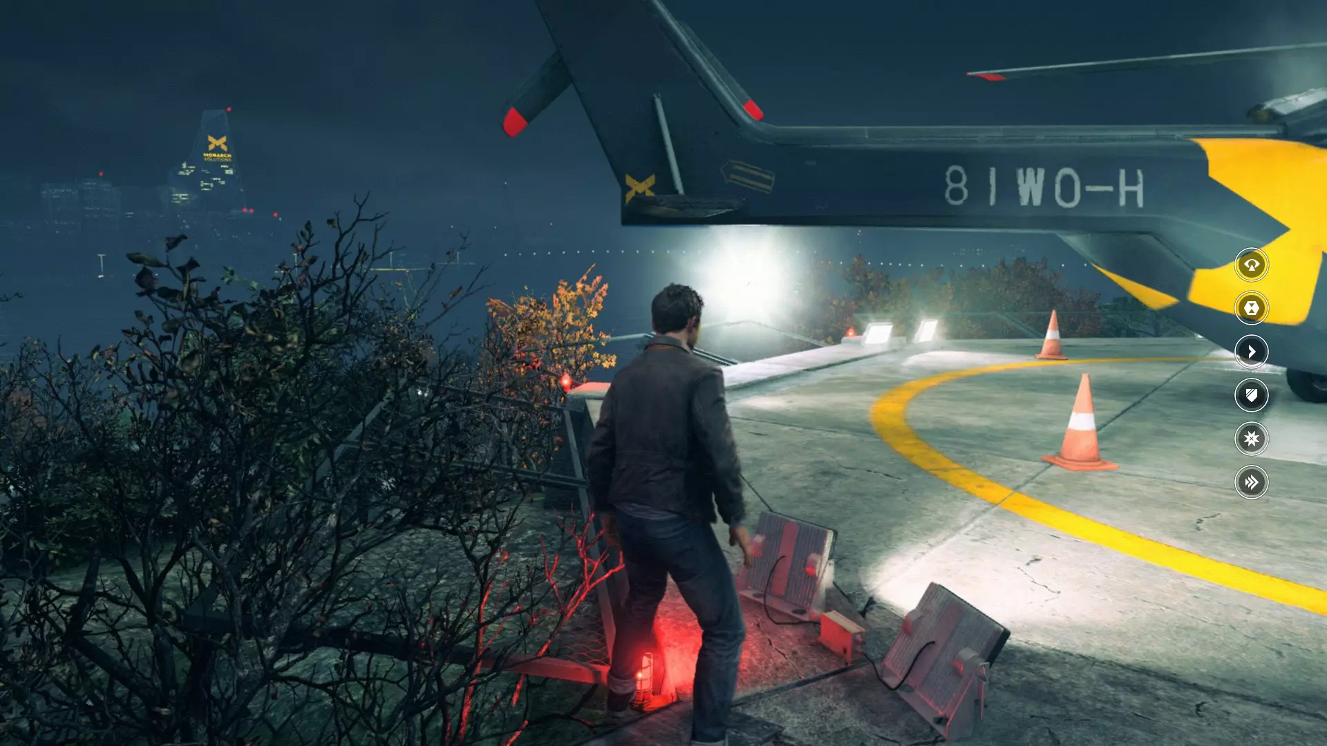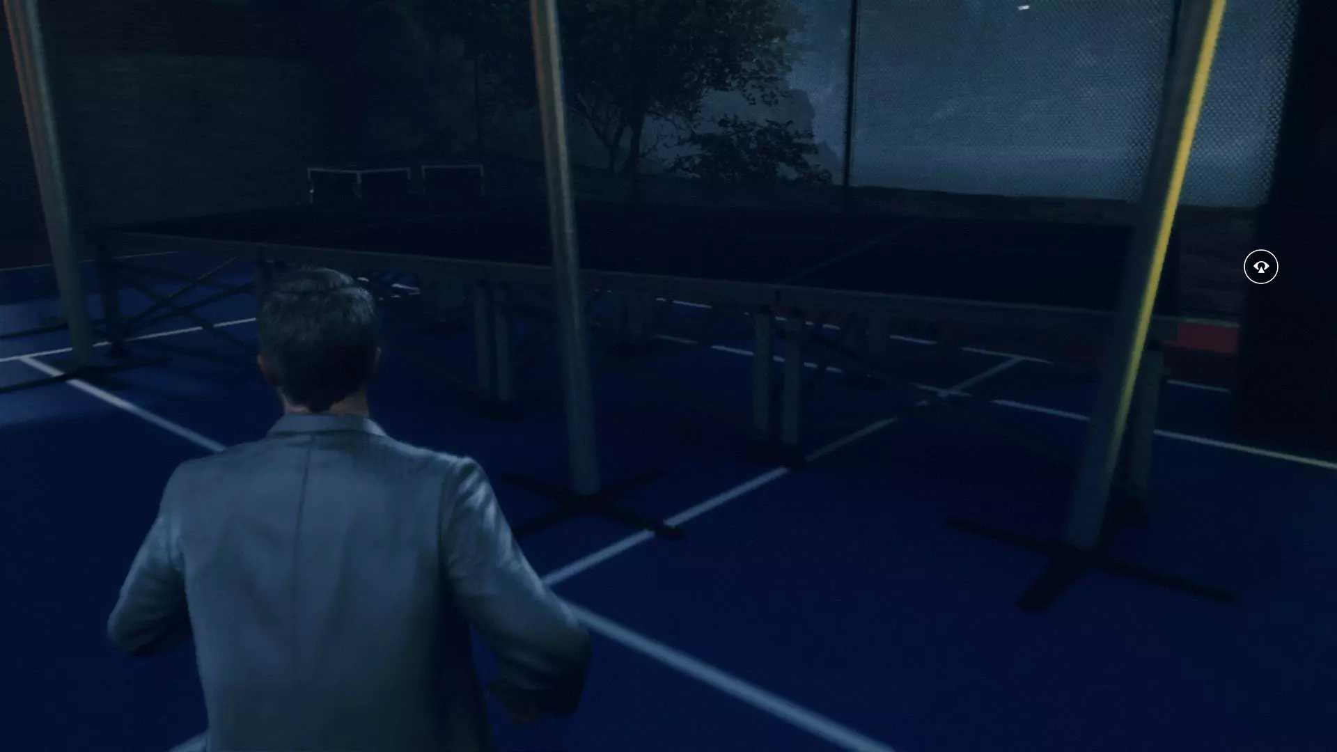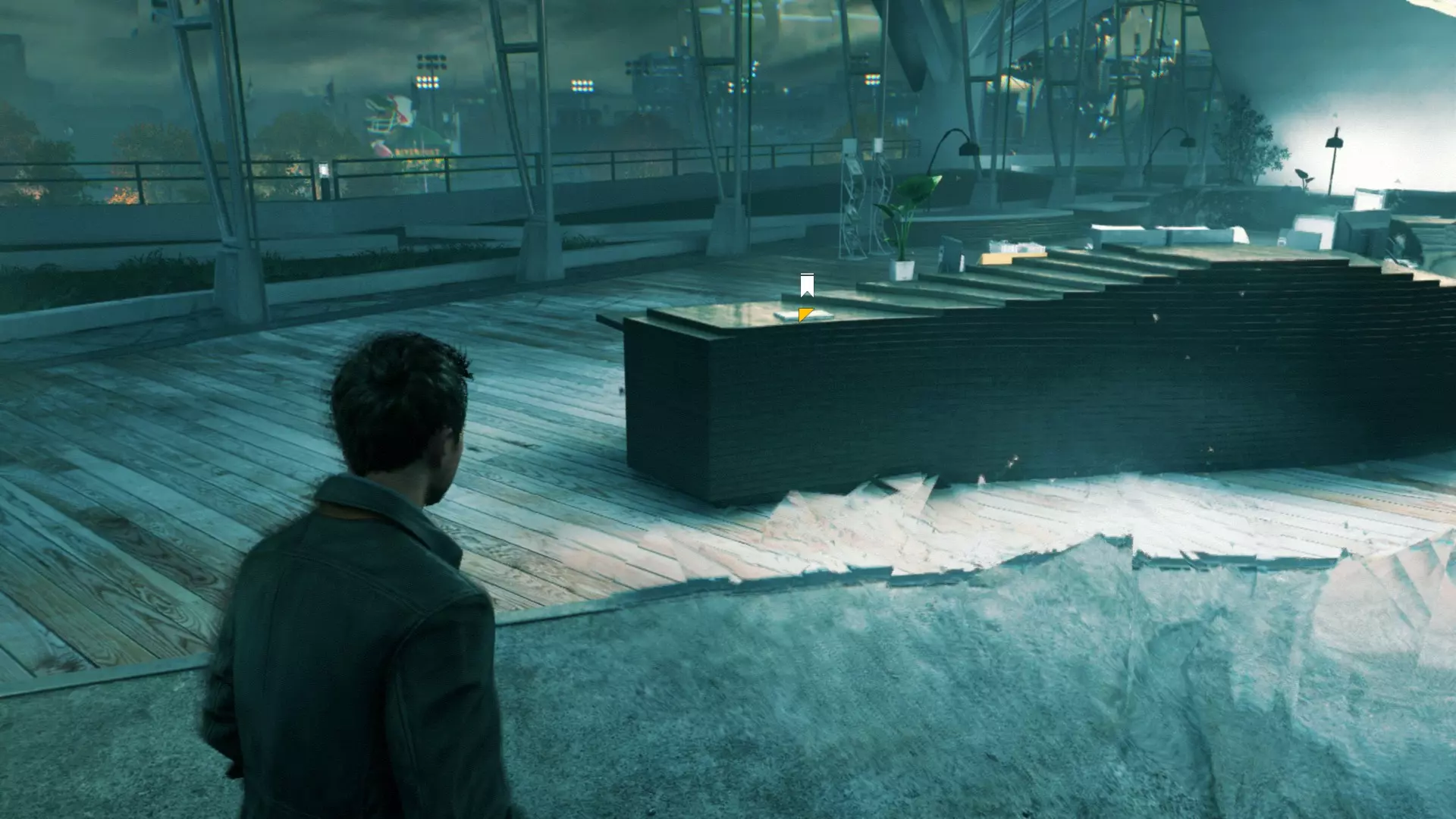 2. 在车库交火并时间暂停后,走出车库来到院子,会看到起重机上方的信源。