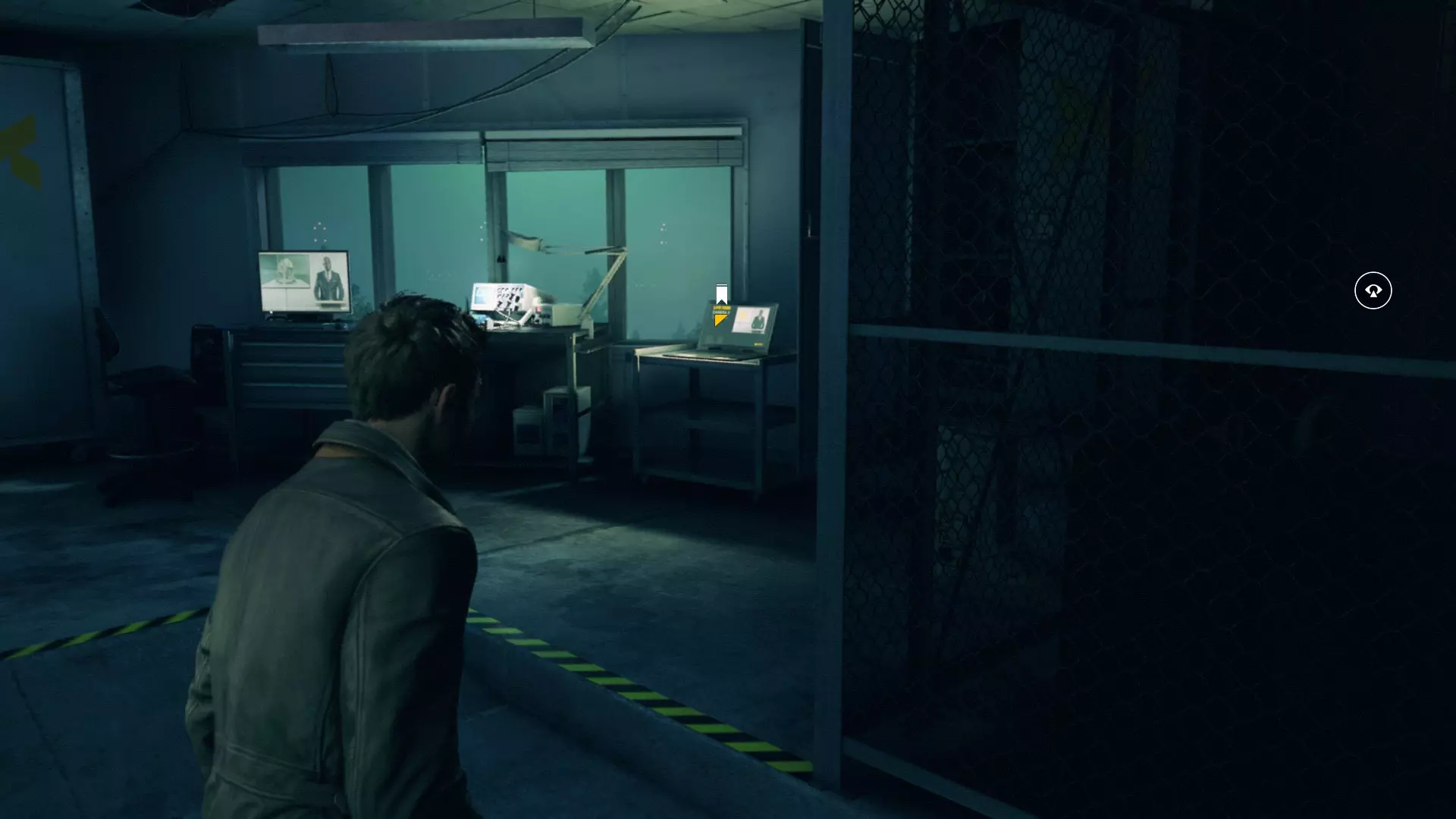 进入墙壁装有网格的房间后,在窗边可以看到一台笔记本电脑。