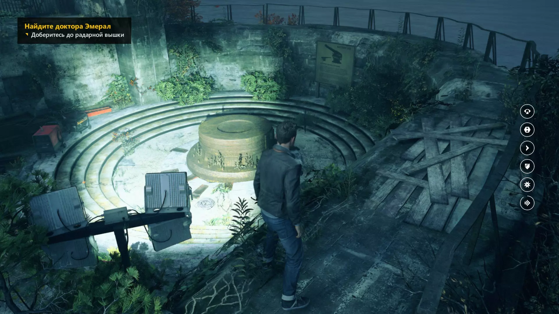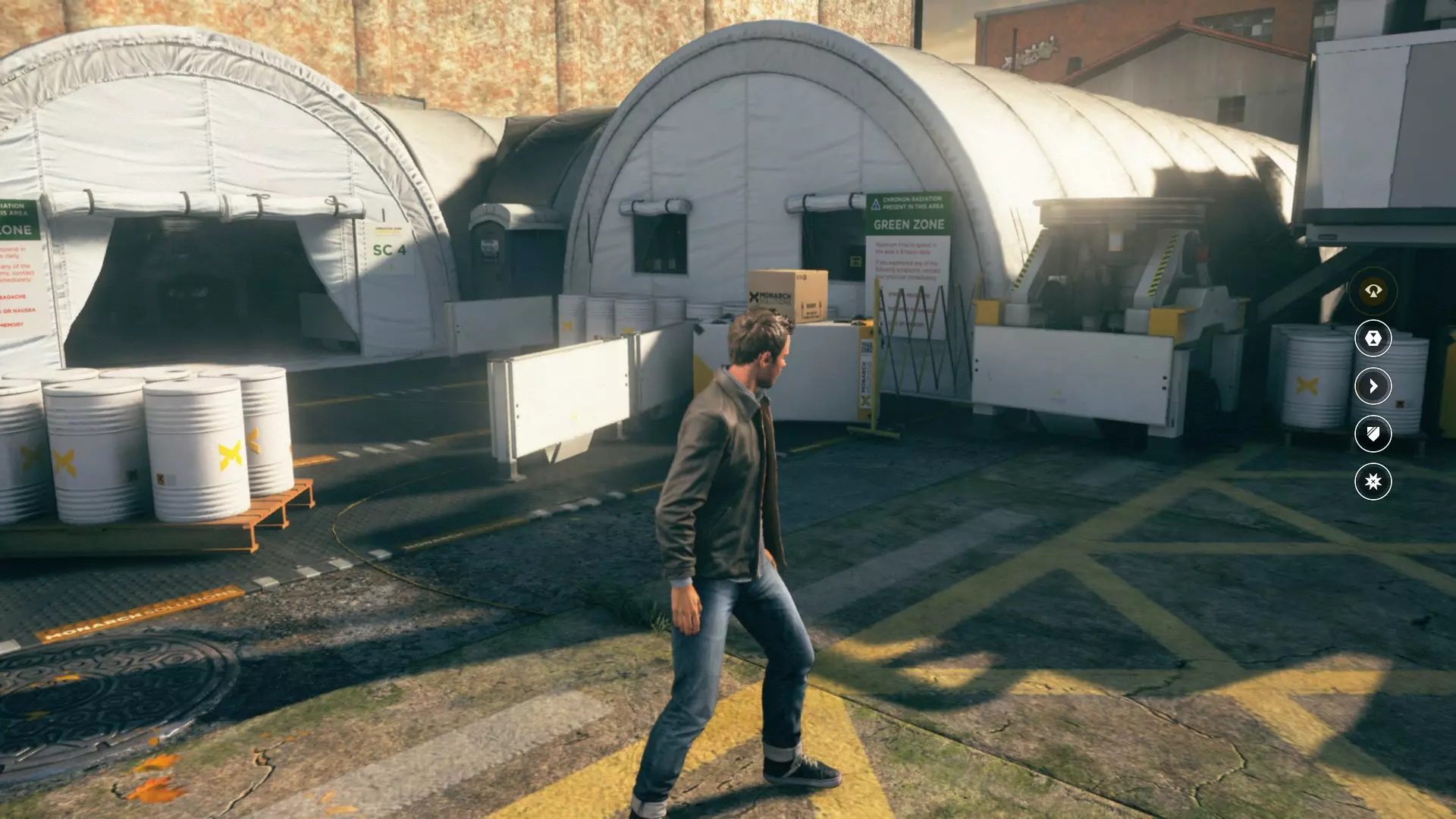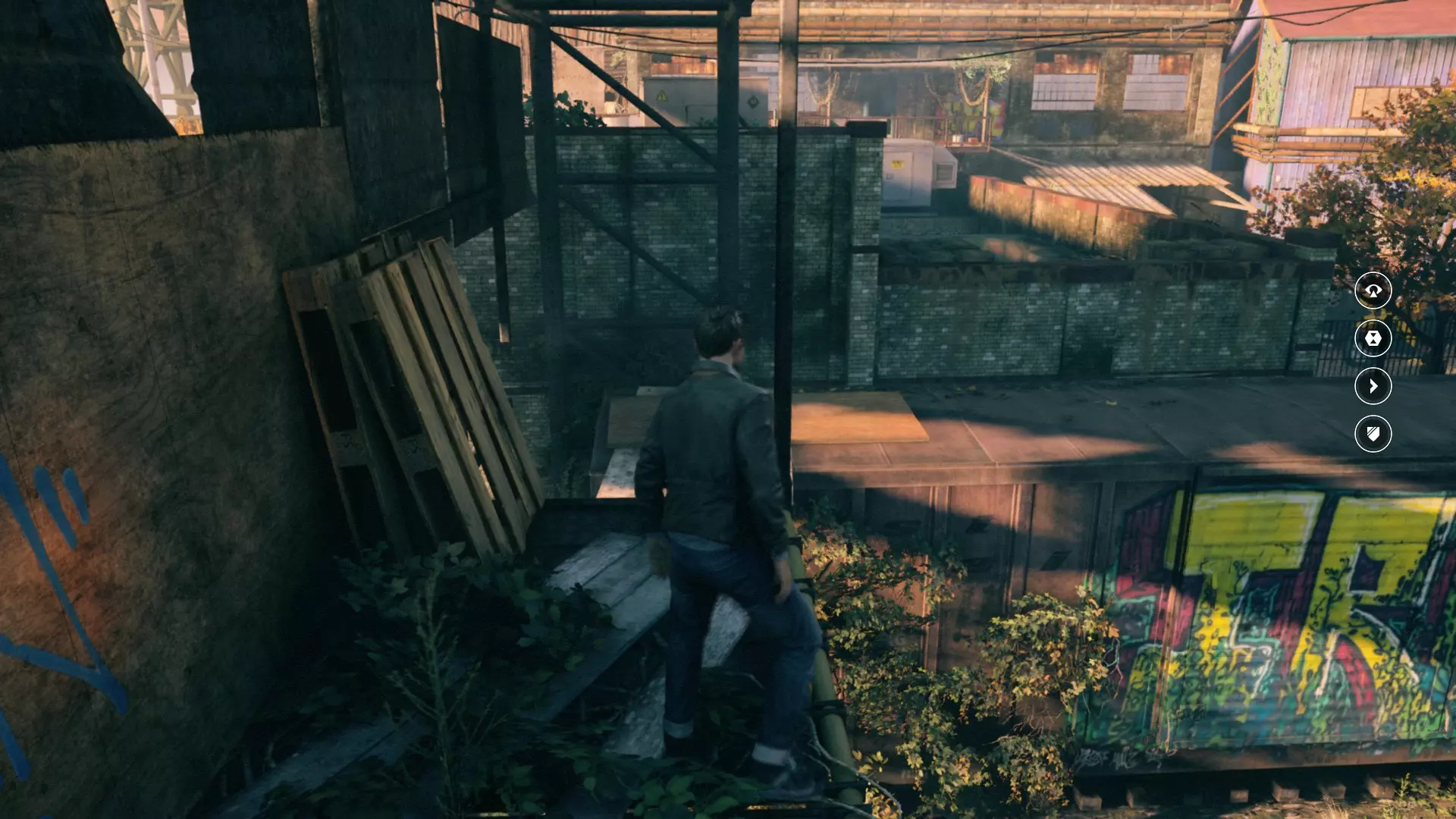 3. 修复炮台,然后登上右侧的混凝土护栏。之后沿着墙壁奔跑,在尽头开启时间视觉。