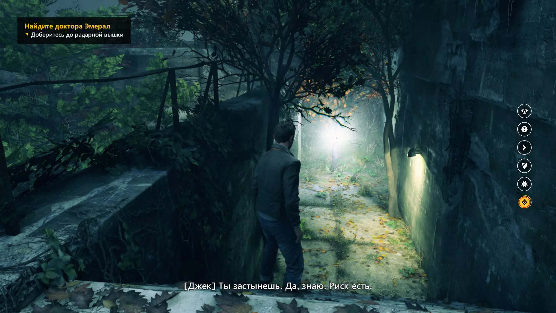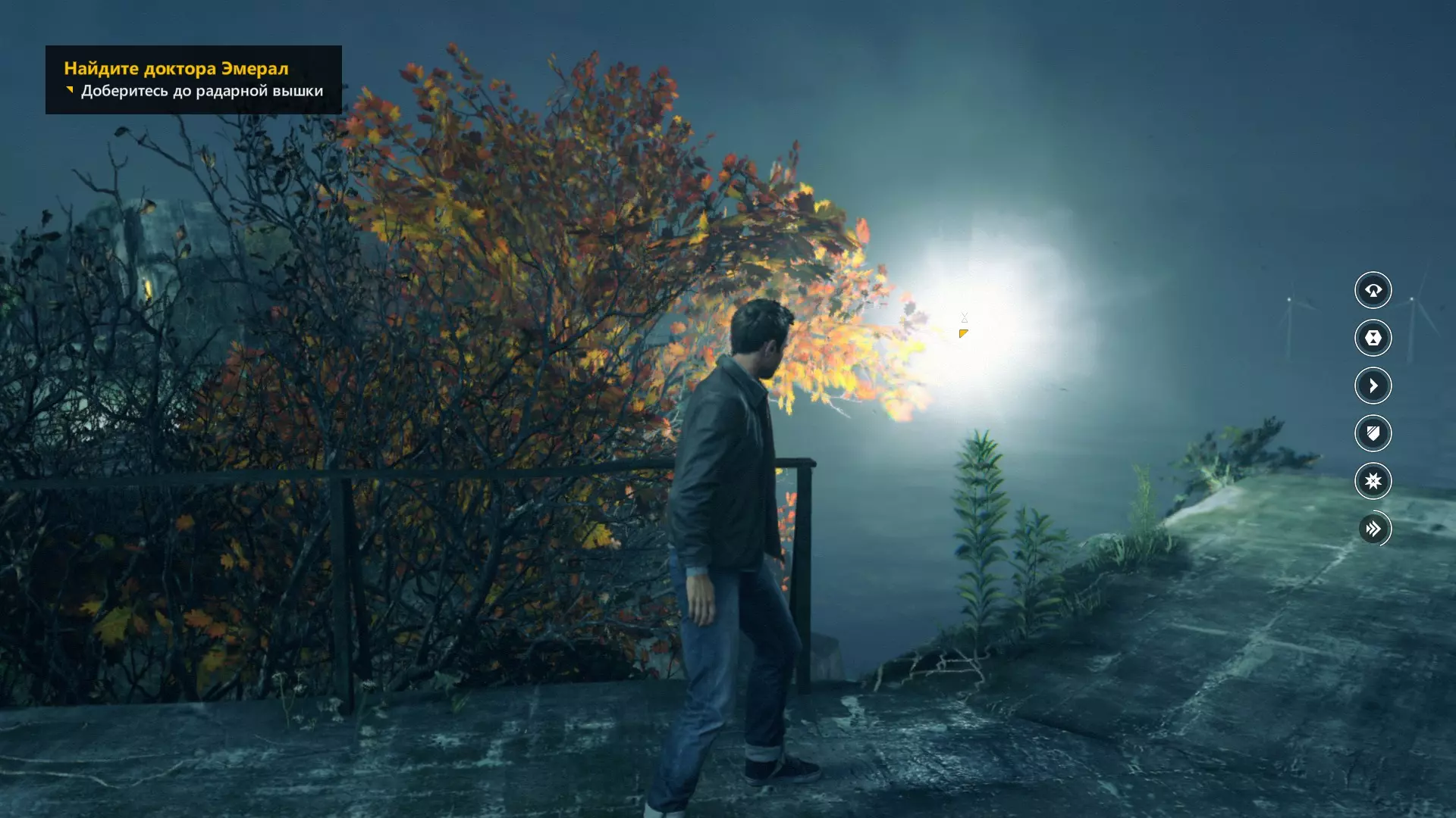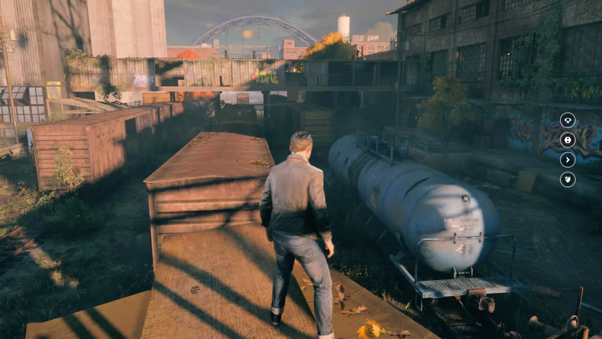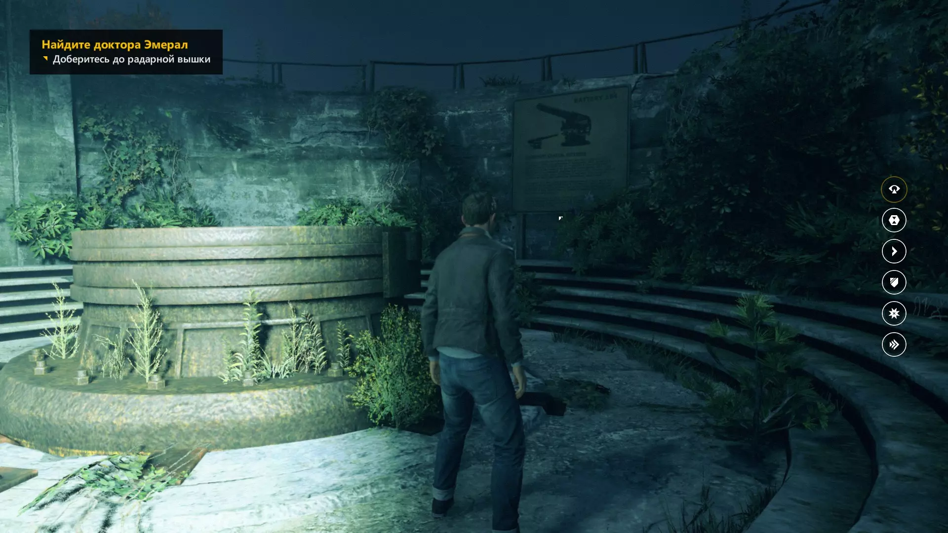 3. 修复炮台,然后登上右侧的混凝土护栏。之后沿着墙壁奔跑,在尽头开启时间视觉。
