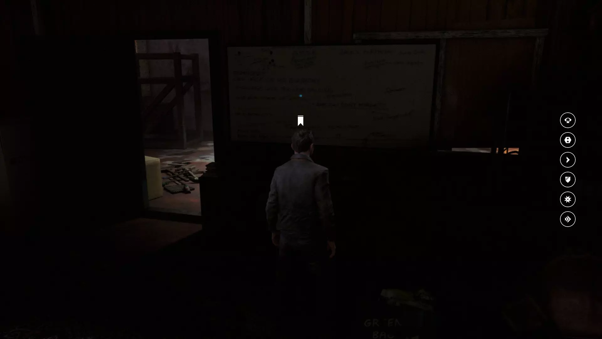 17. 在那扇出故障的门后面,左侧墙上会挂着一块板子。