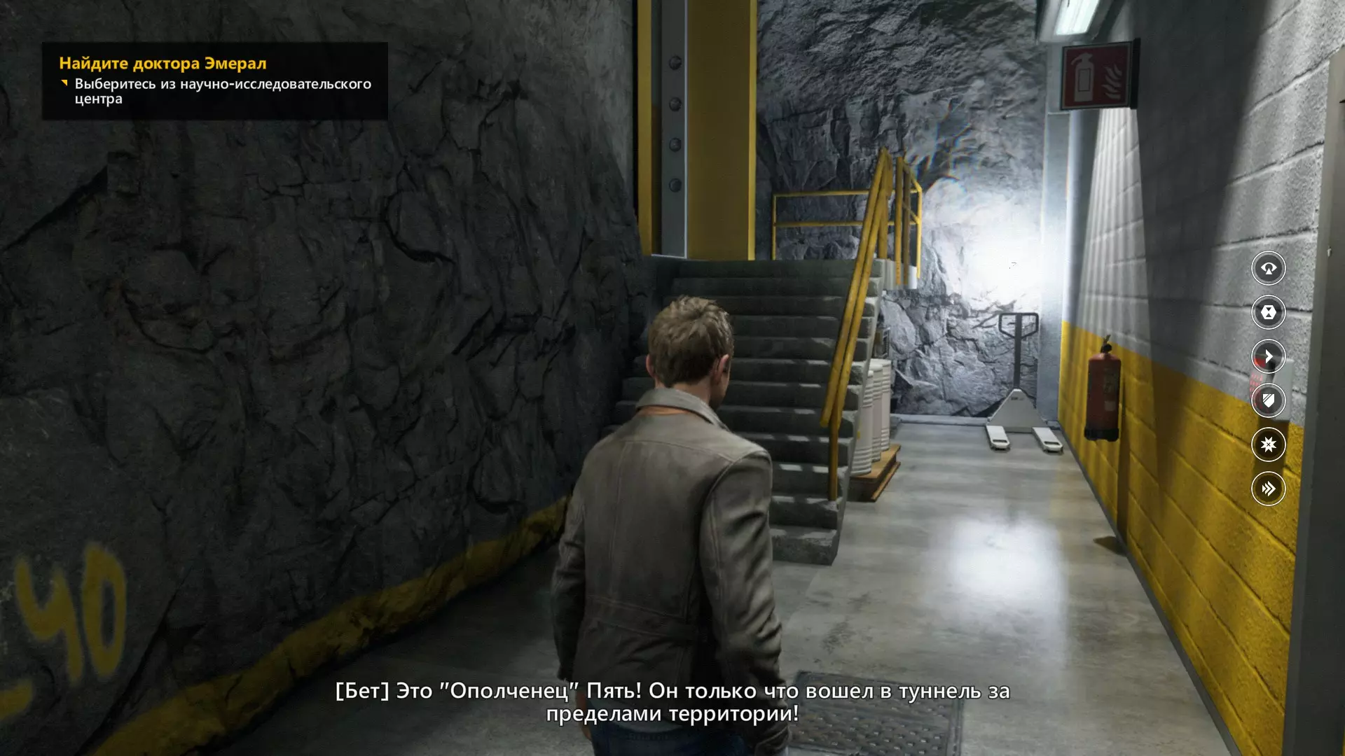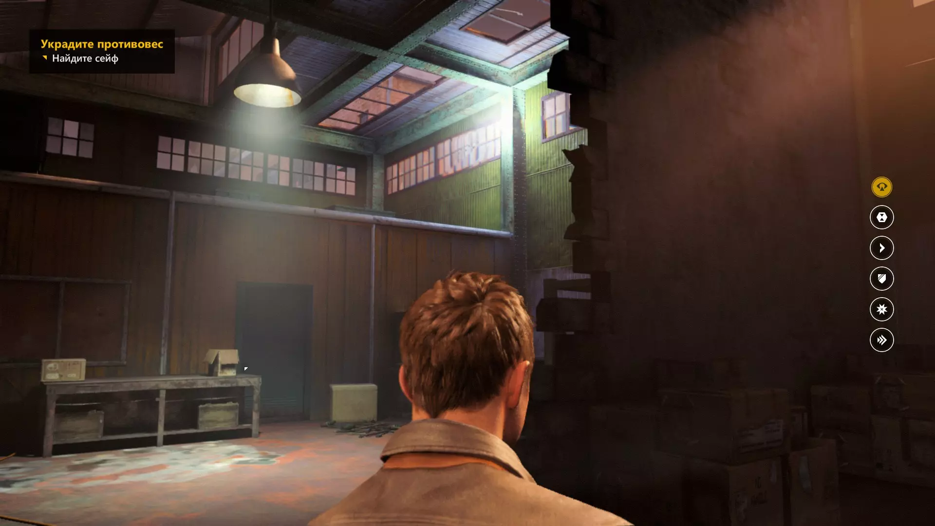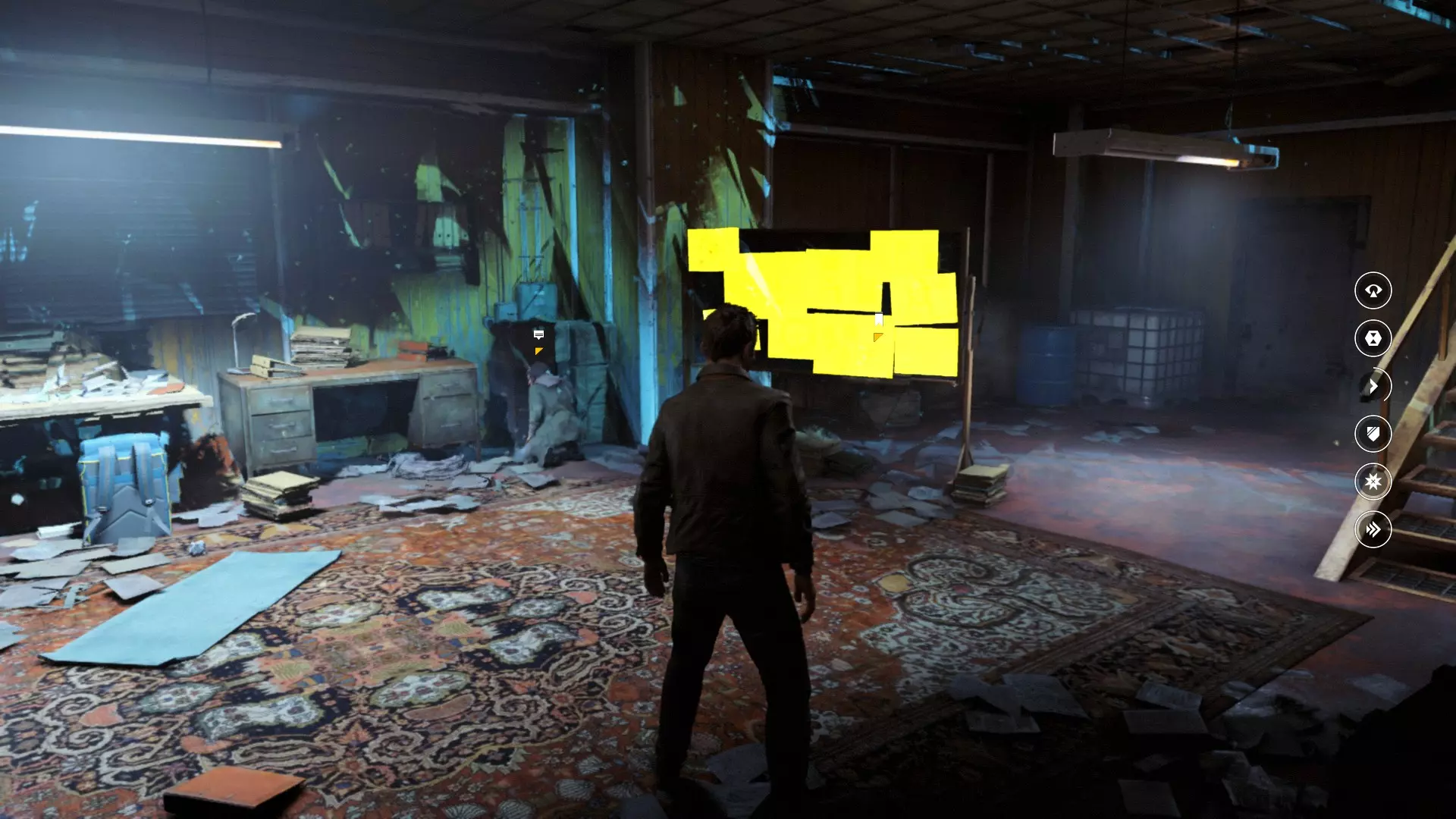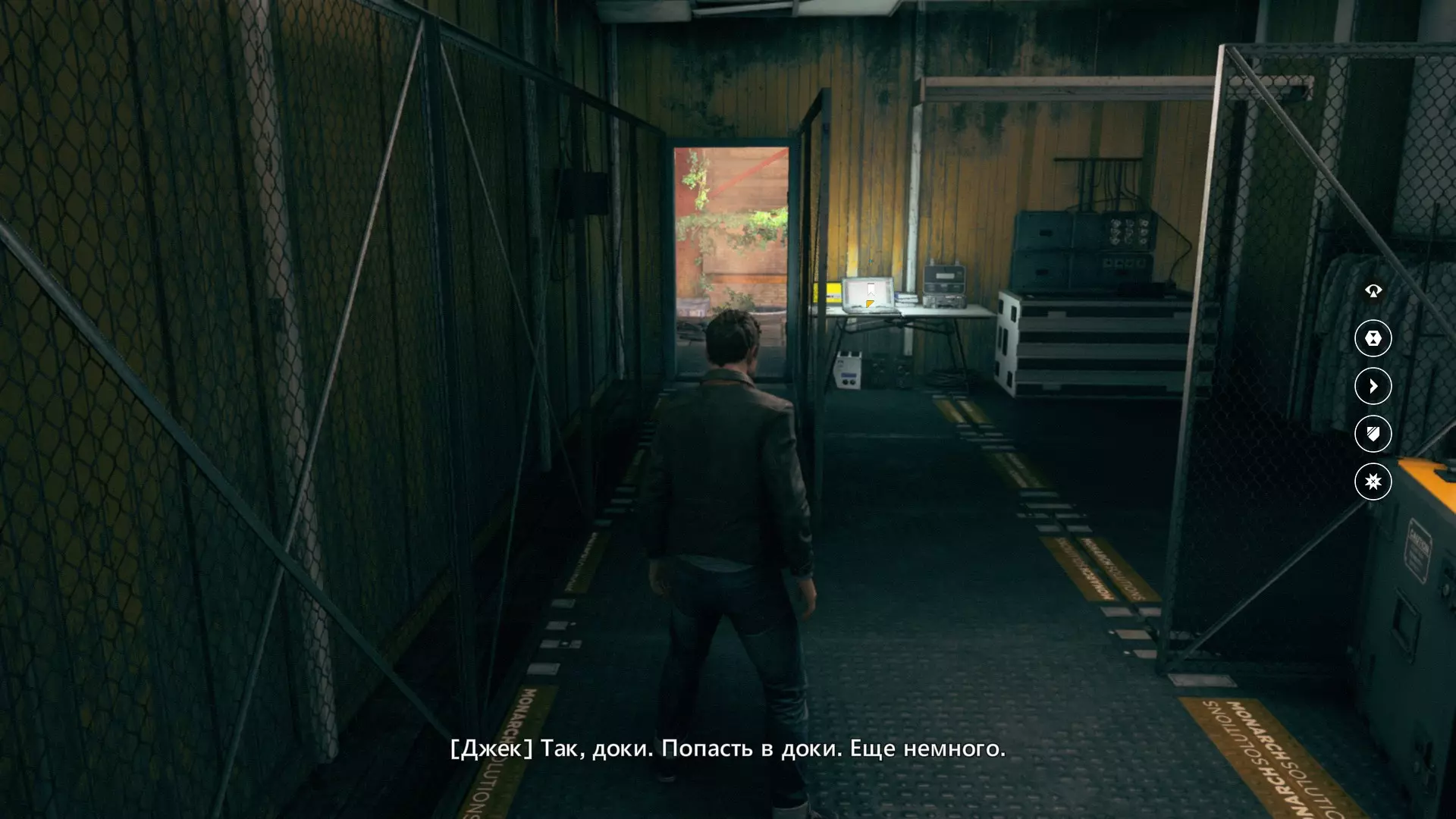3. 我们利用电梯的一个有趣变体,登上了机库的二楼,看到楼梯后立刻从楼梯下去。开启感知能力,和往常一样,这是对细心观察的奖励。