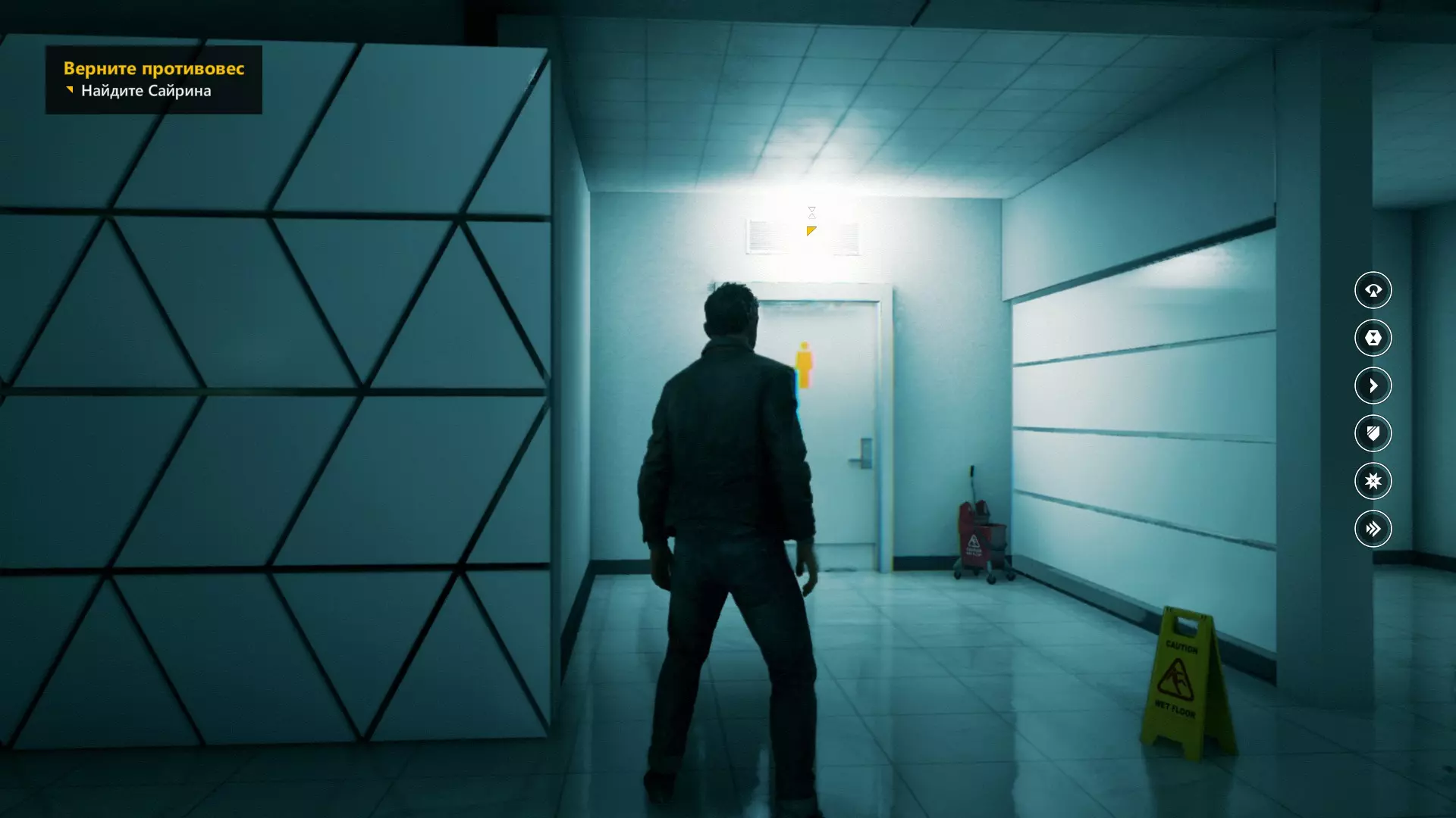 8. 等待贝丝打开门后,你将进入明亮的走廊。需要在第一个路口左转。使用【视觉】技能可以看到源头。