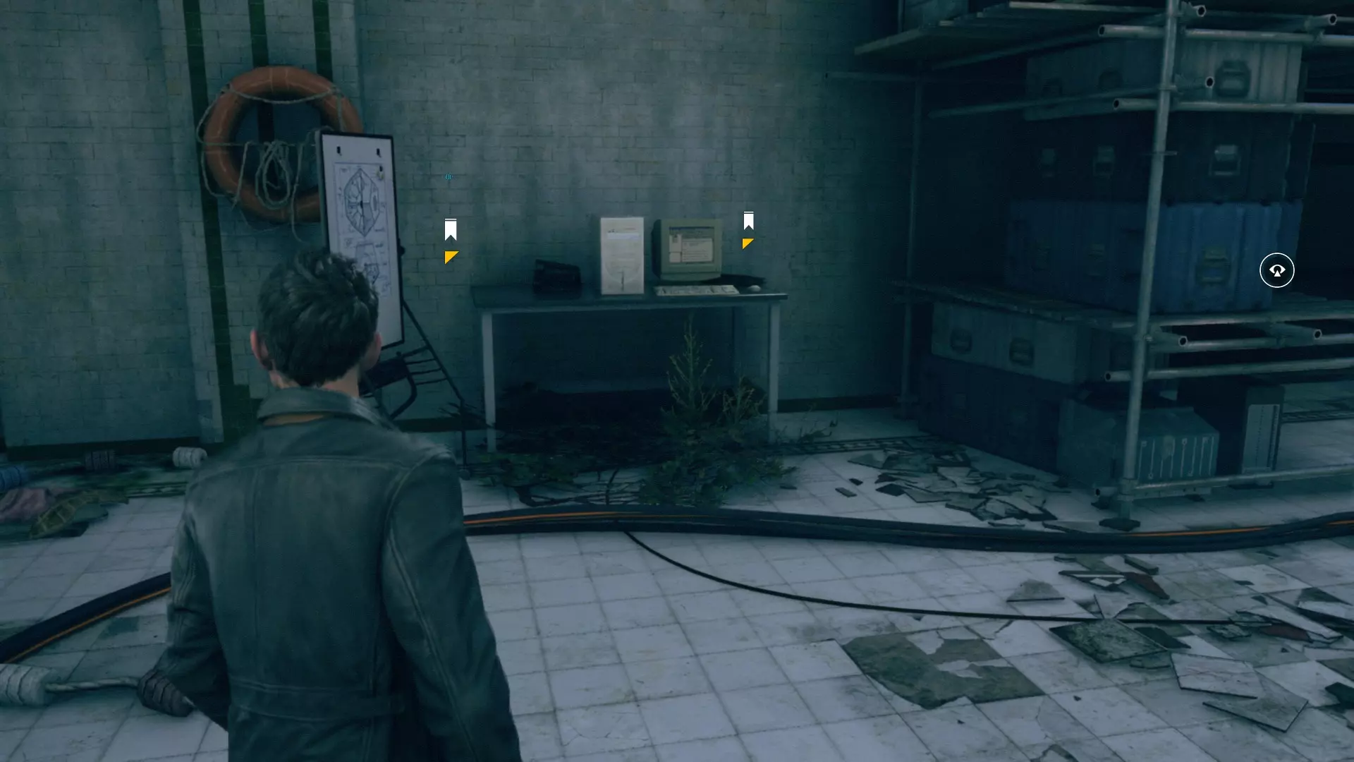 22. 在同一个更衣室里,走到远处的柜子旁,开启视觉模式并找到源头。