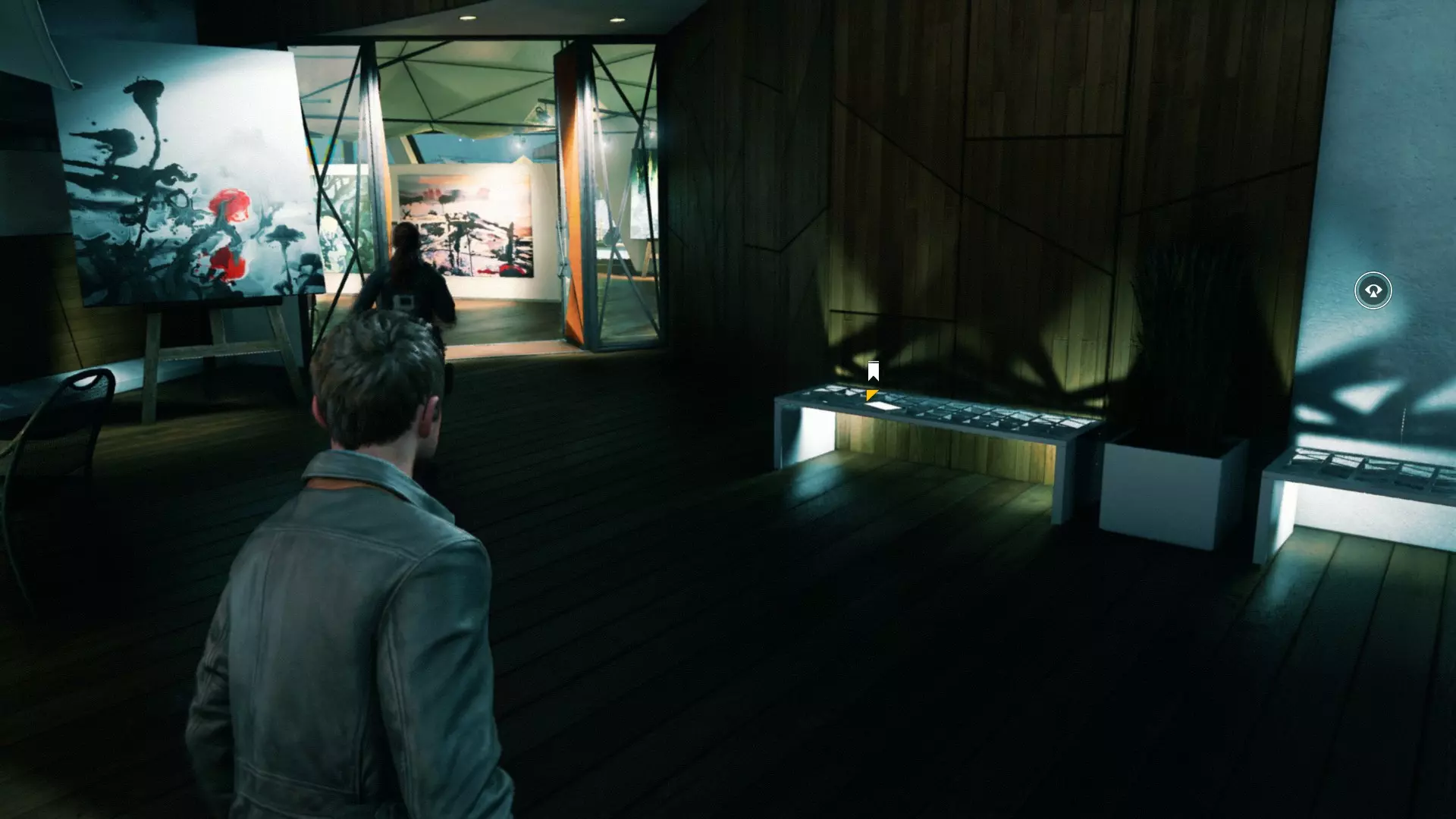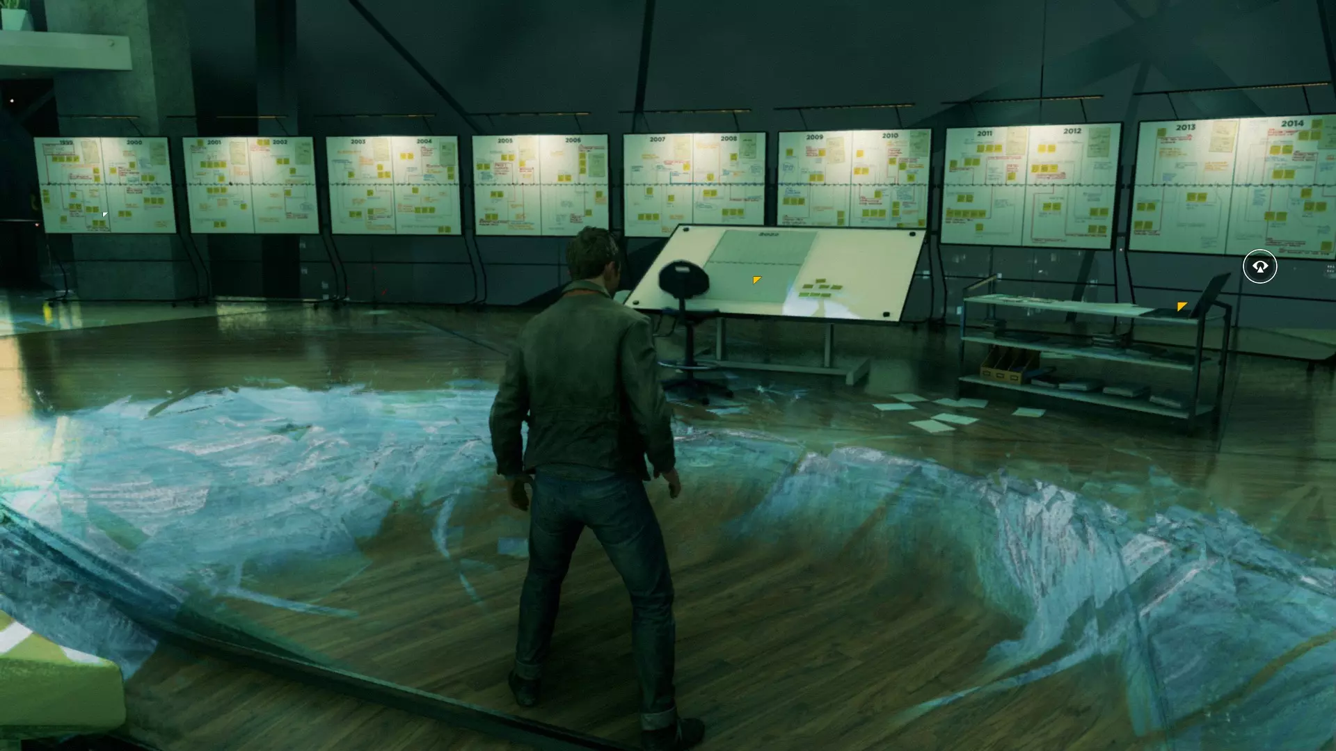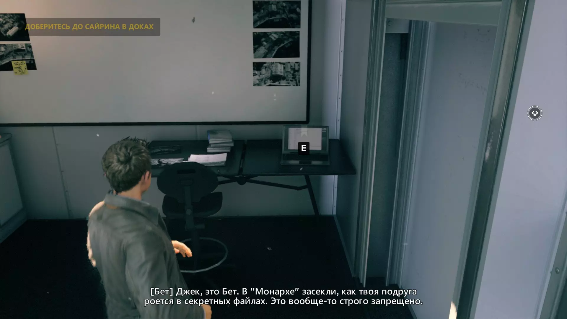 13. 继续跟着保罗前进。进入一个大房间后,我们穿过玻璃控制室。入口处的架子上放着一张照片。