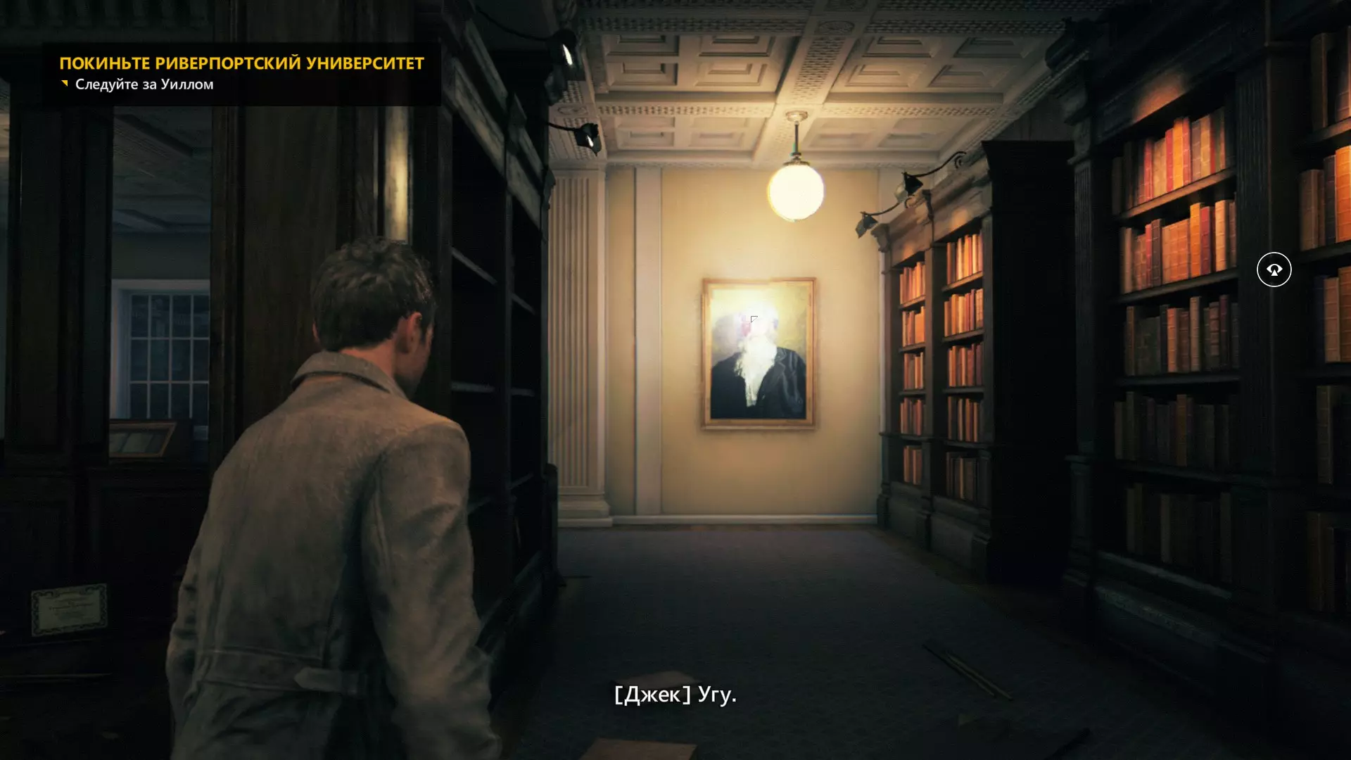 回到我们获得移动能力的阅览室,前往房间的右下角,对着画中留胡子男人的画作开启洞察力。