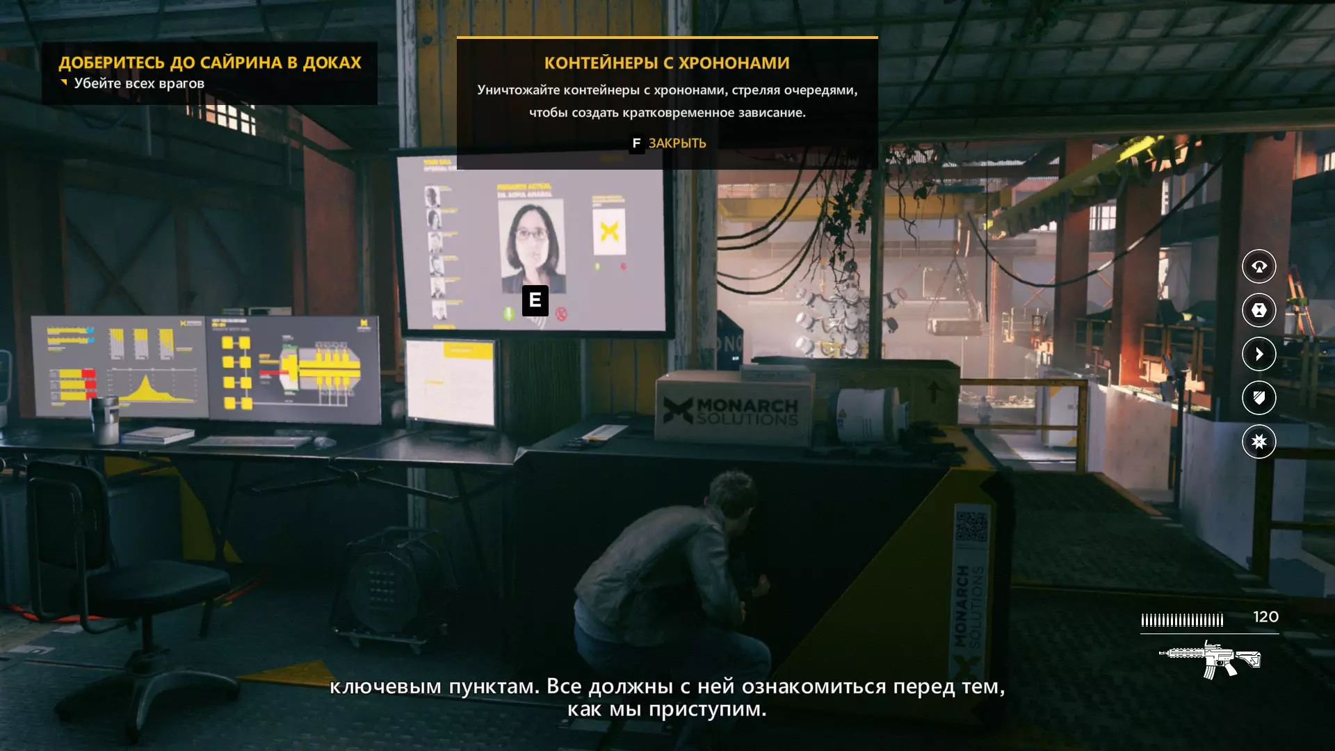 16-17. 激烈枪战过后,按照剧情推进,前往需要进行时间操控的地点。进入内部后,那里会有笔记本电脑和收音机。