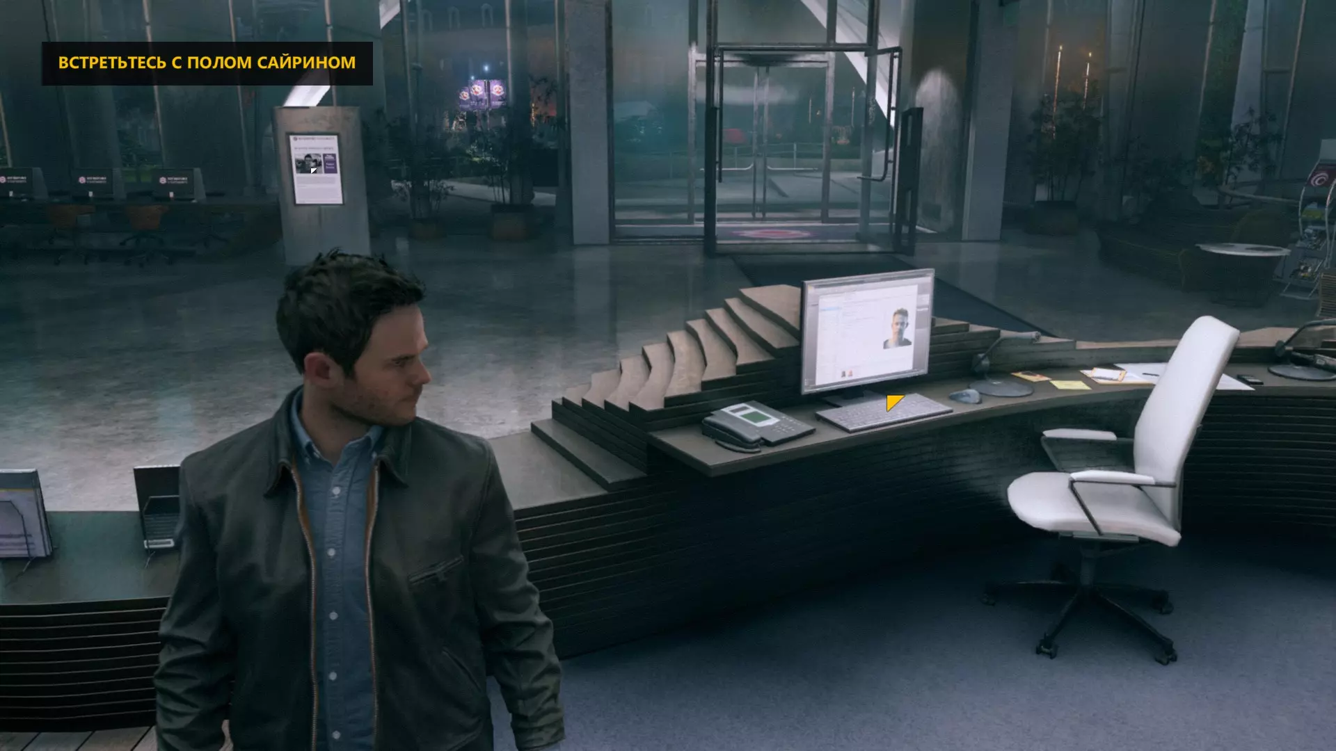 16. 回到现实世界后。 17. 进入保罗办公室时,秘书的桌子上。