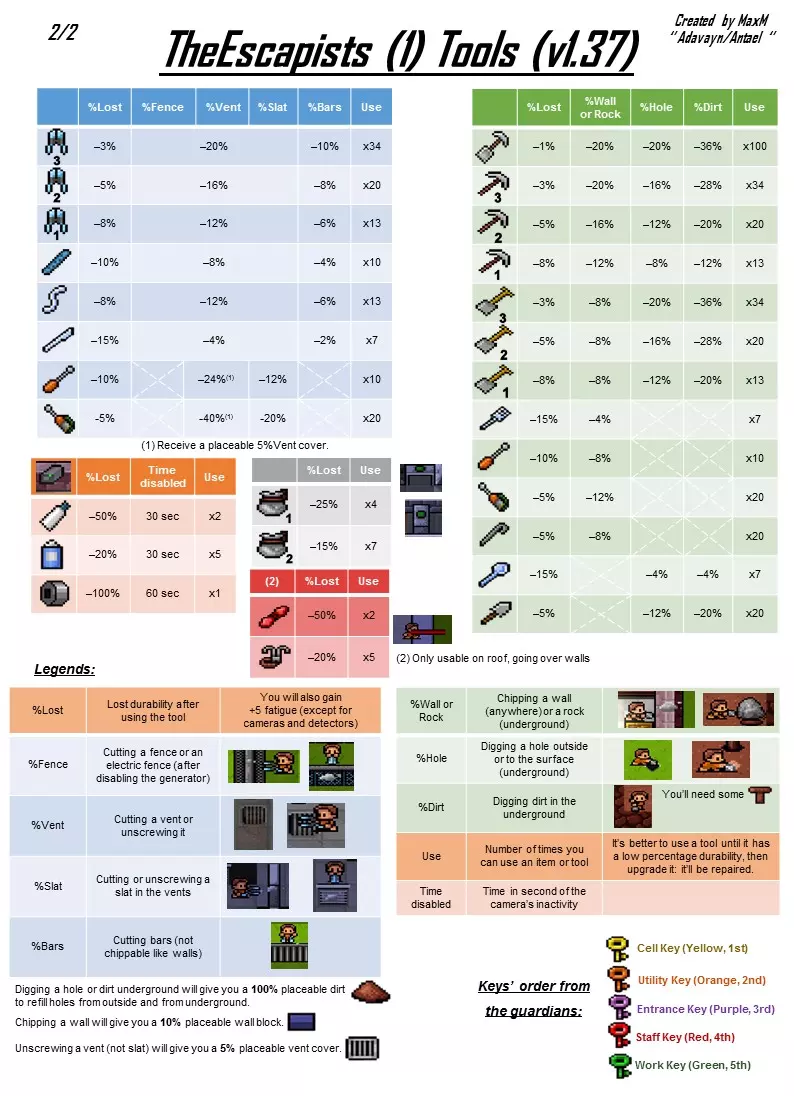 第二页包含所有工具的统计数据(除非我漏掉了一些?应该没有),这些数据按工具的用途(挖掘、凿击、切割等)进行分类。