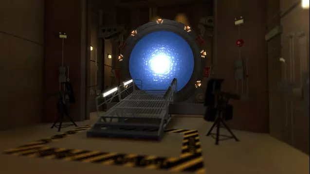 ttt_stargate办公室与传送门。这让我想起了电影《超能陆战队》里的同款传送门(不过这里的尺寸缩小了)。这里的地板上也有标志性线条,所以别迷路啦。该地图创建于2013年9月11日,至今已有8年历史。