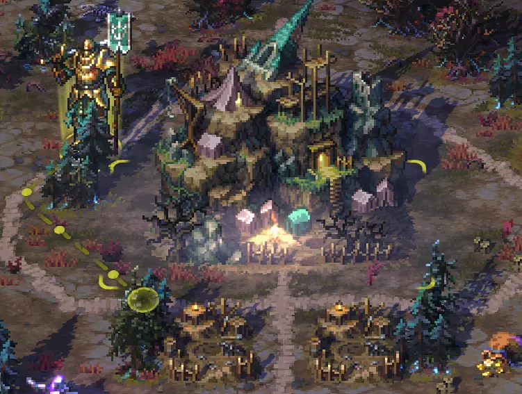 移动惩罚表 名称 直线 对角线 小径 0.75 1.05 石路 0.5 0.7 城市石板 0.5 0.7 lava 1.25 1.75 "最后行动权" 根据游戏规则,系统提供"最后行动权",这意味着什么? 游戏允许你执行额外一次行动,直到你的法师剩余0.5(OPM)为止。此行为可以是任何通常可用的行动,例如移动、占领目标、获取 artifact 等过程,即使该行动的花费超过 0.5(OPM)。与他们互动并随后拒绝其提议后,导师仍会扣除0.5【行动点数】,因此在开始与此类对象互动前请慎重考虑,因为重复互动的代价很高。无论选择哪个选项,都需要消耗标准的0.5【行动点数】。符合上述规则的此类目标包括:牢房中的宁静修道院、贡品树、大营、牢房、旧营地、古老瓮坛、石化树、沉没雕像、军官尸体、木雕偶像、强盗藏身处以及墓地/墓园。 需要领主抵达才能触发战斗的目标较为特殊,有其专属规则:目前这类目标共有两个:藏身处强盗和墓地/村庄。不进入战斗系统与它们互动消耗0.5点移动力,参与战斗则额外消耗0.5点。请注意,若你在剩余移动力不足0.5点时进入战斗,将无法自动获得战利品,需要再次进行互动。“信任,但要验证” 在选择行进路线时,游戏会规划从领主位置到所选目的地的最短路径。不过,游戏不会考虑到达所选目的地后你计划前往的方向,这时就需要更高效地移动了。因此,您需要自行选择更接近您计划前进的方向,并且超出您的直接目的地范围。 请看以下两个情况示例,对比游戏中建议的“寻路”功能与手动规划您的法师路线之间的区别。 自动路径这意味着,如果你将最后一部分移动力用于【高消耗行动】,就能获得免费的【行动点数】,否则你将不得不在下一回合消耗自己储备的【行动点数】,这样你最多能额外获得0.9点【行动点数】,否则你就无法获得这些点数。 相反,如果最终你剩余的【行动点数】不足0.5点,这些点数将会丢失,简单来说就是——浪费了!当您的法师即将耗尽【每回合魔法值】(ОПМ)时,请尽量确保您的每个行动至少能为您带来0.5【每回合魔法值】(ОПМ)。因此,在移动前收集大量资源或占领矿场通常是个好主意,因为与这些物体互动通常只消耗0.5点移动力。如果反过来操作,先进行消耗更高的移动行动,可能会导致你没有足够的【行动点数】来开始互动。与周围世界的互动 通常,站在地图物体附近的法师进行互动的费用可通过其拥有的【魔法值】(ОПМ)来计算。这些互动的费用可能为0、0.5或1.0。在道路上时,互动消耗不会改变,其类型条件也不会变化,并且法师与地图物体的互动方式与其在空间中的位置无关,无论是对角线方向还是直线方向。绝大多数与地图的互动消耗为0.5【行动点】。其中包括以下内容:获取提供一次性资源的物体(例如:果园、沼泽、谷仓);获取可提升法师的临时/永久物体(例如:实体祭坛、经验塔);占领矿场;占领城市;标记可占领的建筑(例如:尖塔、瞭望塔);开始围城;收集 artifacts;收集资源堆;掠夺;使用传送门无(奥术能量)的含义:部分互动消耗0奥术能量,其中一些互动可在你的法师站在地图上的互动对象附近时激活,而另一些互动则至少需要0.5奥术能量。访问友方城市和建筑 访问黑市 驻军部署 法师间战斗的开始 使用自身【荣耀火炬】进行传送 法师间的交易 说明1(OPM)部分物体和建筑允许我们选择可用奖励,或者不选择任何一个选项,直接关闭弹窗即可。