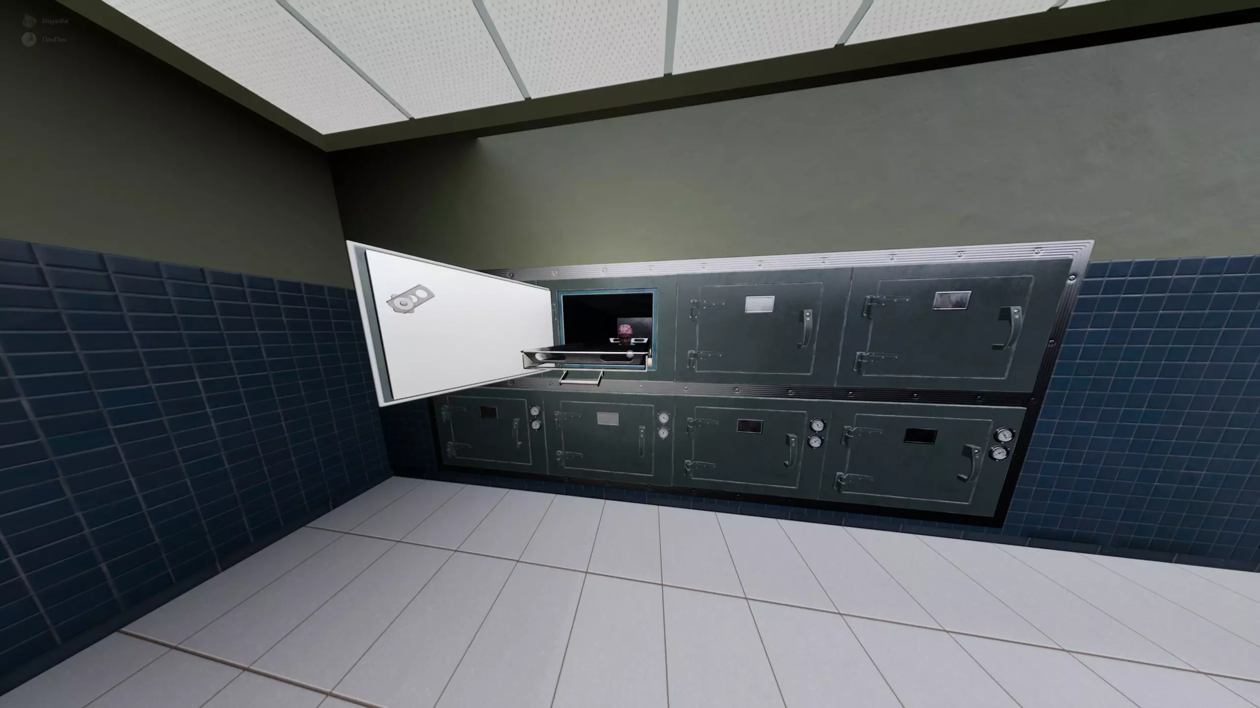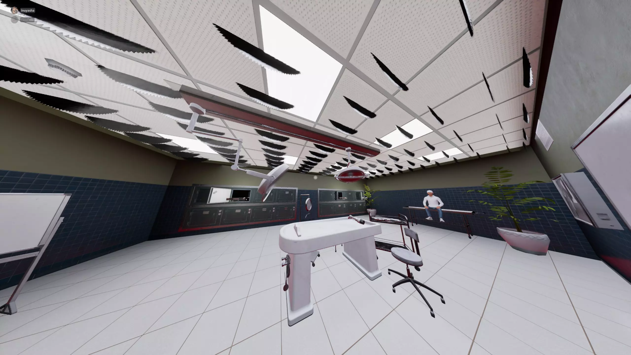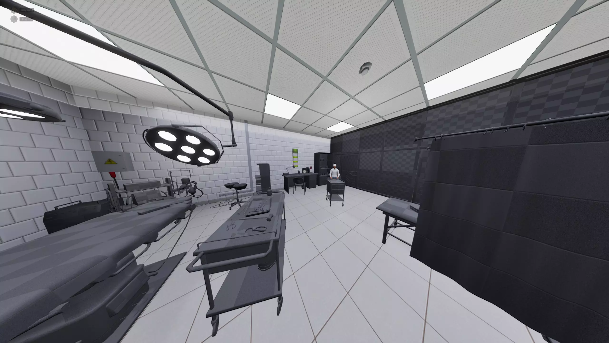 107层 房间里出现了躺在病床上、盖着布单的尸体。