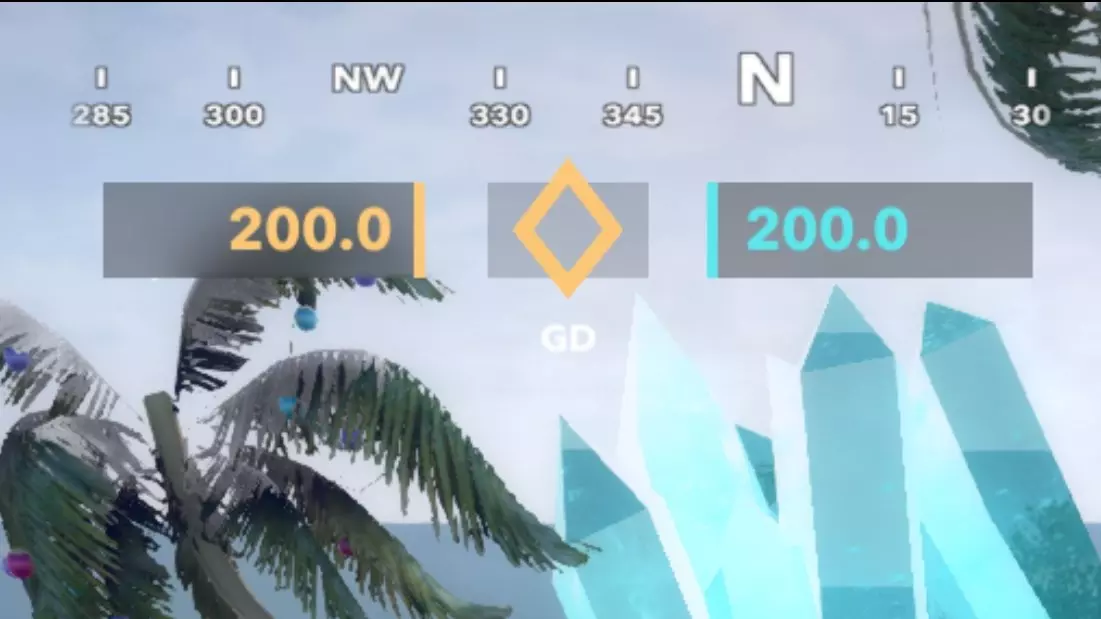 屏幕顶部显示游戏分数、游戏类型以及你所面向的方向。在【发电机防御】(GD)中,分数代表各队伍的基地生命值;在【团队死亡竞赛】(TDM)中,数字表示各队伍剩余的生命数量。