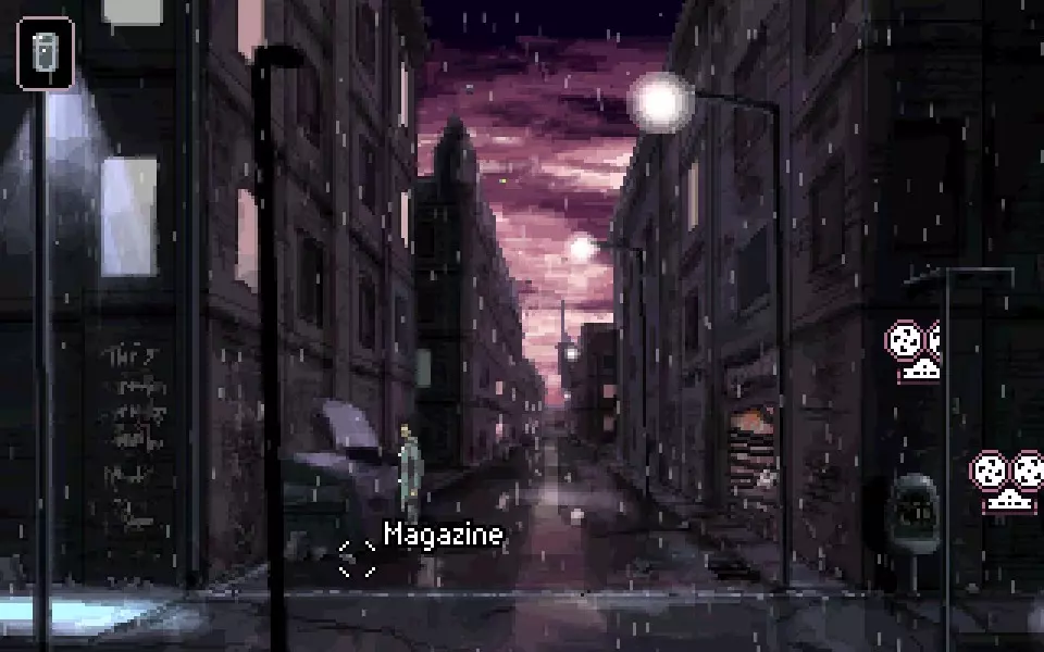 悔恨的评论 从菜单启动带评论的模组。游戏结束时会解锁成就。为了挽救个人存档,最好在二周目时进行。 开场 就是个片头动画。 典型的匹兹堡 我们的调查从这座城市开始,这里的警察毫不留情,而作为线人的朋友也没有赴约。我们去找找看。 用脚踢路灯下的终端。尝试用手操作。 向右走。和商人交谈,尽量打听所有事情。对话方式无关紧要。 拿到身份证。 回到终端机并使用卡片。可以在搜索框手动输入名字,也可以从通讯器里拖过来。从搜索结果中得知同伴的地址。 一直向右走(穿过所有屏幕)。路上可以把卡片交出去,或者商人会自己拿走。进入旅馆取暖。和门房交谈。有两种成功进行对话的方式。要么装作是厉害的帮派成员,要么是工作人员,并回答马蒂乌斯的职业。我们可以在终端上看到他的职位。 如果不行,就手动翻阅架子上的卡片。用通讯器给凯恩打电话,并告知获取到的电话号码。 为了立即弄清楚