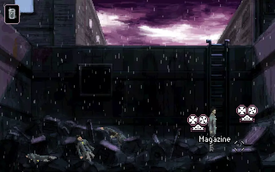 拾荒者 [1/3] 用平克(Pink)翻转最左边的尸体,取下上面的身份卡。在物品栏中查看后得知原主人的名字,然后前往更干净的地方。向右走,再向右走,然后……继续向右走。沿途:垃圾桶下面还有子弹。