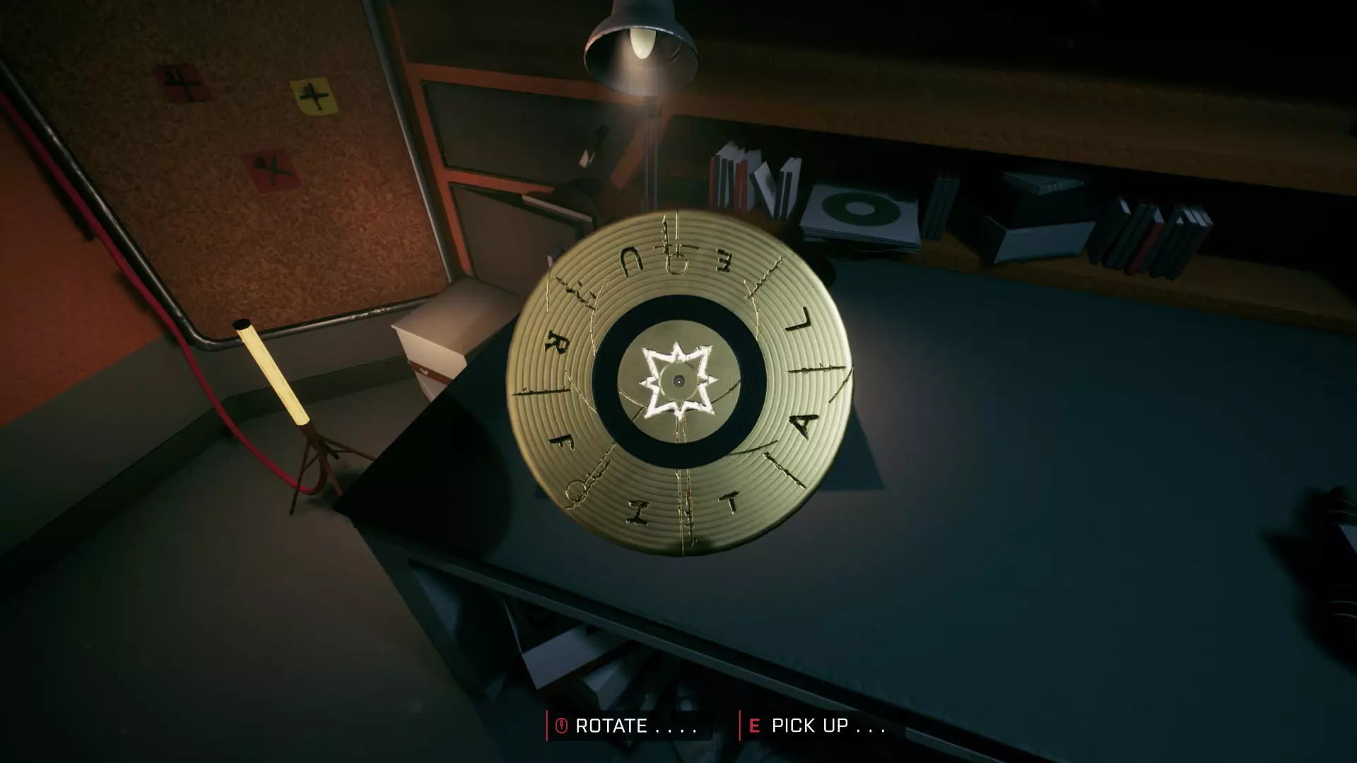 左边的一个上层架子上放着一只戴着手套的手。拿起它后,我们发现了下一条线索。