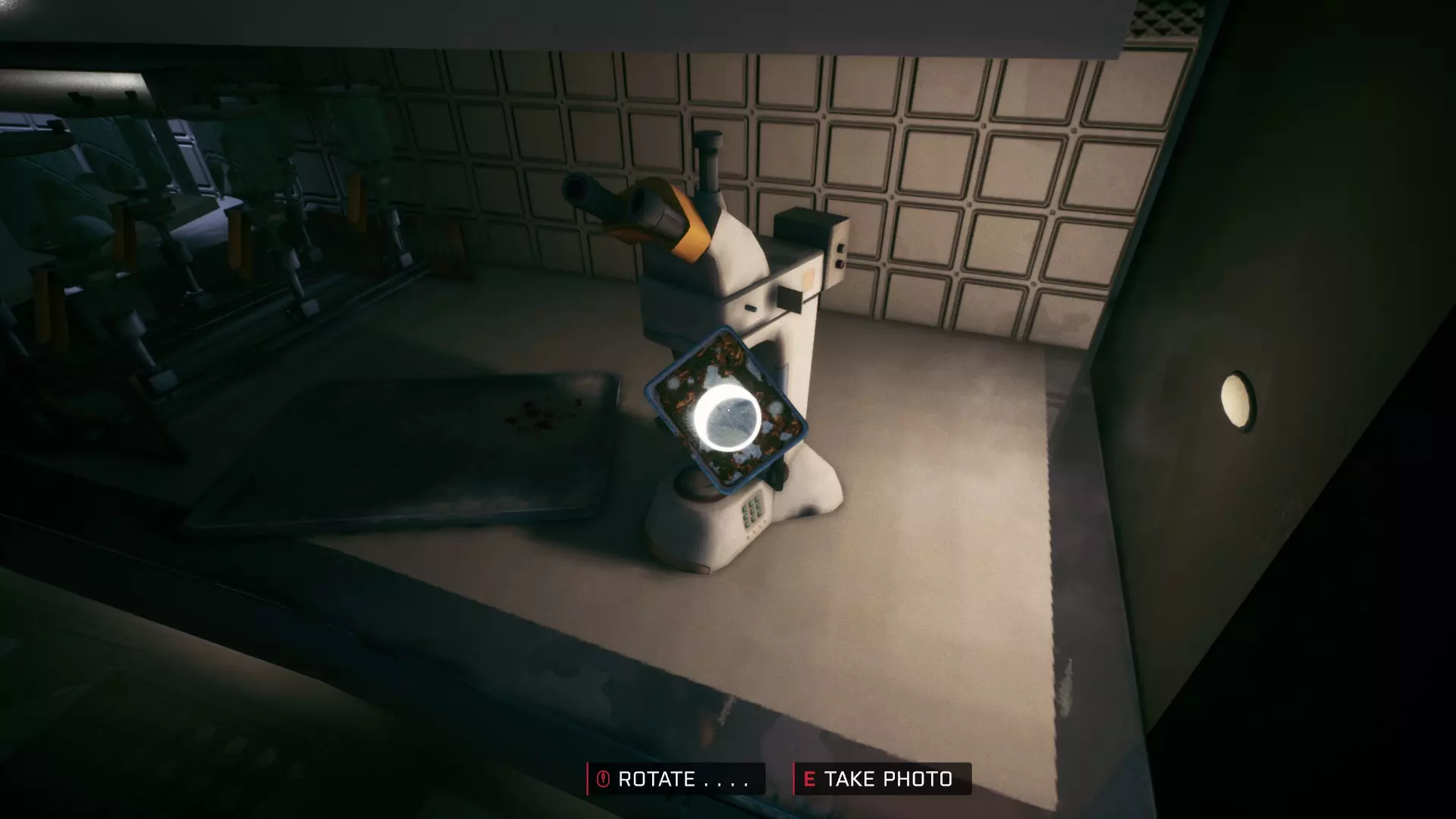 实验室入口右侧放着一台显微镜。建议你看看显微镜。