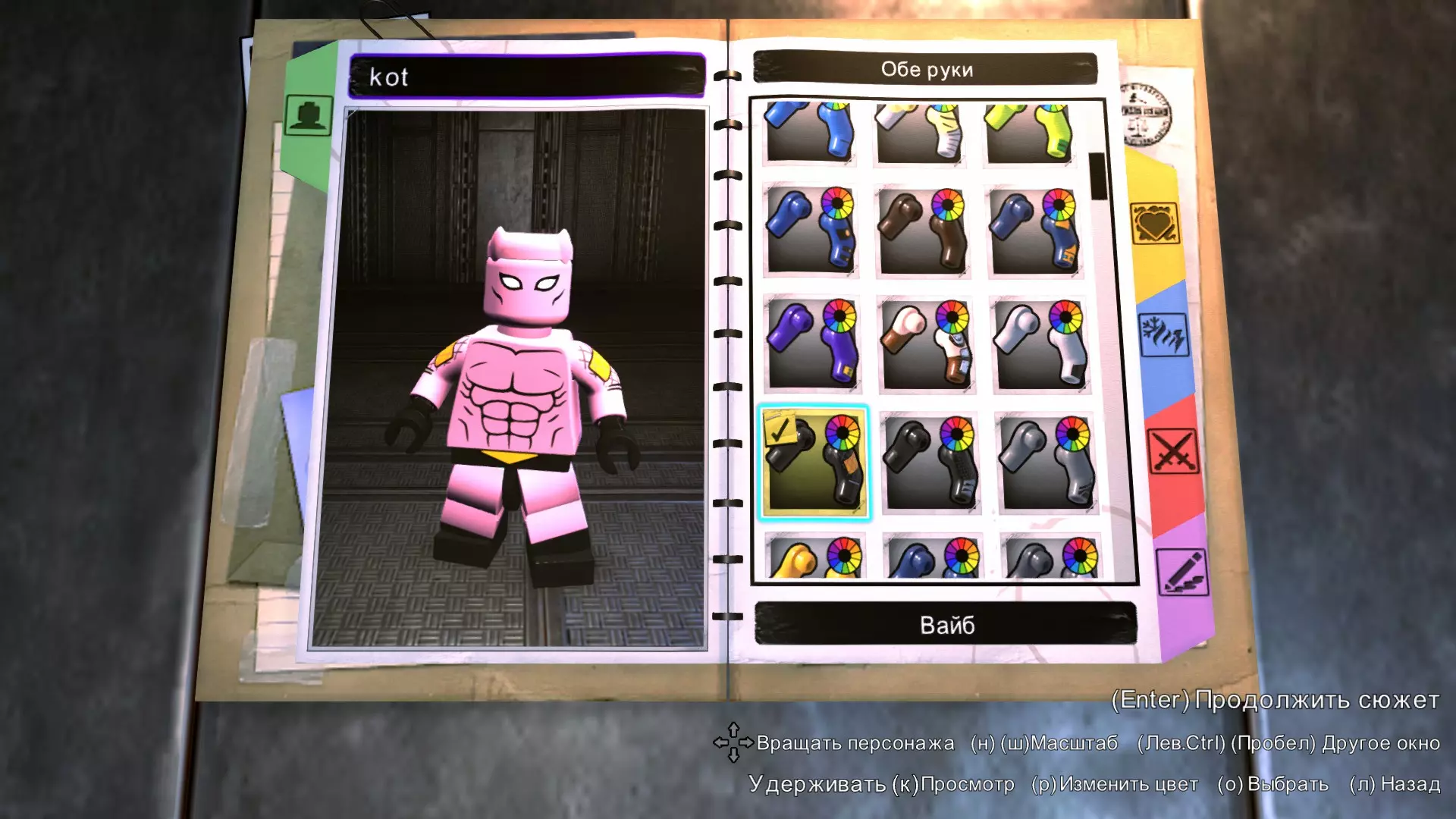 手部和刷子 手部似乎来自付费DLC,但该死的是它们太适合他了。 我们选用维巴的手部,并将其涂成粉色。 刷子在手套里,所以涂成黑色。
