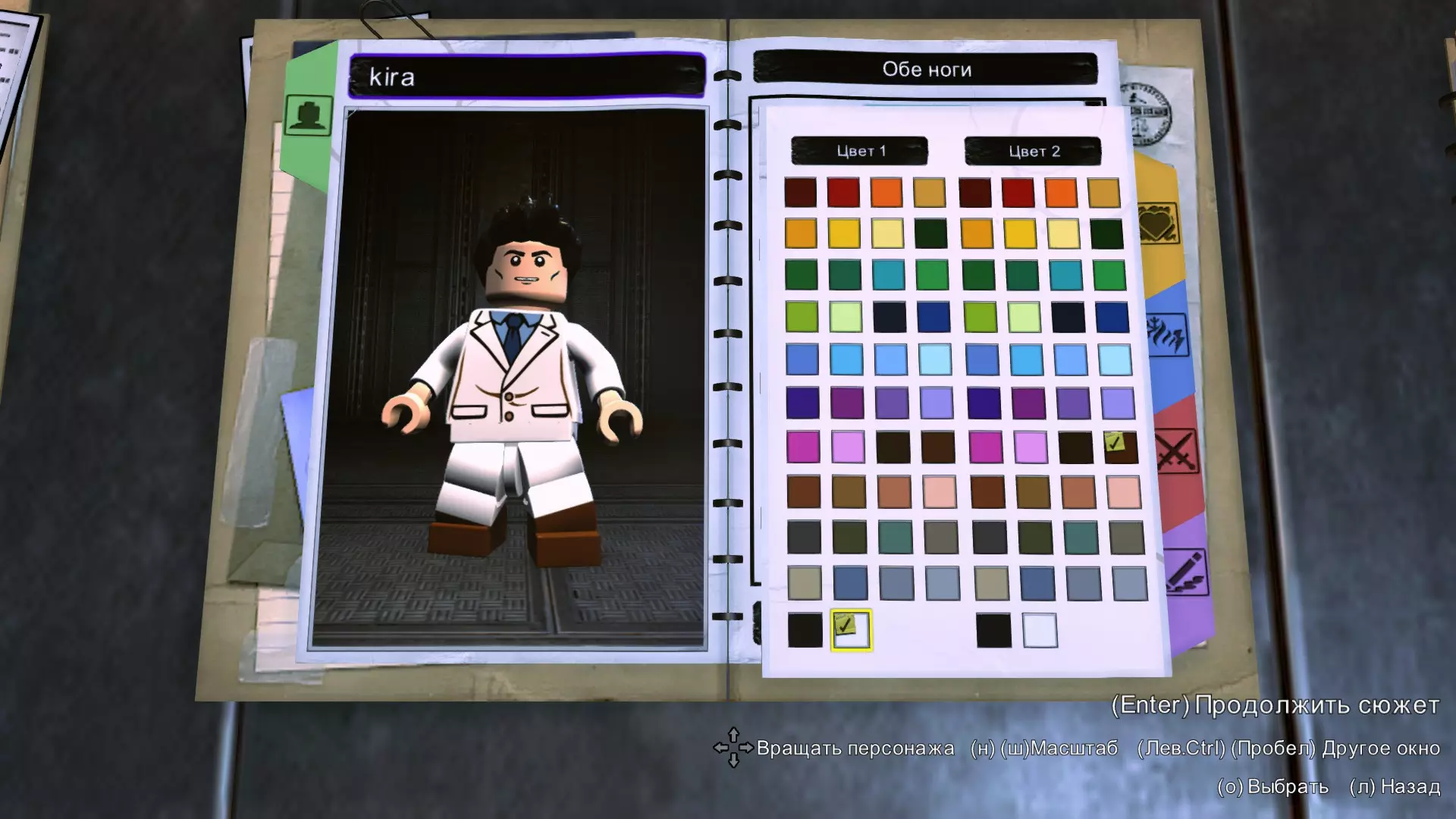 大腿和腿部 大腿为普通白色。 腿部的靴子将颜色1涂成白色,颜色2涂成棕色。