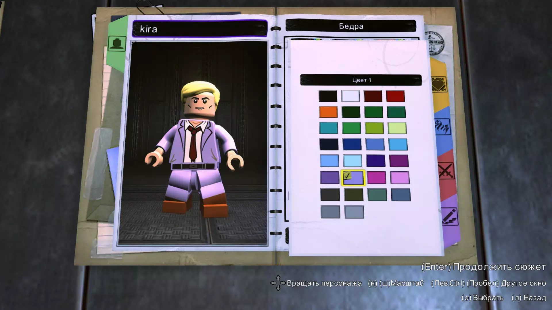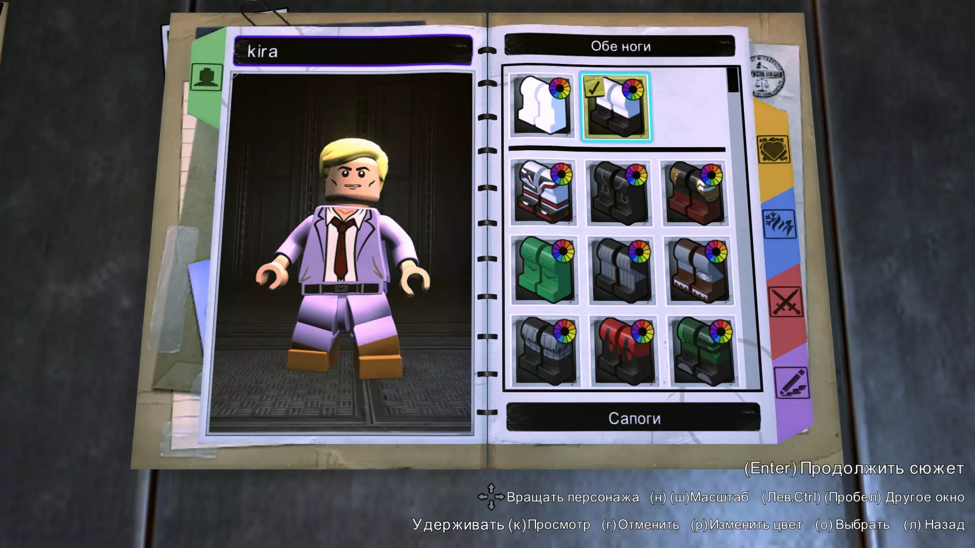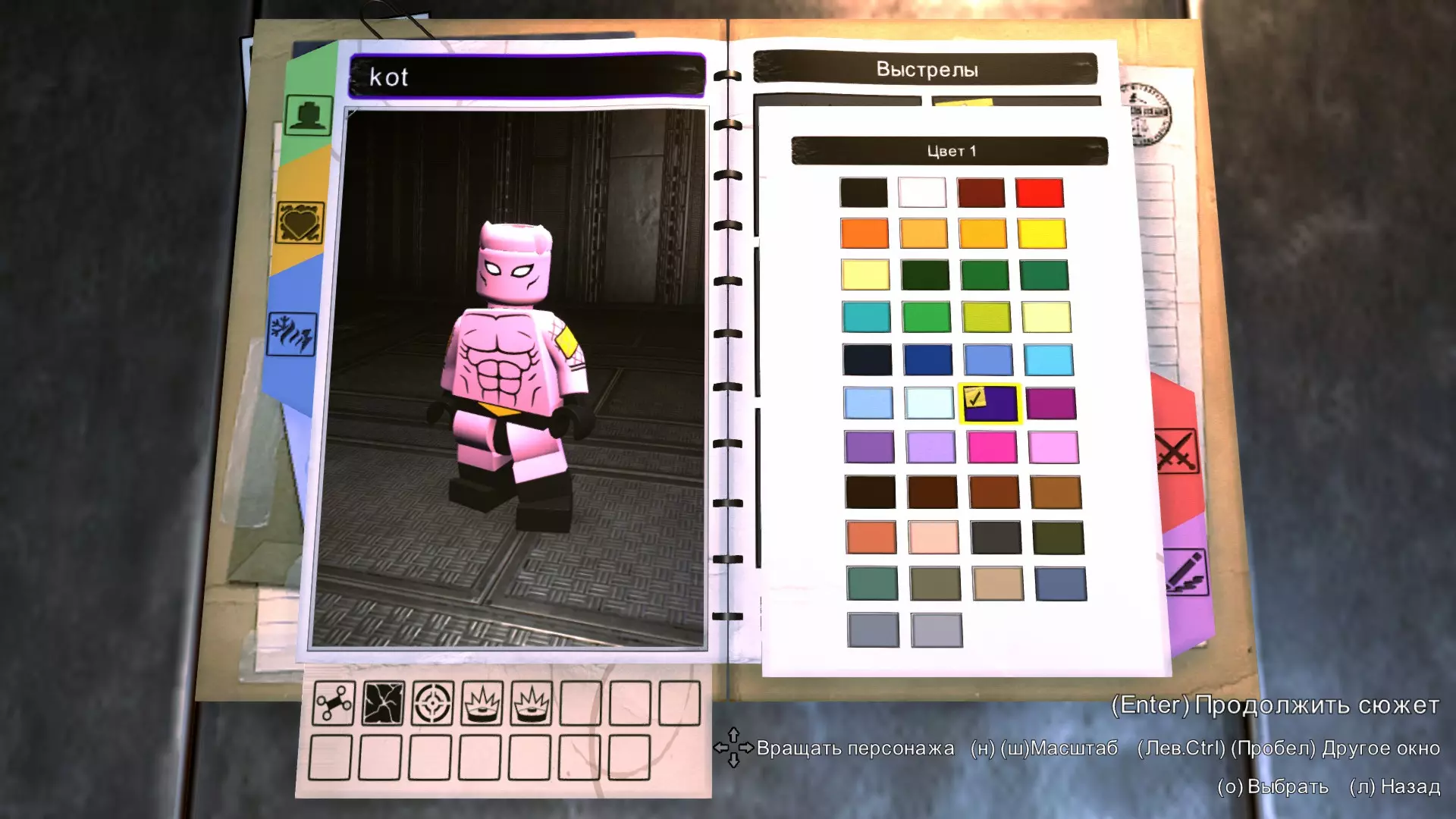 大腿和腿部 回旋镖队长的大腿涂成淡紫色。 腿部穿着靴子,其中颜色1为淡紫色,颜色2为棕色。
