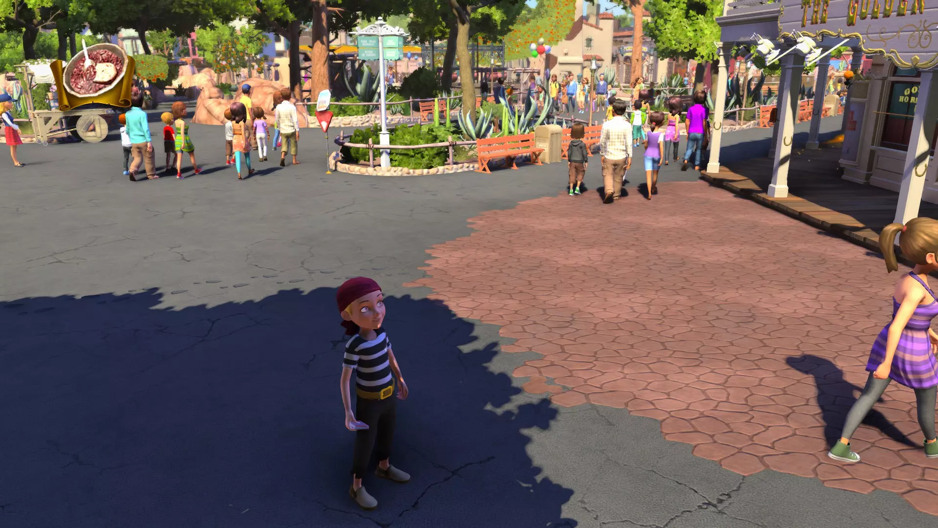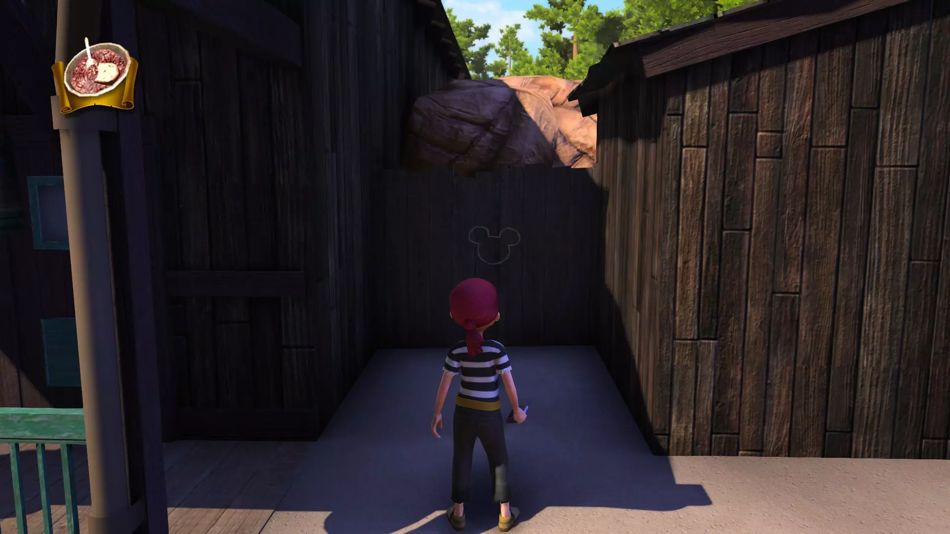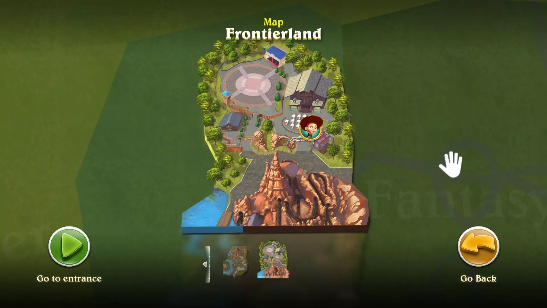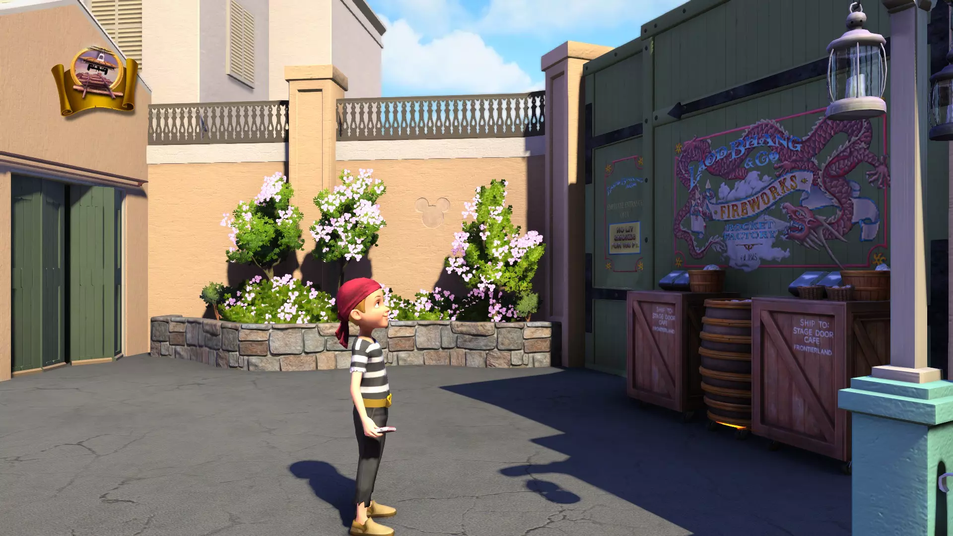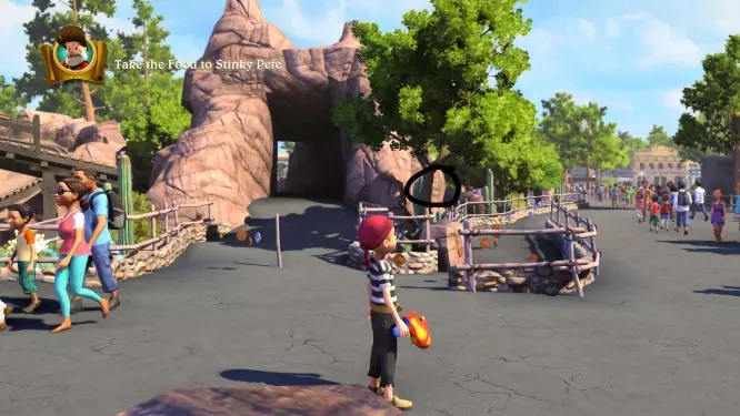 边疆世界 1. 位置:边疆世界左侧区域 在牛仔胡迪警长身后右侧,兰乔德尔科瓦洛餐厅旁小巷的尽头。