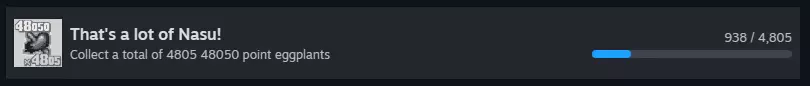 Avenging Spirit:在任意模式下使用续关 保存游戏 一个拥有4805个茄子且所有故事模式片段已解锁的存档。要触发4805成就,你可能需要进行一次游戏并获得一个48050个茄子。 如果可行,请告知我! 保存文件位置:%appdata%/Game Tengoku CruisinMix