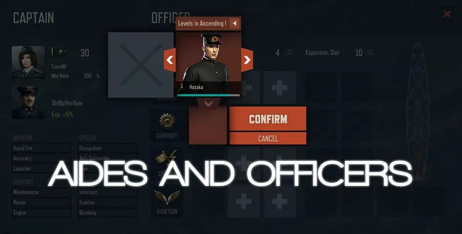 在《大海战2:海洋征服者》中,你可以配备副官和军官来协助你作战。每位副官或军官都拥有独特的能力或增益效果。你对舰船的配置方式会对战场产生重要影响。 通常情况下,副官会提升战斗中获得的收益或奖励,而军官则有助于提升你在战斗中的表现或状态。 配备副官请按照以下步骤操作: 1) 只需点击造船厂屏幕右上角的【招募副官】按钮。 2) 你也可以通过【战斗站】面板购买副官。 3) 右键点击副官头像,调出副官更换界面。 4) 使用方向键选择你想要设置的副官。 5) 点击【确认】完成所选副官的配备。使用军官的步骤如下: 1. 从商店购买军官 2. 加载【战斗岗位】面板 3. 加载军官更换界面后,点击空的军官槽位或你想要更换的槽位 4. 选择你想要装备的军官 5. 点击【确认】完成放置 创建舰队