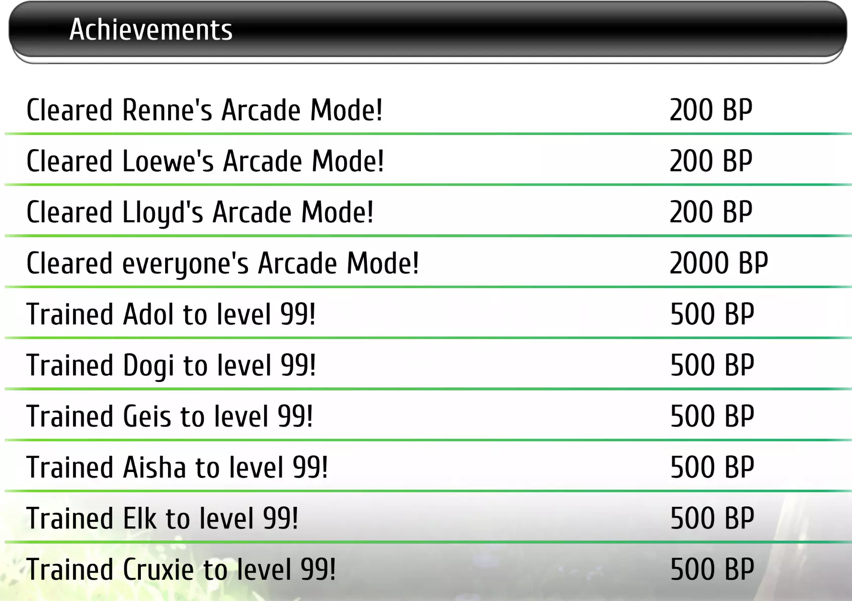 这更像是“每个成就的具体达成条件是什么”,而非实际的攻略。所以,诸如如何更快升级这类内容不会在这里讨论。 通过谷歌搜索,我发现目前既没有英文攻略,也没有日文攻略,只有一篇关于BP成就的韩文攻略。因此,我写下这些内容来澄清一些问题。BP