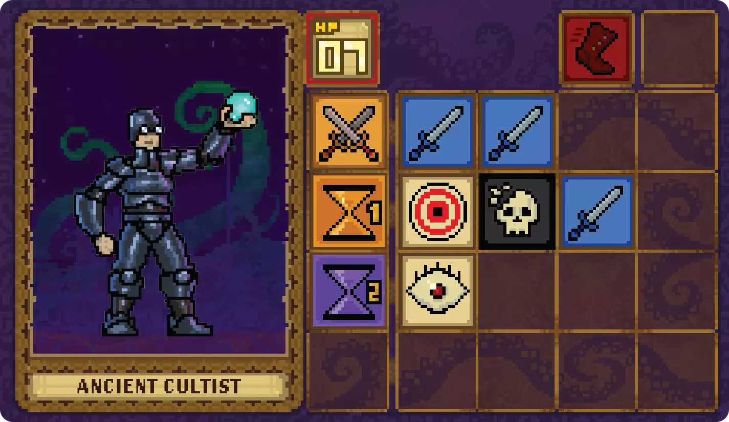 先拿到那个道具可能是个好主意,因为它每回合能为英雄恢复1点生命值! 在符文选择方面,我通常会按照坦克→治疗者→输出的顺序来优先考虑。 【晋升升级顺序】: 这方面的灵活性要大得多,实际上应该取决于你最常使用谁的技能。当英雄晋升时,他们会掷出更多骰子,从而获得更多能量。这能让你更频繁地使用技能! 一般来说,顺序是:治疗者→输出→坦克。 除此之外,我建议在 boss 战之前不要购买药水,但如果你遇到困难,也不要犹豫使用它们。 你成功到达了 boss 关卡。 如果你还没发现的话,在 boss 关卡死亡或重置是不可能的,所以要准备好只有一次机会来进行这场战斗。准备迎战 Boss。 参考升级指南,确保在此阶段进行合理升级。之后,只能建议你囤积药水并消耗所有勋章!(每位英雄只能购买一次药水)。 克苏鲁打法策略 经过多次游玩后,有多种专门击败克苏鲁的方法。 以下是策略排名: 4. 致残控制: 使用能在整场战斗中致残克苏鲁的角色,使其总伤害减半。 3. 护盾/伤害减免: 这种方法稍难操作,但你可能需要使用玛戈特或查尔斯来减少所有受到的攻击伤害。你也可以使用伊莱丝·格林格拉斯为团队施加护盾。