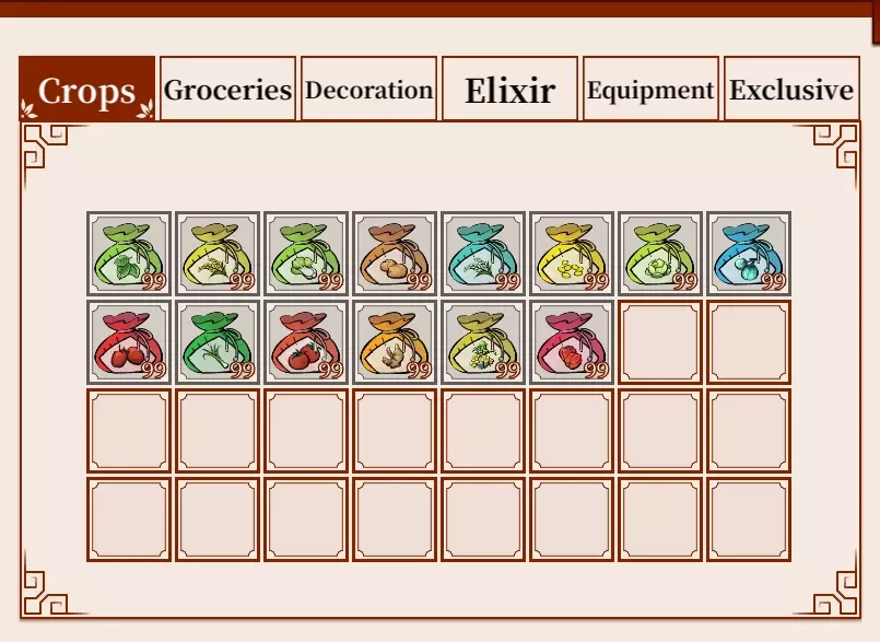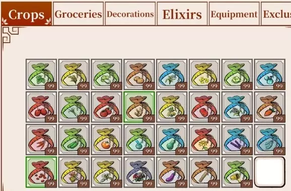 如何成为一名农夫 - 如何获得特殊物品! 作物介绍 每颗种子种植后,可收获1至6个作物,最多可收获三次(在合适的季节进行多次收获),具体取决于植物类型。 作物有四种不同的品质等级:普通(灰色边框)、良好(绿色边框)、优质(蓝色边框)和传奇(橙色边框)。