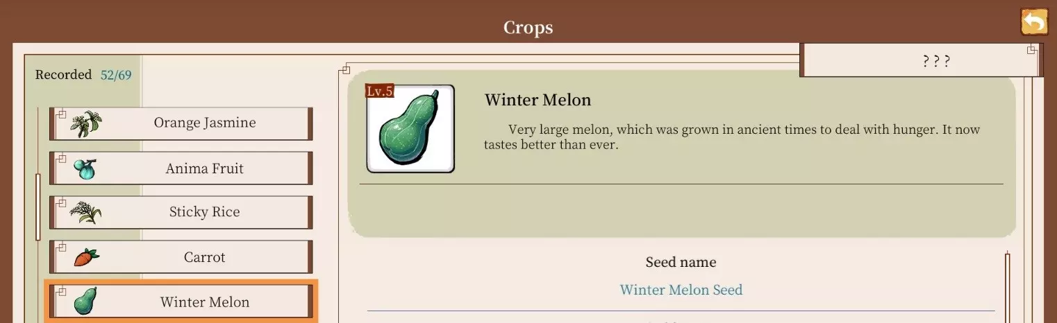 但前提是你至少已经收获过一次!如果没有,你将只能看到问号。