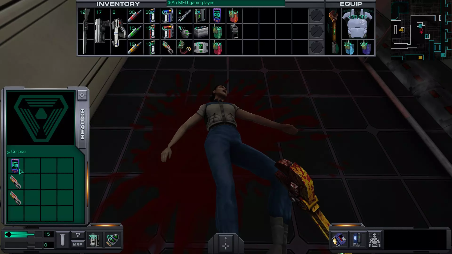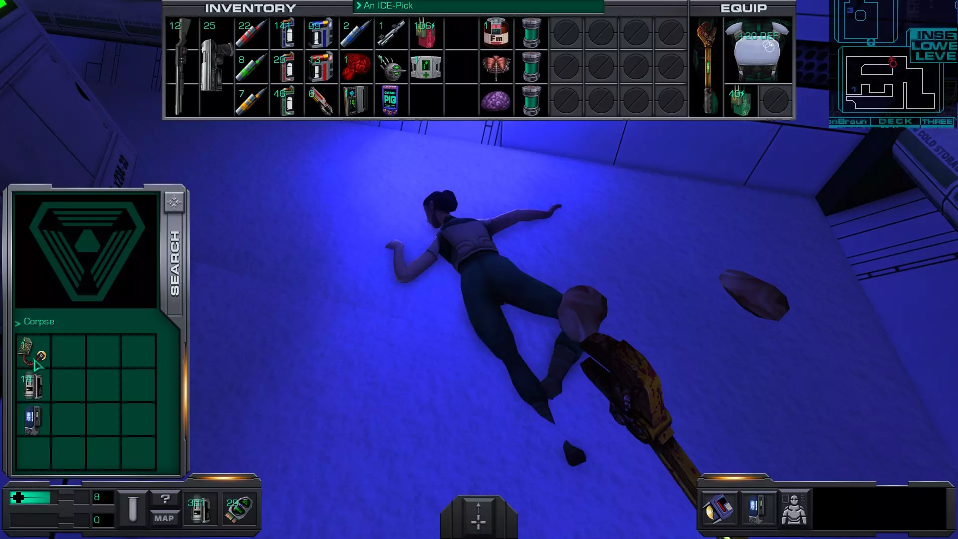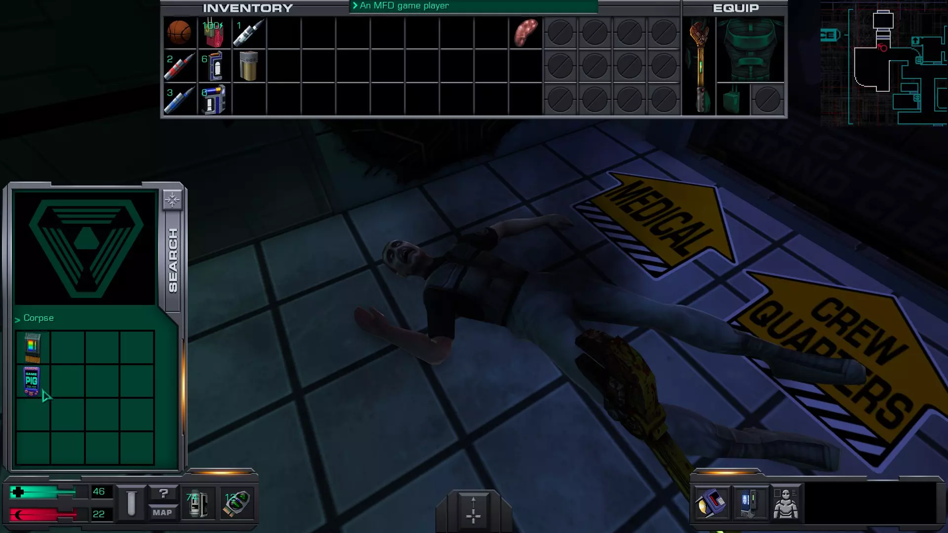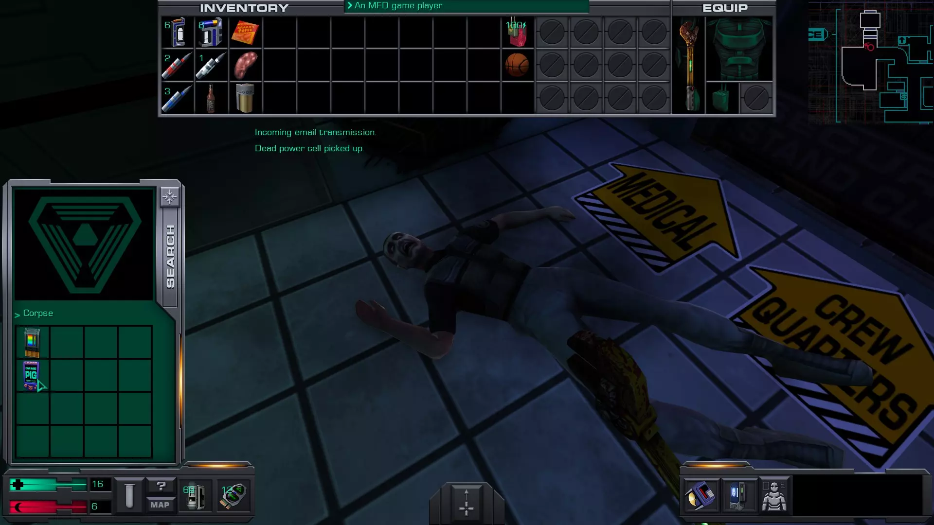 游戏猪掌上游戏机(x4)医疗/科学甲板 在低温舱北侧,一个尸体旁的失效能量电池旁边。