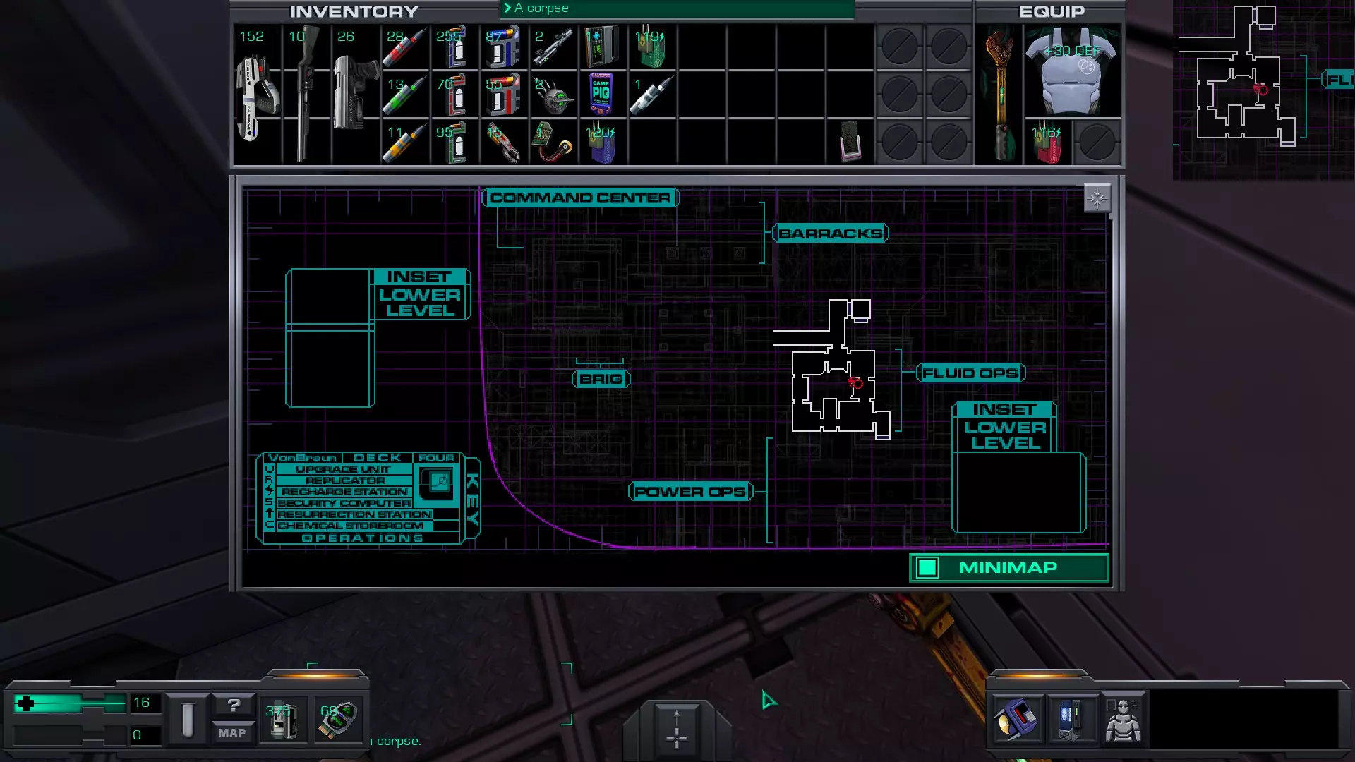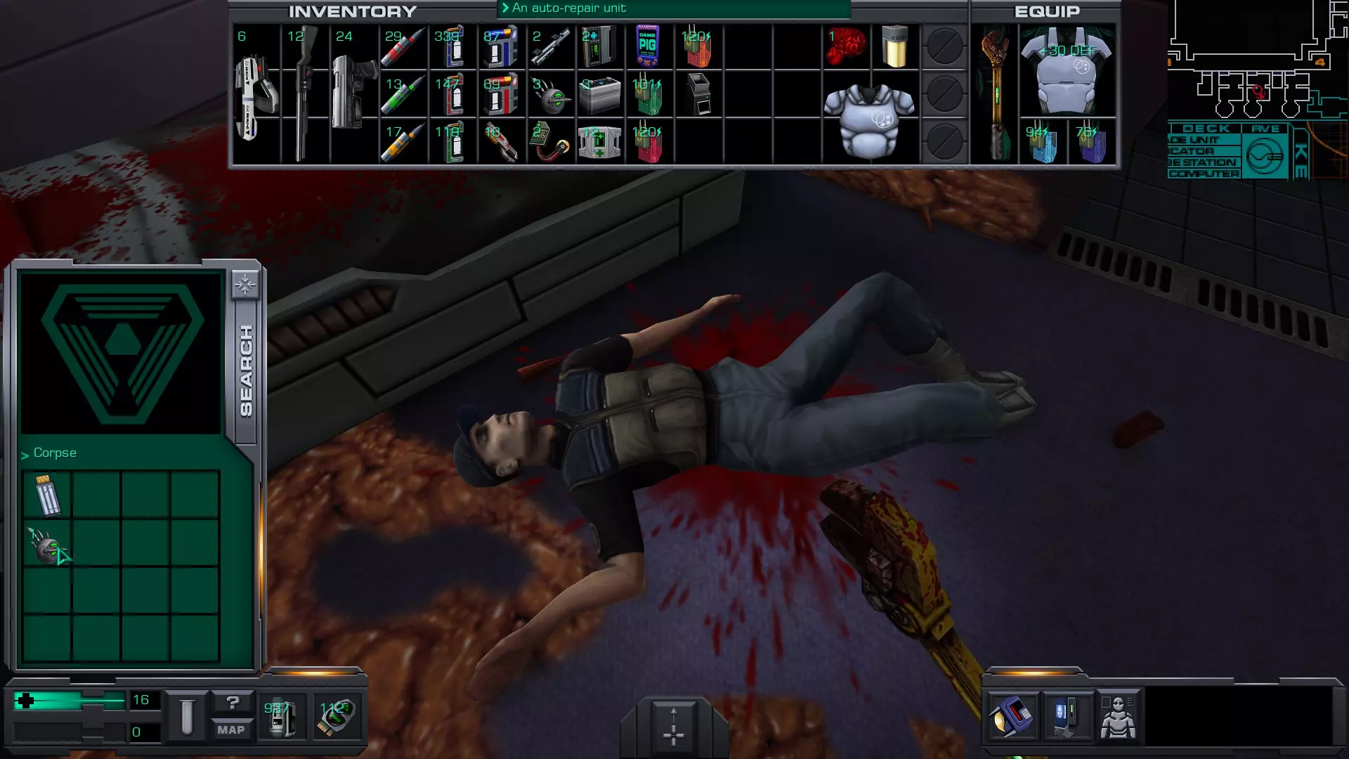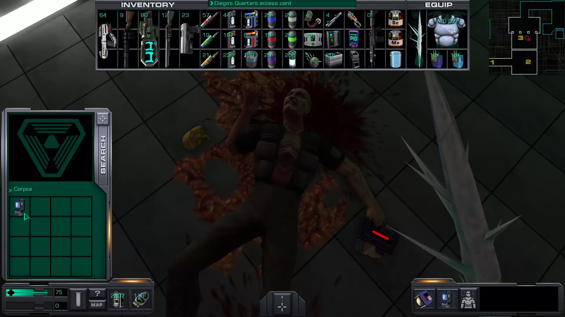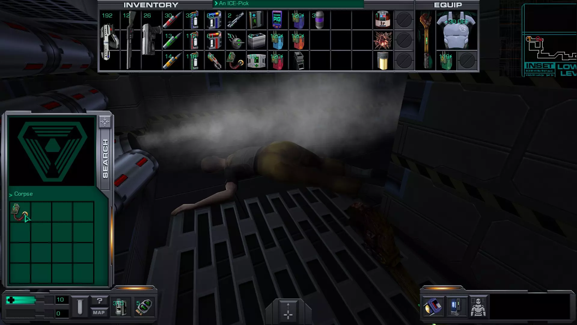 游戏猪掌上游戏机(x4)医疗/科学甲板 在低温舱北侧,一个尸体旁的失效能量电池旁边。