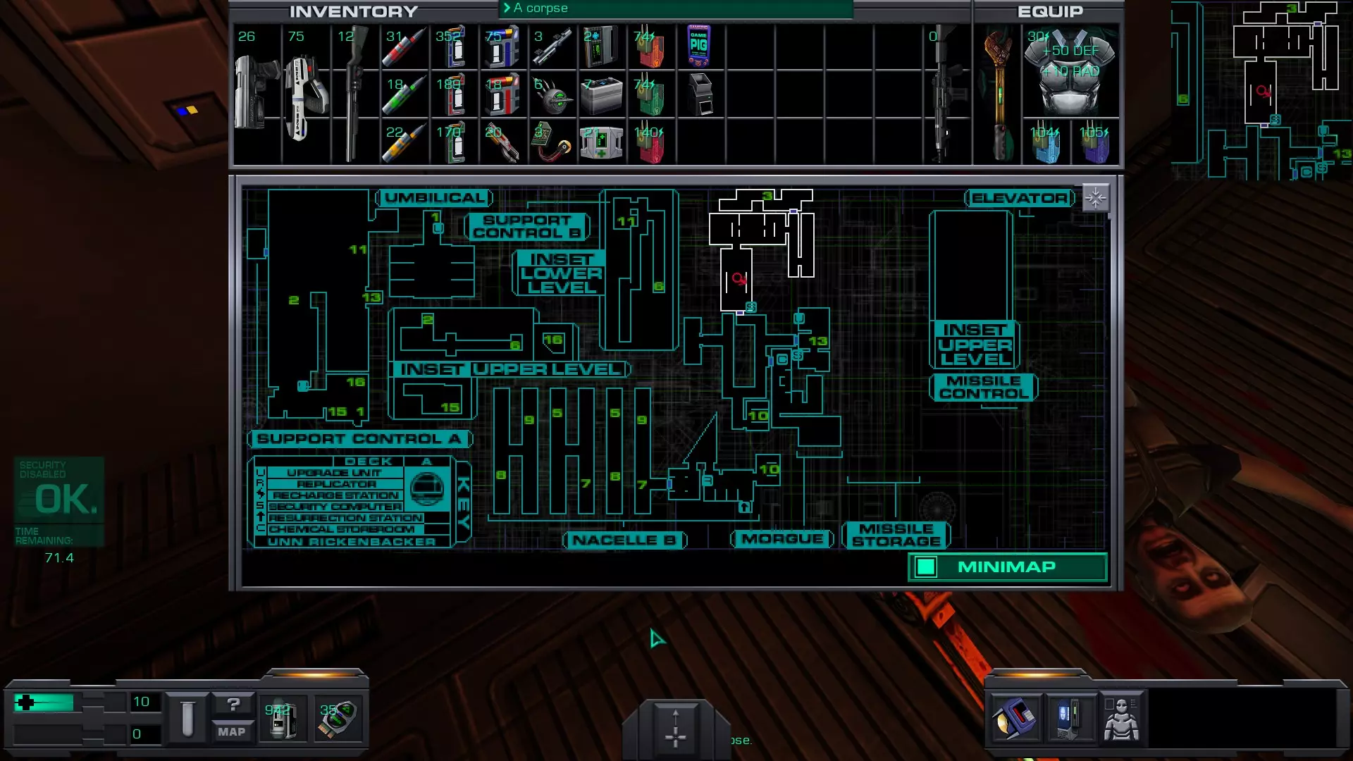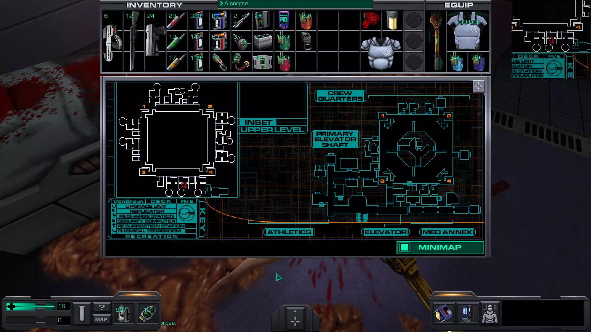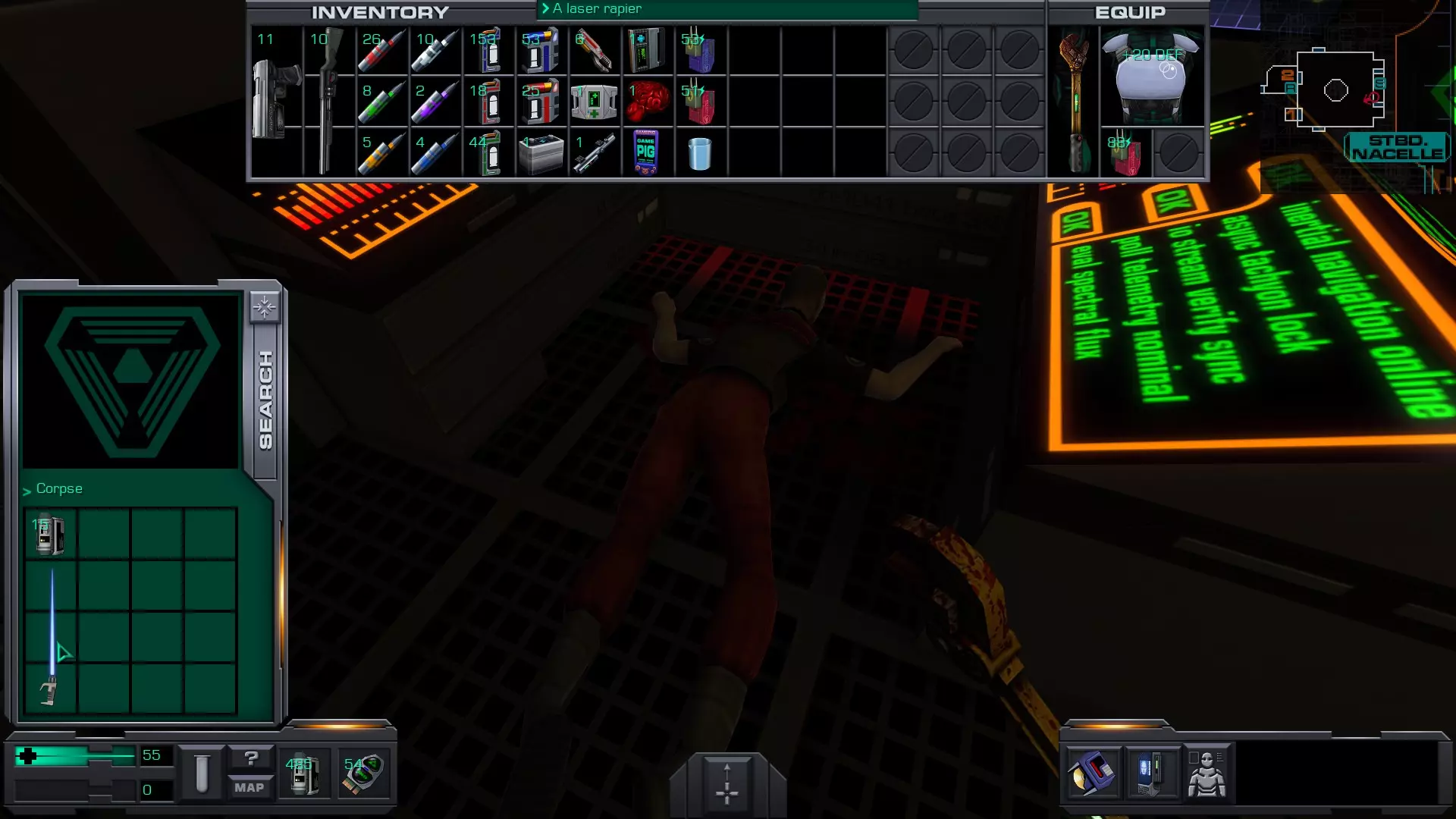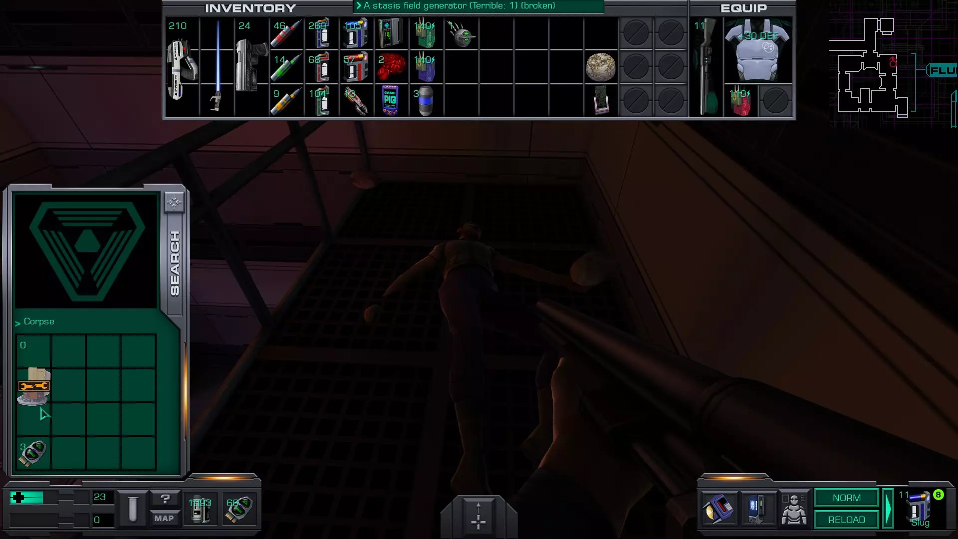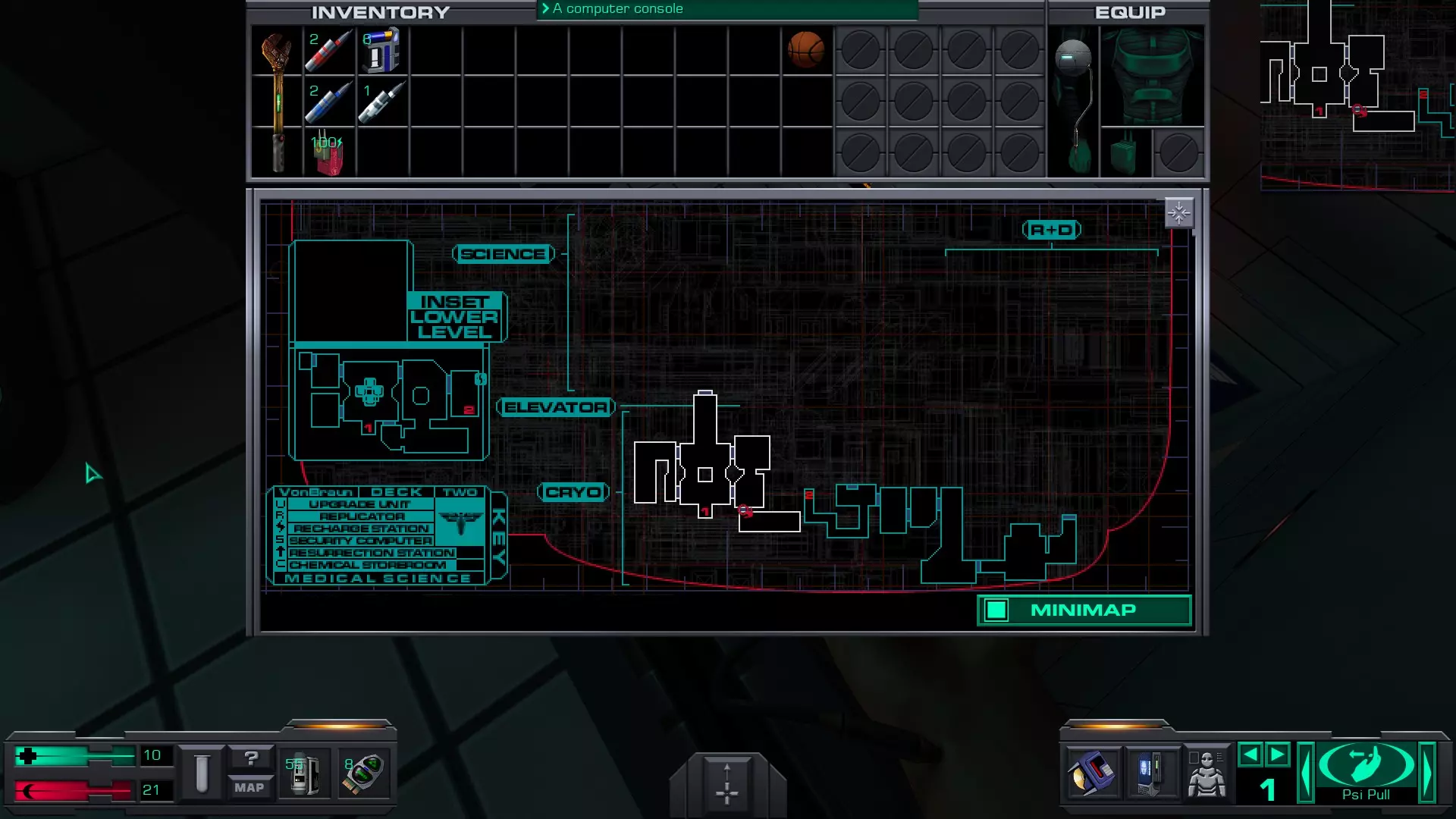 游戏猪掌上游戏机(x4)医疗/科学甲板 在低温舱北侧,一个尸体旁的失效能量电池旁边。