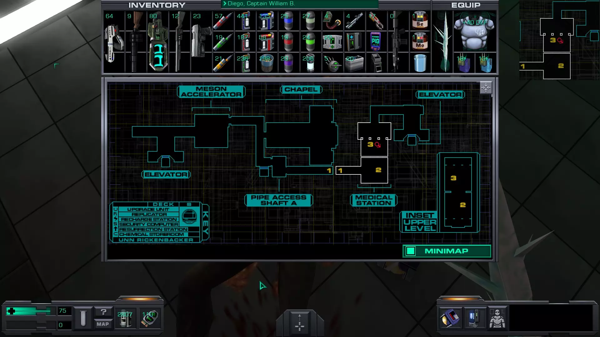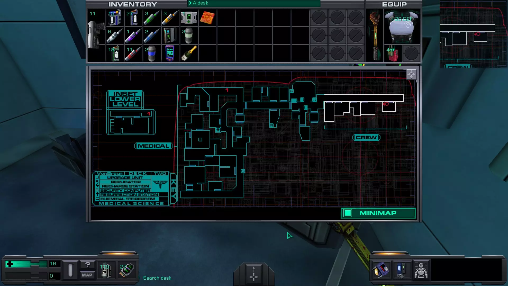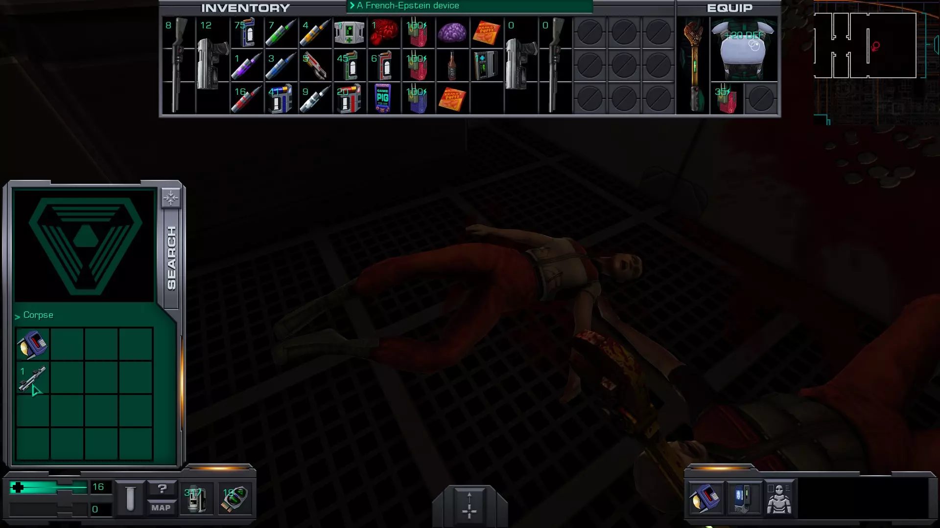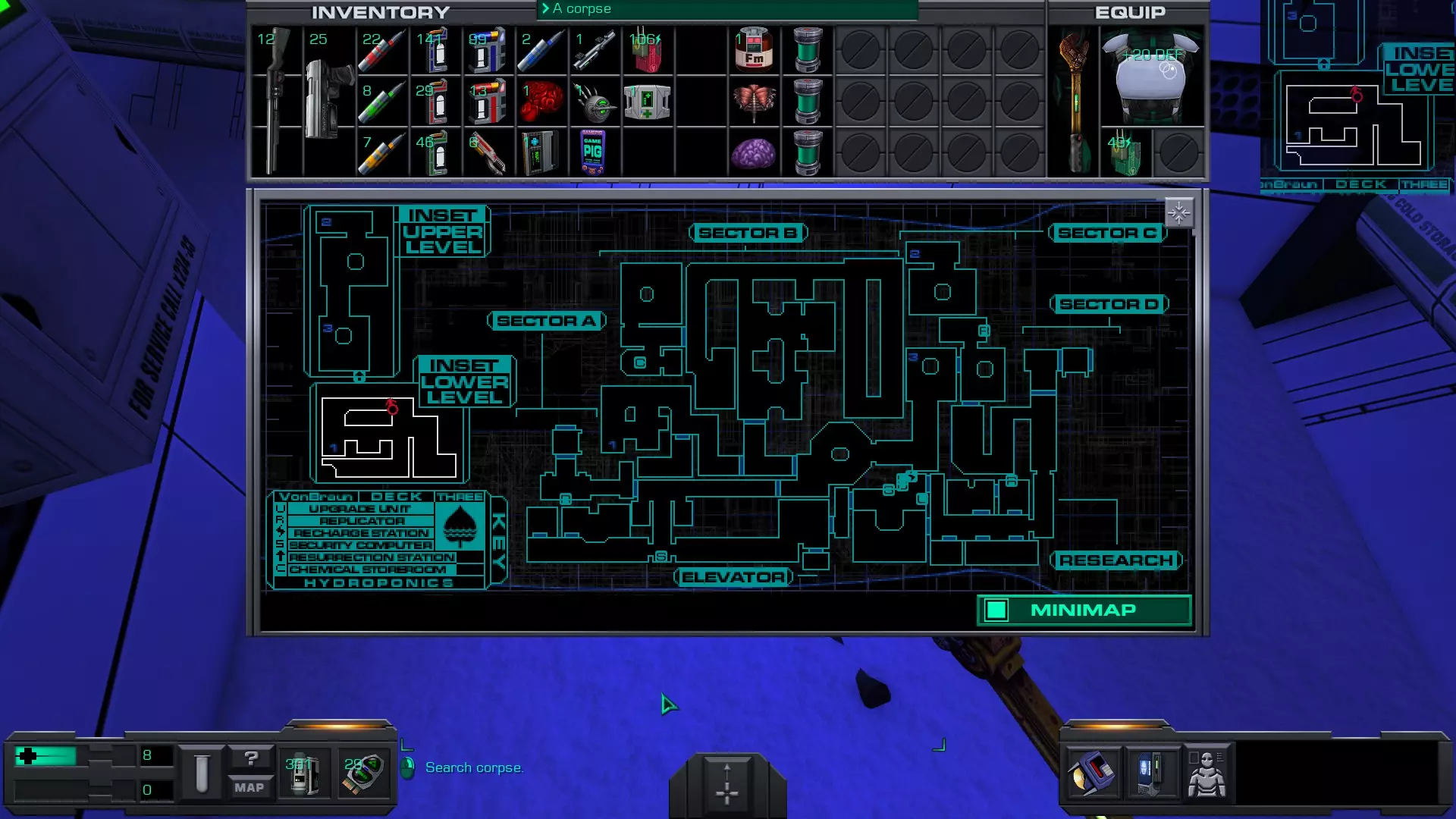 游戏猪掌上游戏机(x4)医疗/科学甲板 在低温舱北侧,一个尸体旁的失效能量电池旁边。
