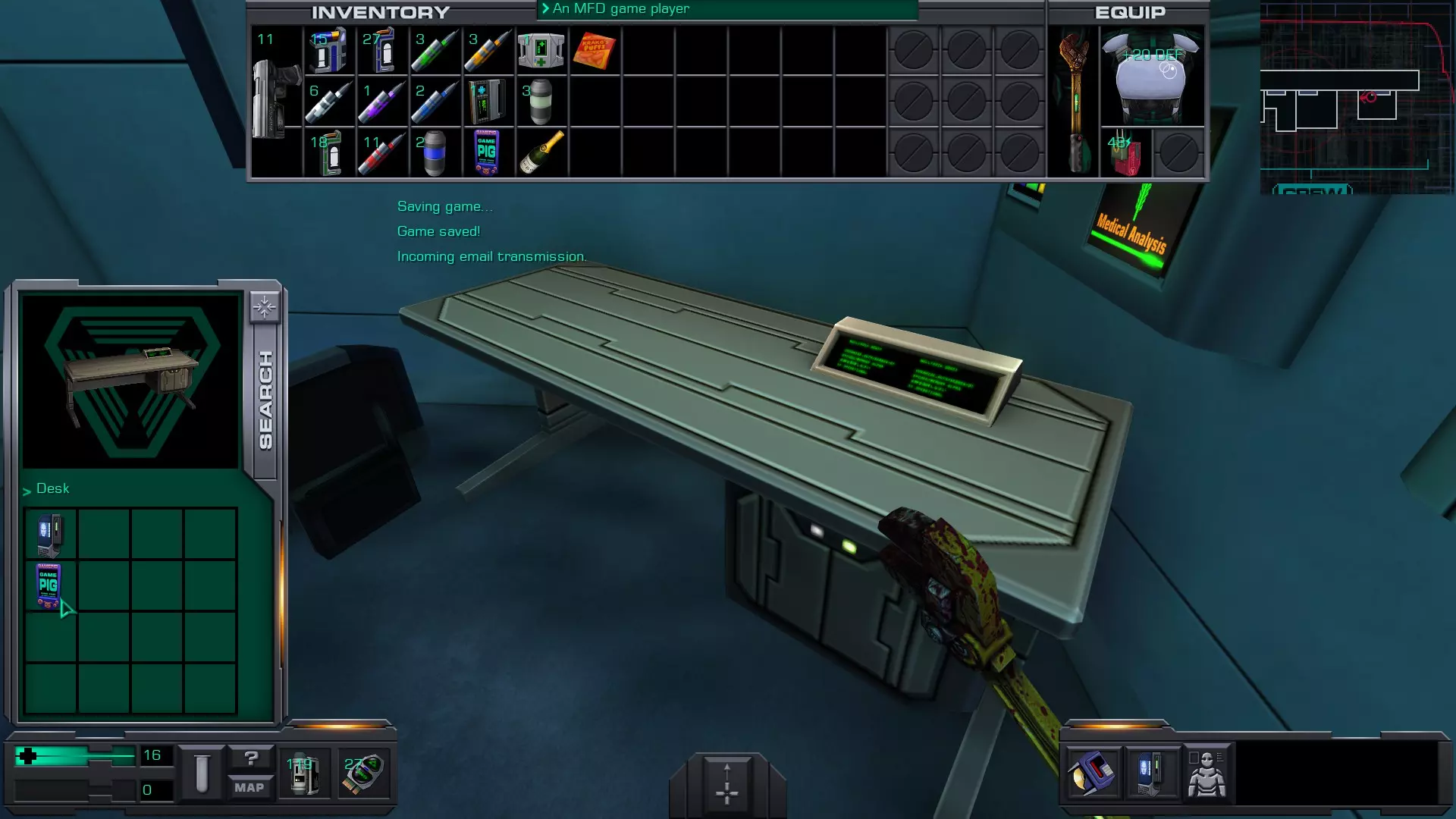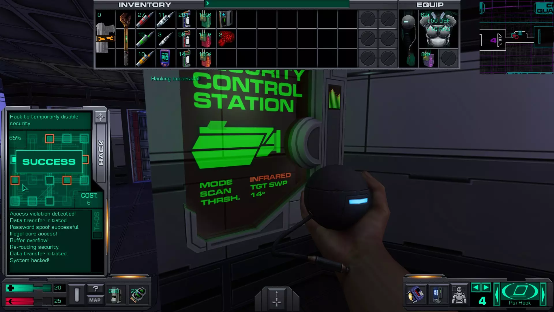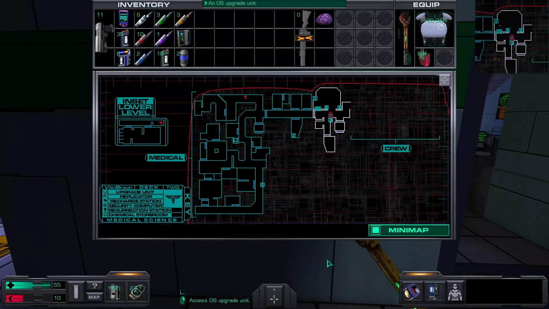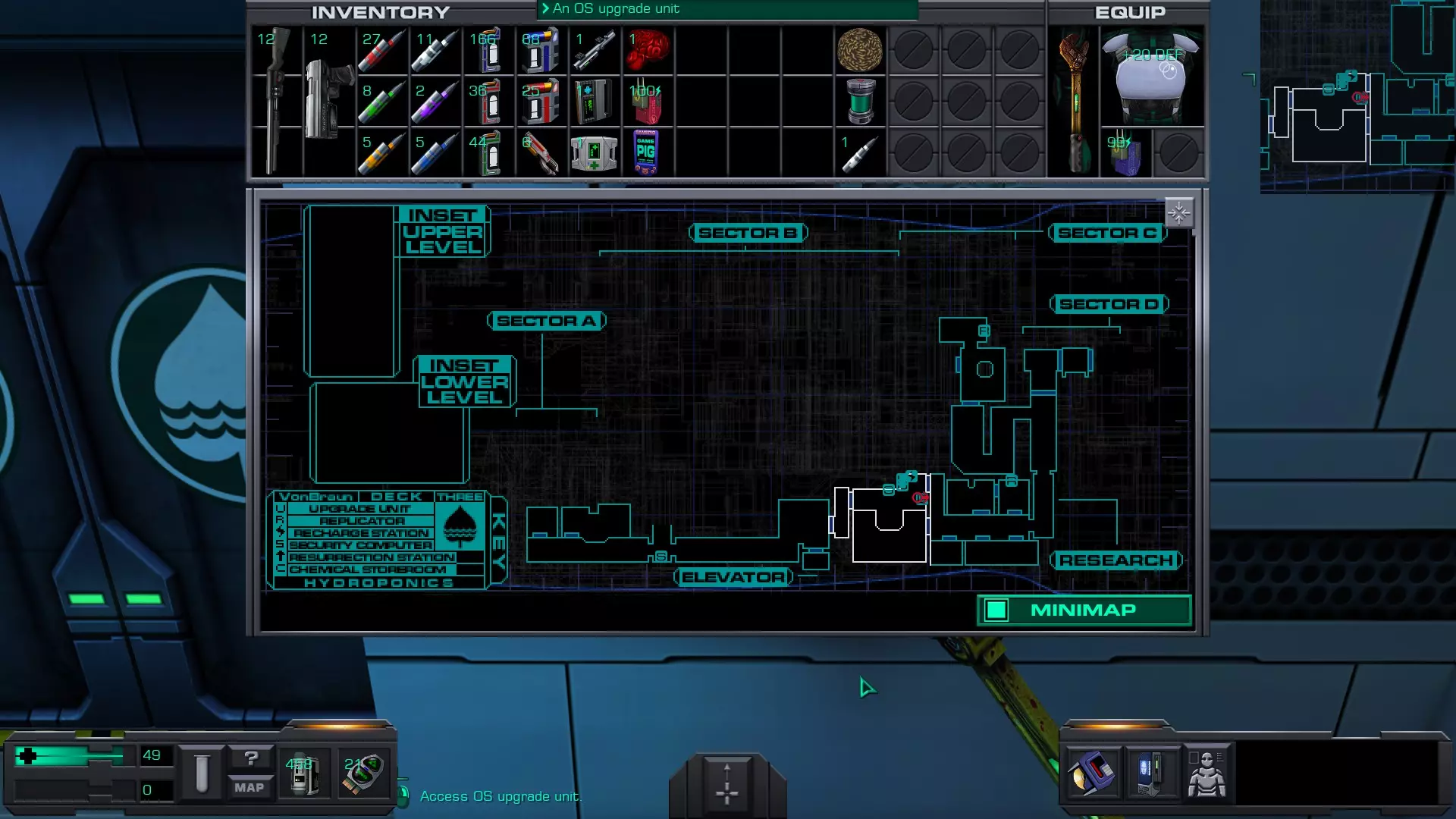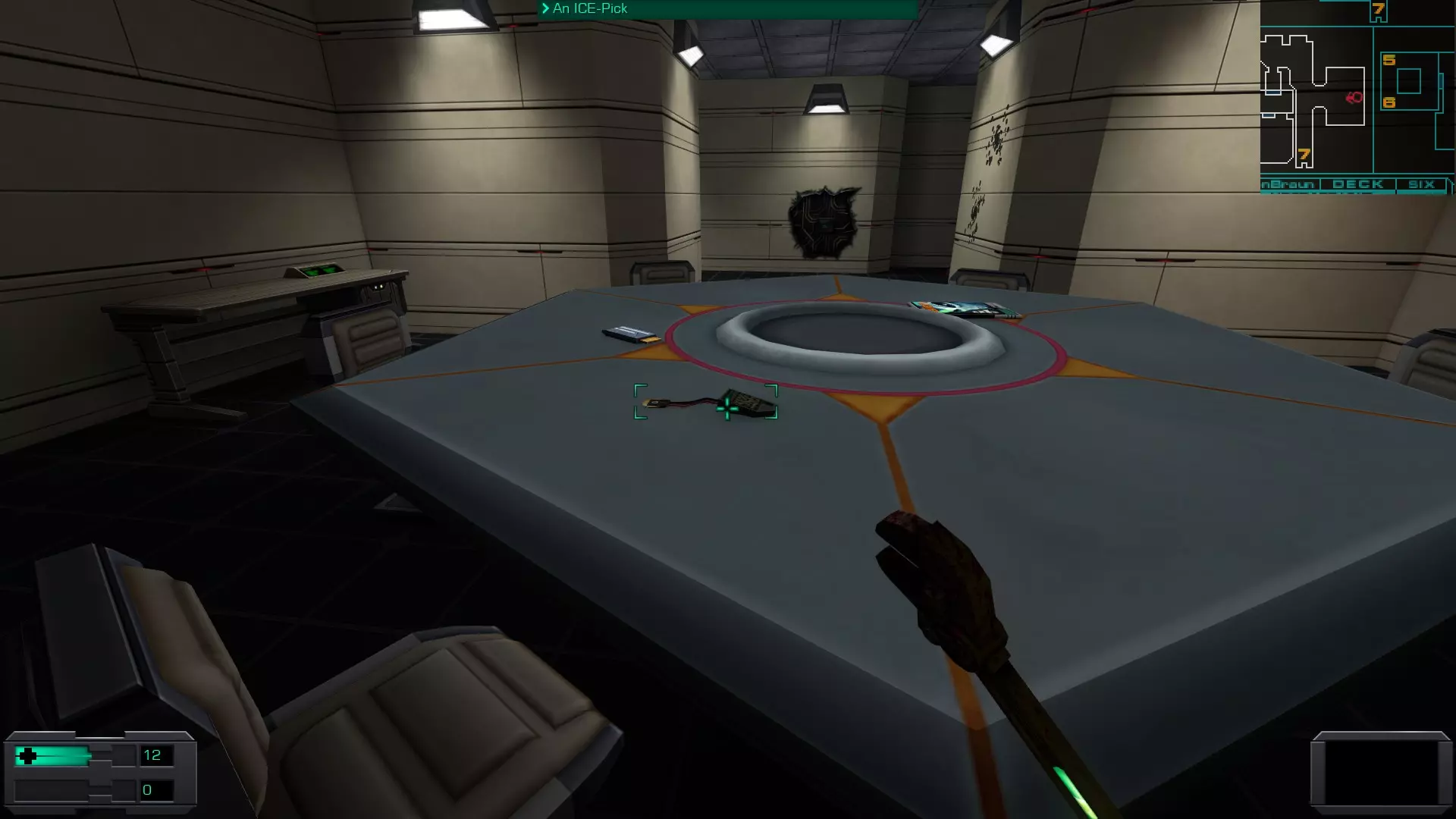 准备工作:用回形针启动 破解GAMEPIG掌上游戏机 实际上,虽然你能获得GAMEPIG,但在游戏的这个阶段你无法破解它。即使在简单难度下,你在这个甲板上能获得的神经机械模块数量也不足以将你的黑客技能提升到6级。 GAMEPIG掌上游戏机在船上随处可见,但医疗/科学甲板上已经能找到一些。 你也可以使用ICE破解器道具来立即破解GAMEPIG。不过,这些道具要到游戏后期才能获得。