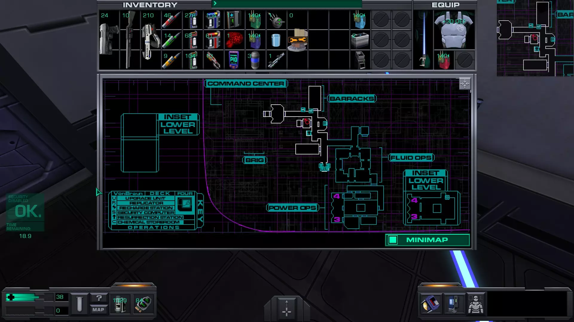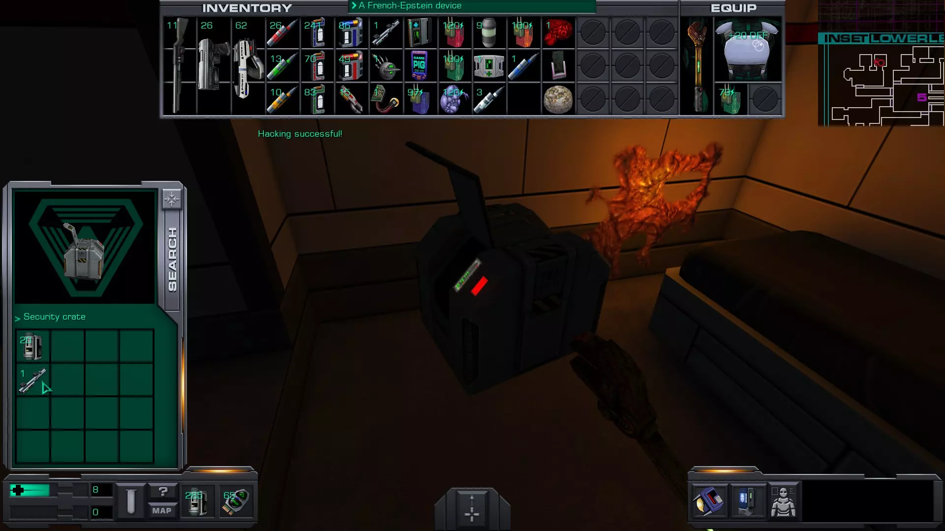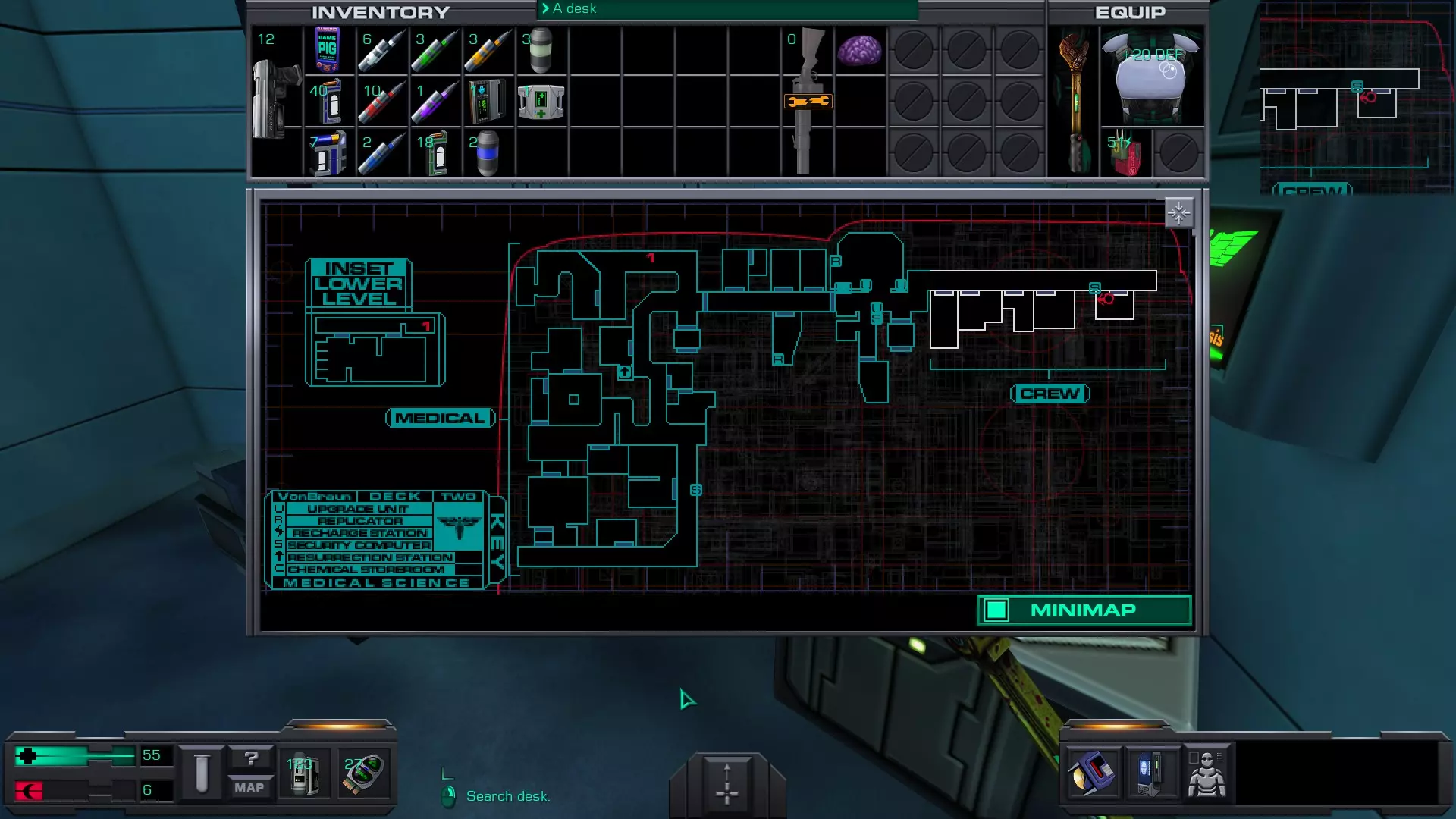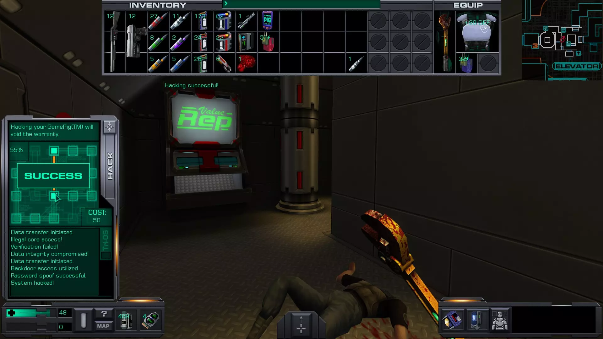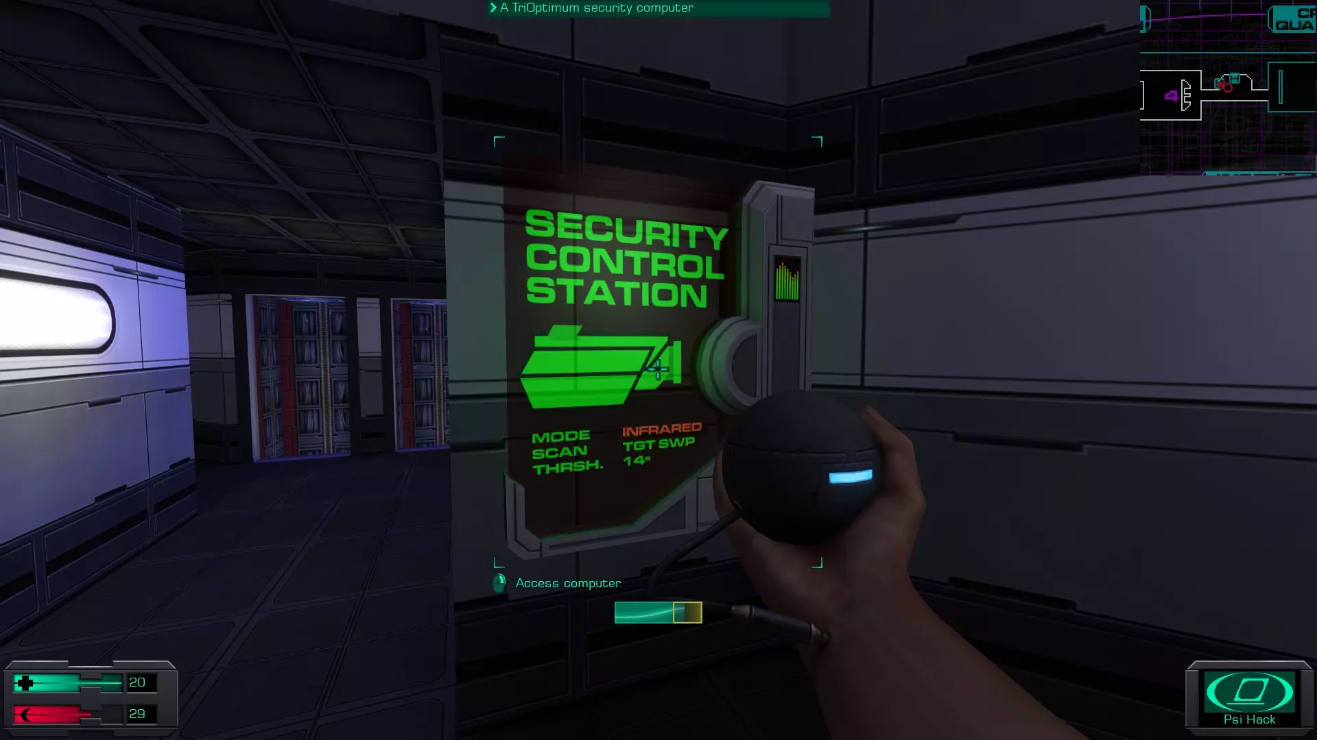 准备工作:用回形针启动 破解GAMEPIG掌上游戏机 实际上,虽然你能获得GAMEPIG,但在游戏的这个阶段你无法破解它。即使在简单难度下,你在这个甲板上能获得的神经机械模块数量也不足以将你的黑客技能提升到6级。 GAMEPIG掌上游戏机在船上随处可见,但医疗/科学甲板上已经能找到一些。 你也可以使用ICE破解器道具来立即破解GAMEPIG。不过,这些道具要到游戏后期才能获得。